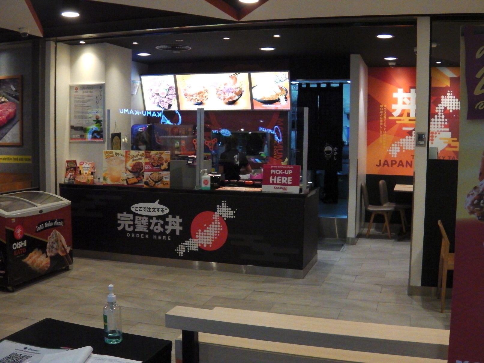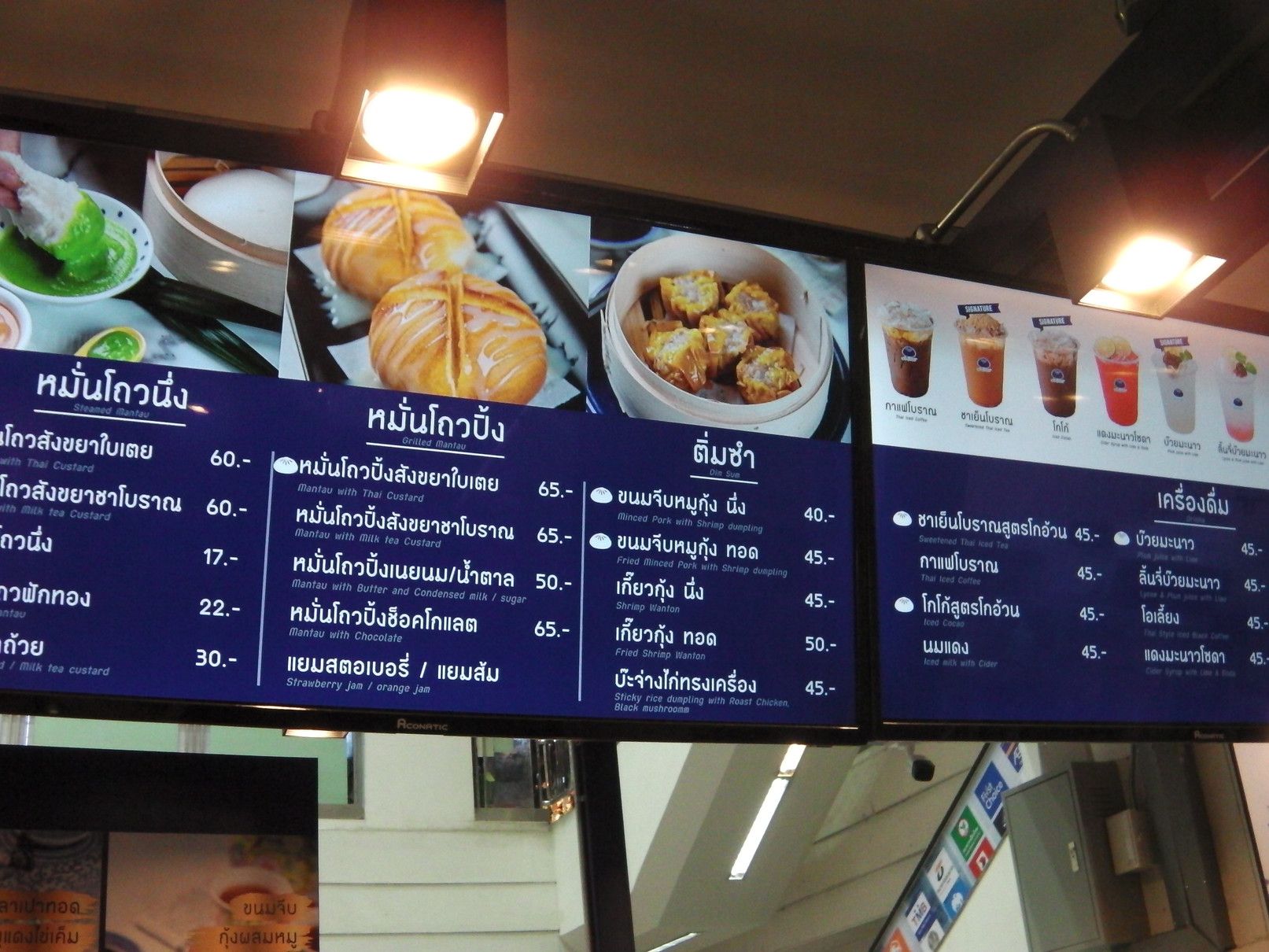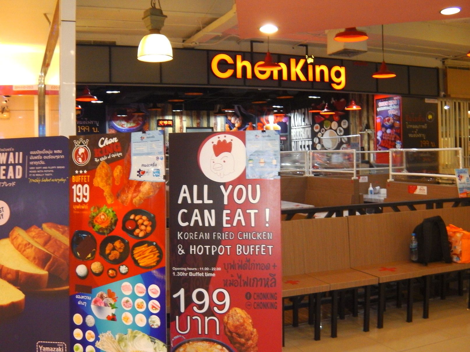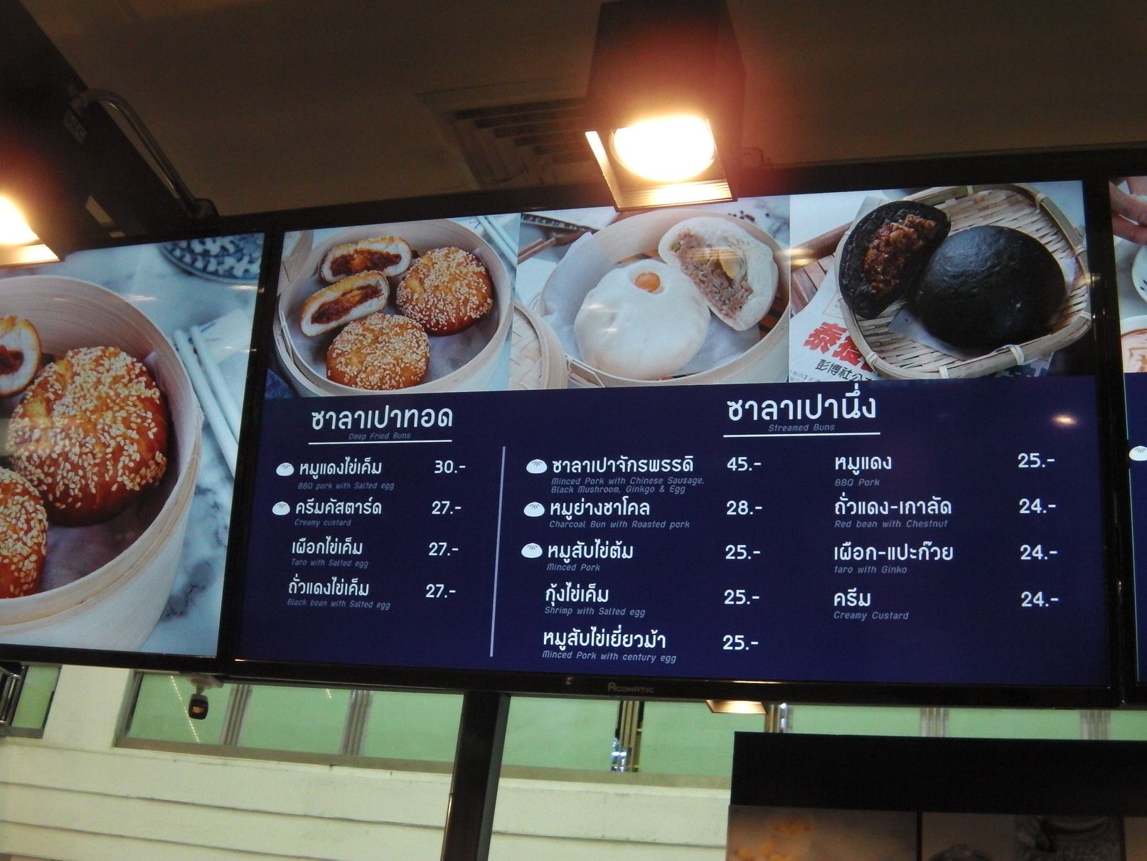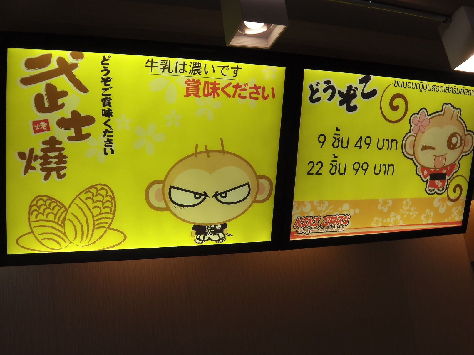1時間くらいは見てまわったけれど興味を持った物は発見できなかった。 従って地下の売り場へ。 この階は、レストランやフードコートがある。 こうしてチラチラ店を覗くと、日本語が時々目に飛び込んでくる。 これが、フードコート。 目が留まったのは、この店。 面白そうなので、購入。 そして、帰ろうと思い1階に上がると、この店にも目が留まってしまった。 美味しそうな品々。 どちらも美味そう。 ついでに、お茶も購入。 全部一気に食べる事は出来ないので、何回かに分けて食べる事にした。 まずは、これを摘まんで食べると。。。 チョコとクリーム。 クリームと豚肉。 これは、豚肉??と卵の黄身。と注文するも通じていなかった可能性もあり。