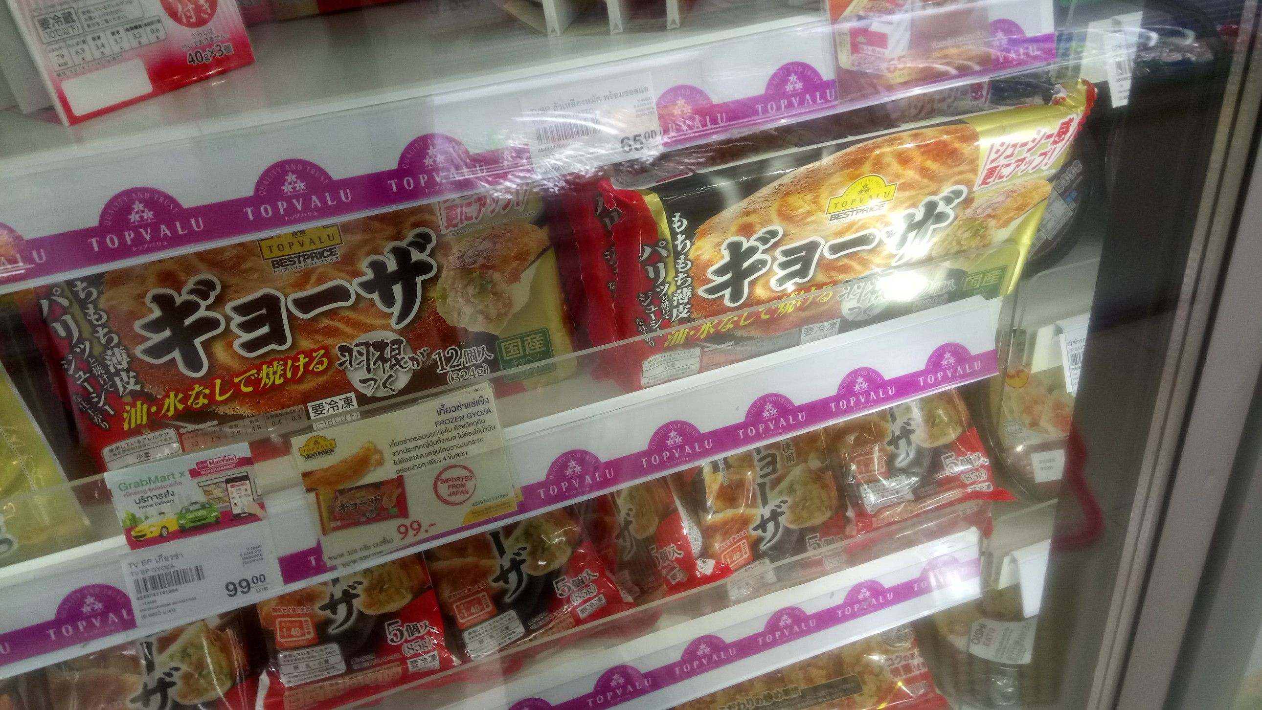 最近は。。。 食料の買い出しでは、エカマイゲートウェイのマックスバリューがメインになってしまった。 理由の一つとしては、野菜の安さと質の良さ。 そして、自社ブランドの種類の多さと安さ。 今回は、99バーツで冷凍食品の羽付き餃子を買ってみた。