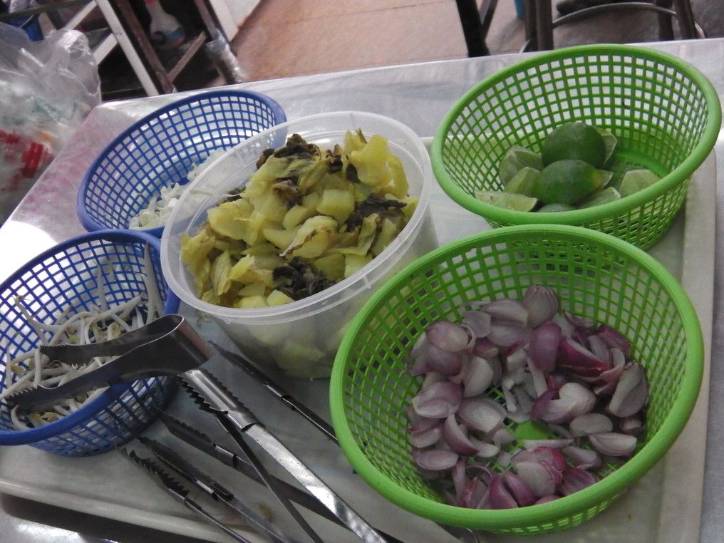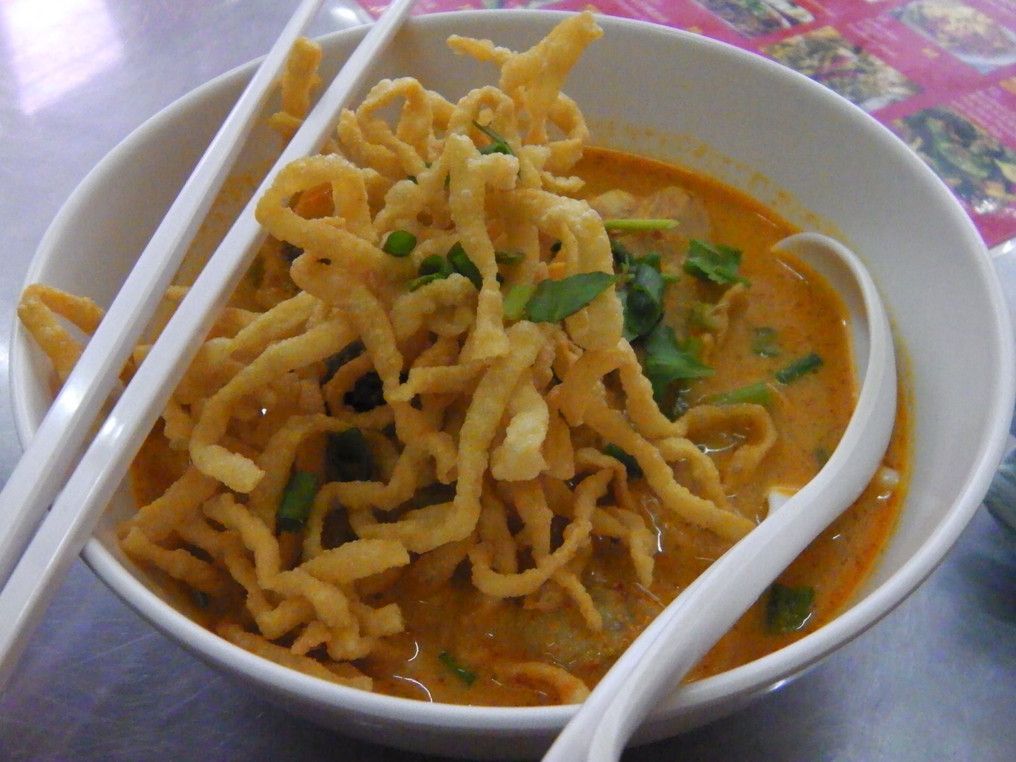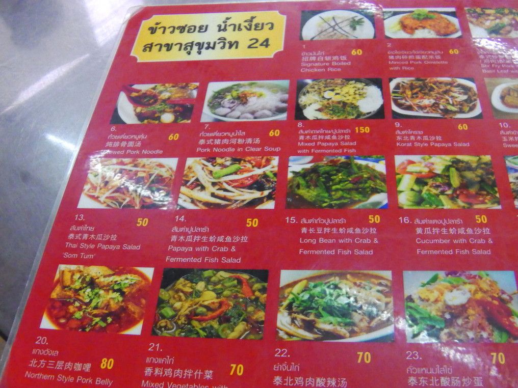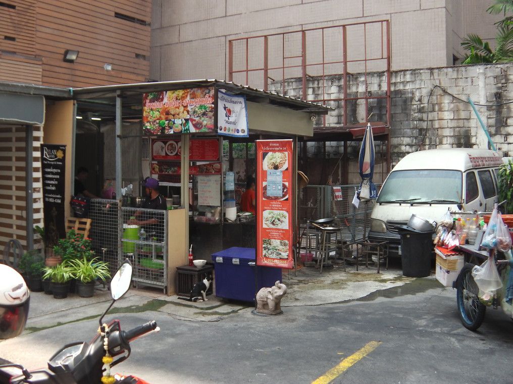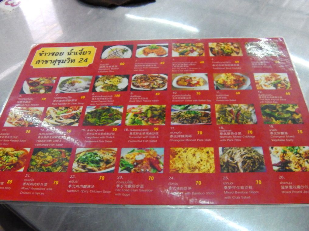 用事を済ませて昼食へ向かった。 若い頃は、この辺は頻繁に来ていたけれど、今回は久々にソイに少し入る。 目指す店は、ナラヤやグレート上海が入る建物の裏側。 隅っこの、この店。 エアコンがある部屋もあったが、涼しかったので、外のテーブルに座った。 カオソーイ・ガイと冷たい水を注文。 サイズは、S?M?L?と聞かれたのでMを注文。 いい香り。 スープは美味しいのだけれど、滅茶苦茶ぬるい。