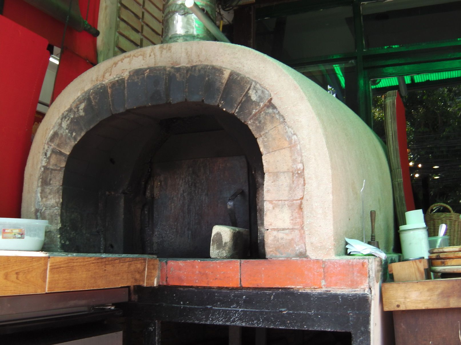 出入り口の横には窯が設置され、美味しいピザが食べられる雰囲気も伝わってきました。 次は、駅と直結しているショッピングセンター2階のタイ料理店です。