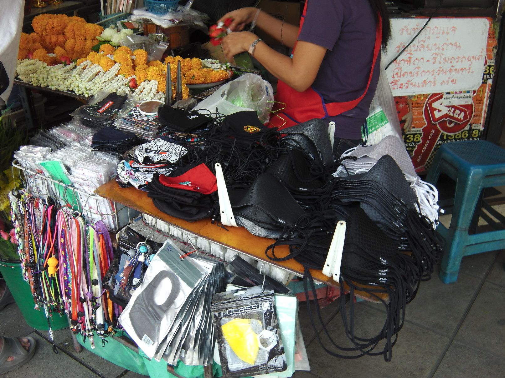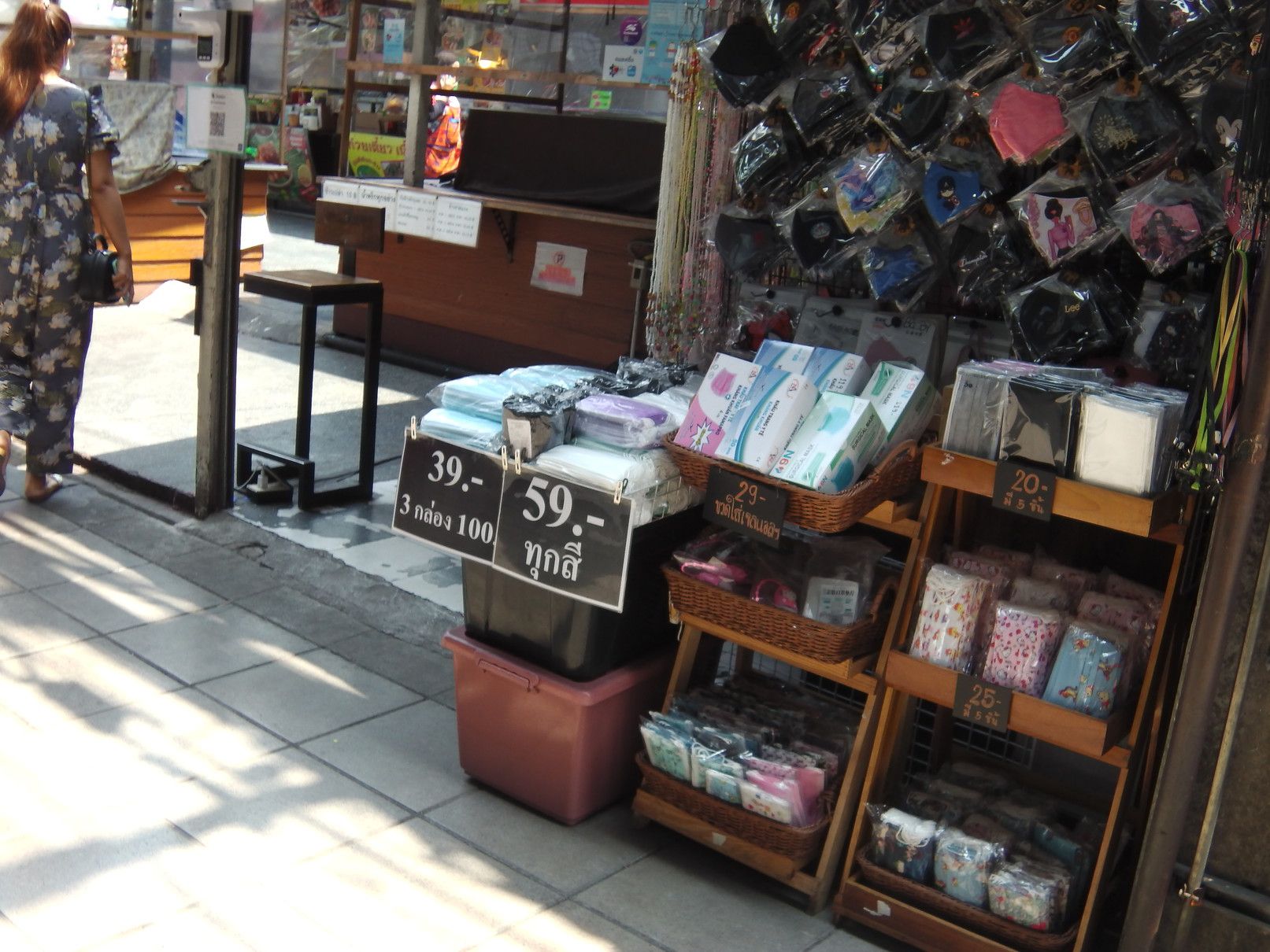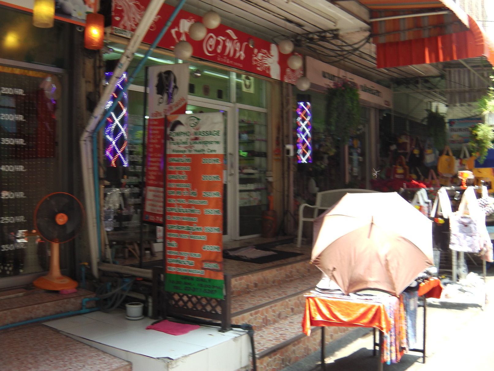 外国人で賑わっていたオンヌットは、今は無し。 階段を降りて、スクムビット通り沿いを、オンヌット通り方面へと歩く。 途中の屋台街の入り口のマスク屋さん。 その先に行くと、少し変化が! 前回来た際には、シャッターが閉まっていた場所が、新店舗開業に向けて改装中。 格安ホテルは、まだ辛抱強く頑張っている最中だった。 宝くじ販売のオバちゃんは、業務拡大中。 これは、マッサージ通りの様子。 少し中へ入ってみると、閉店している店は僅か。