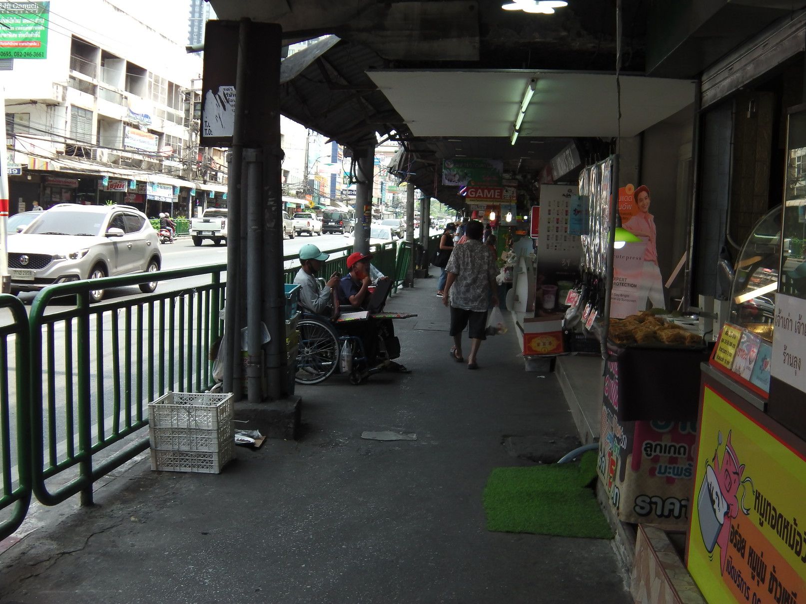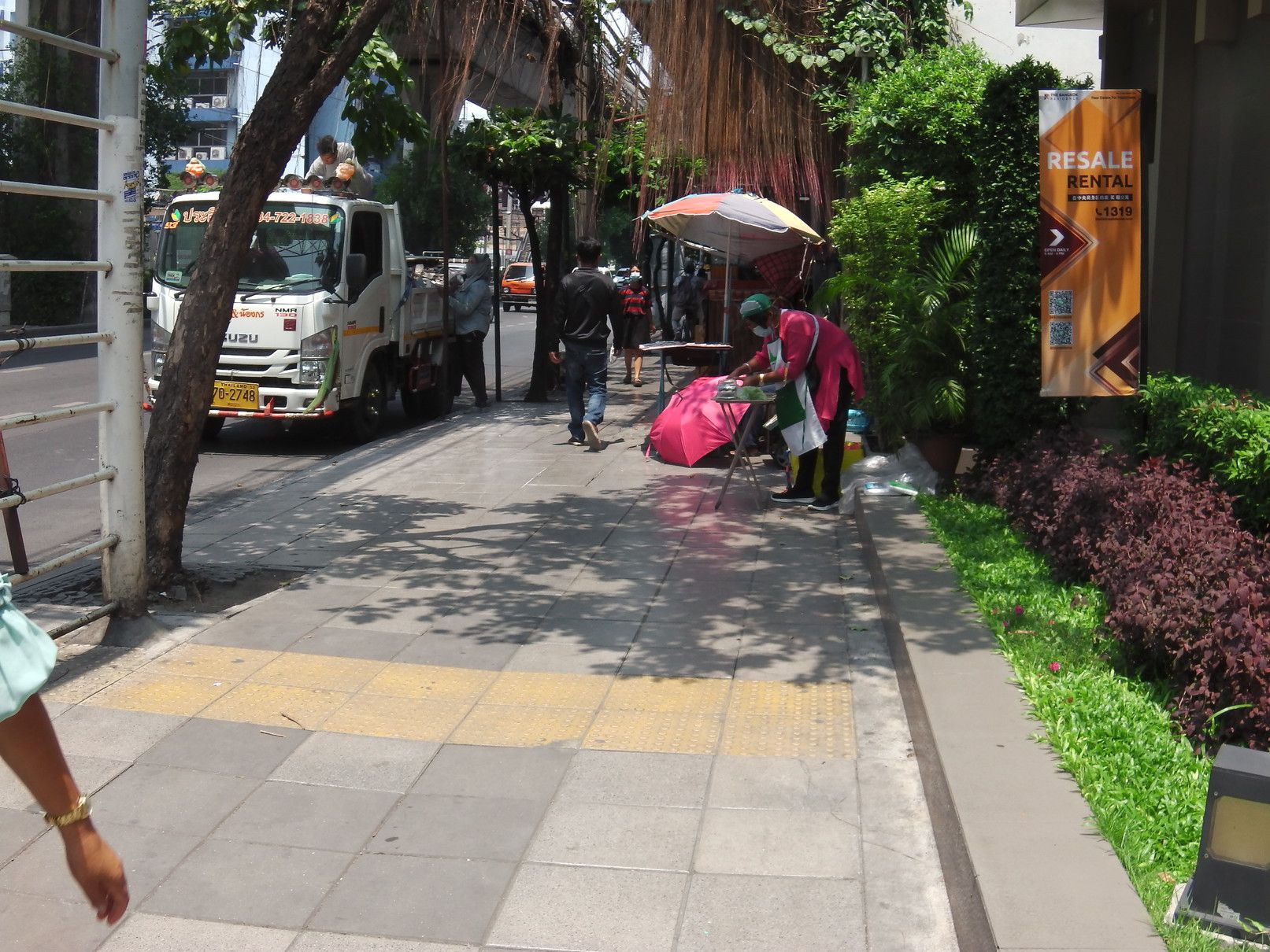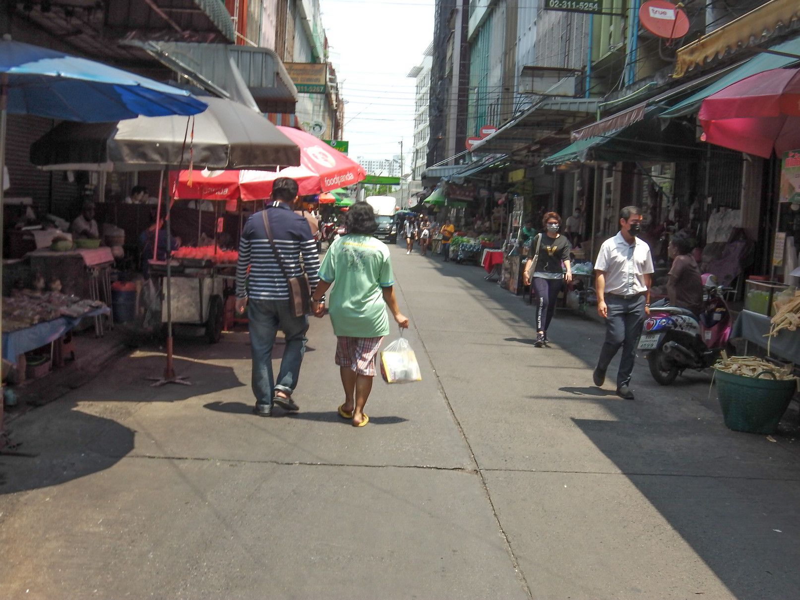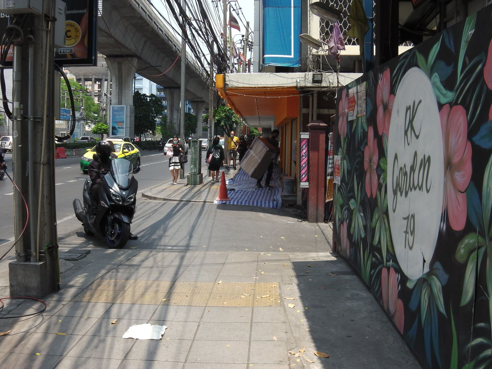外国人で賑わっていたオンヌットは、今は無し。 階段を降りて、スクムビット通り沿いを、オンヌット通り方面へと歩く。 途中の屋台街の入り口のマスク屋さん。 その先に行くと、少し変化が! 前回来た際には、シャッターが閉まっていた場所が、新店舗開業に向けて改装中。 格安ホテルは、まだ辛抱強く頑張っている最中だった。 宝くじ販売のオバちゃんは、業務拡大中。 これは、マッサージ通りの様子。 少し中へ入ってみると、閉店している店は僅か。