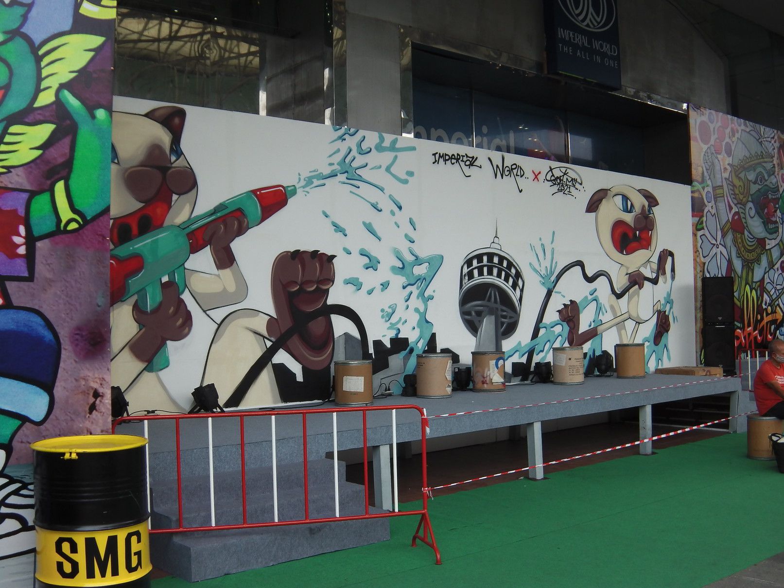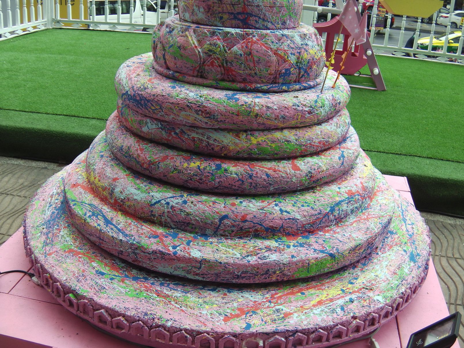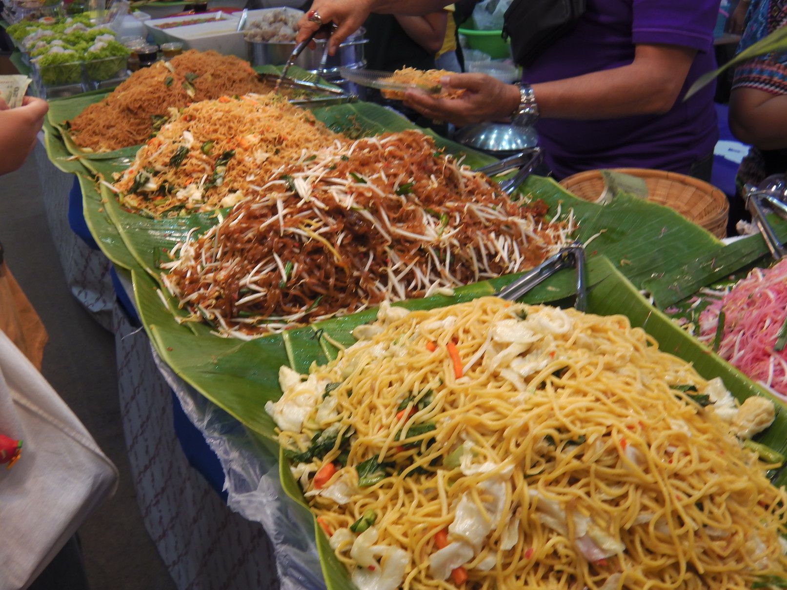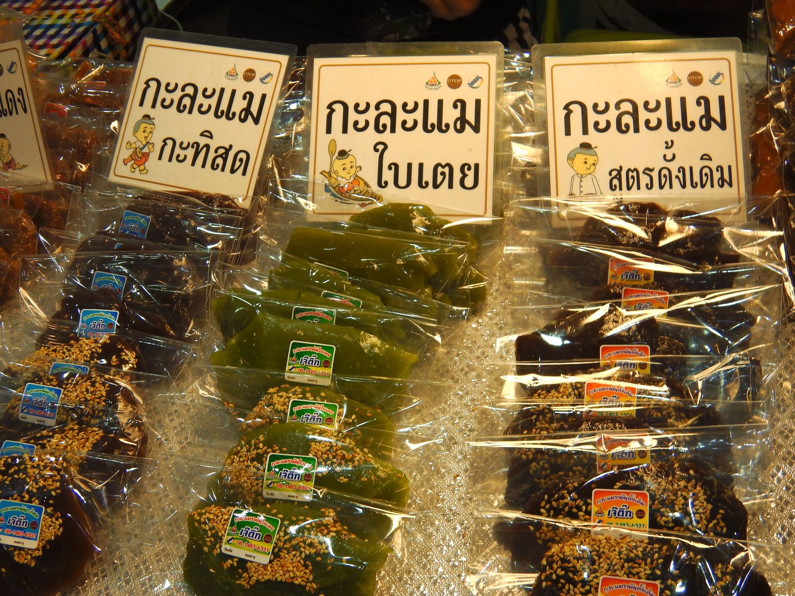恐らく本館でも、行っているだろう予想した。 本館に入り、4階から見下ろした会場。 用事を済ませてから、会場へ向かった。 この絵は、バンコクのストリートアートでは、よく見かけるアーティストの絵だ。 この近くには、外への出入り口もあり、そちらを眺めると、外でもアートがあるようだった。 こんなアートも。 発想が面白いですね。 全て見学したので、再び中に入り、晩飯でも買って帰る事に。 まず目に留まったのは、餅のような菓子。 非常に好物。 次は、パッタイ。 餅菓子は100バーツだったけれど、パッタイは何んと20バーツ。 これは、思ったより微糖で問題なく食べられた。 パッタイは、麺に味が染みていて非常に美味しかったです。