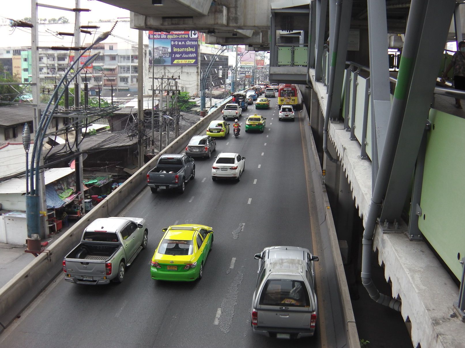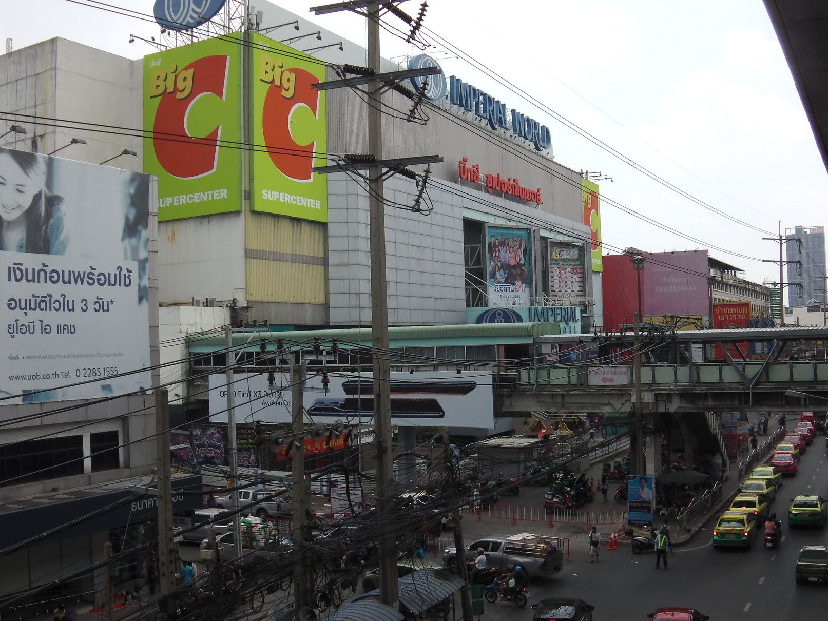ぶらりとサムローンへ。 駅を降りてからインペリアルワールドへ向かうには、スカイウォークを少し歩く。