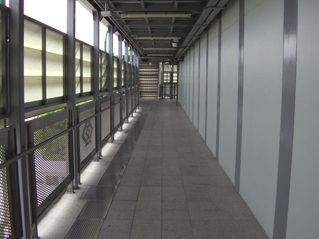 しかし、そんな自身の行動を見てたのか、改札口付近で仕事をしていた方が、「船着き場へはスカイウォークがあるから行ってみな景色が綺麗だよ」とアドバイスしてくれた。 案内図にも、それが示されていた。 行ってみよう!と嬉しかったが、何らかの理由で?スカイウォークからの景色は遮断されていた。 まぁ、それでも行ってみよう。 いやぁ爽快。