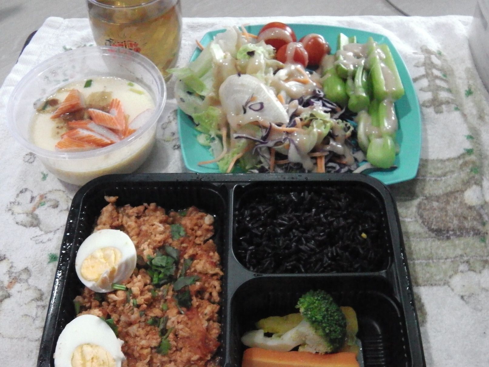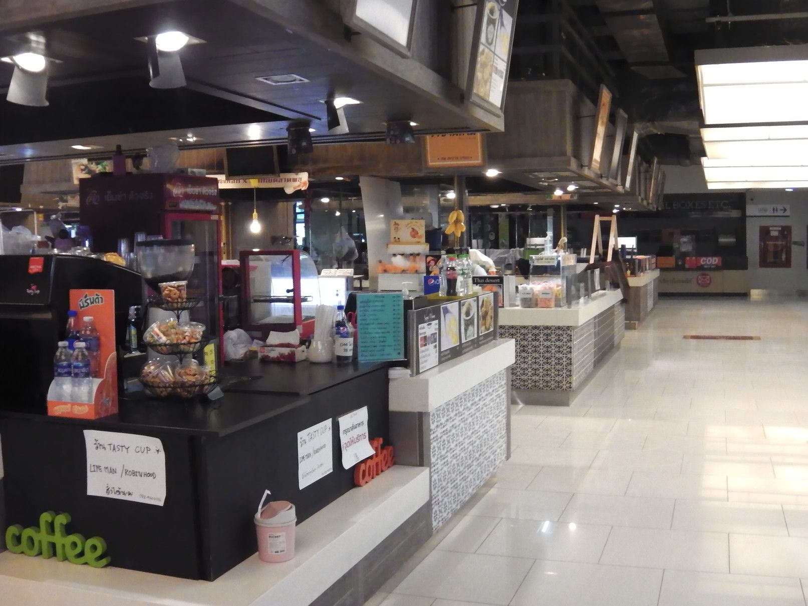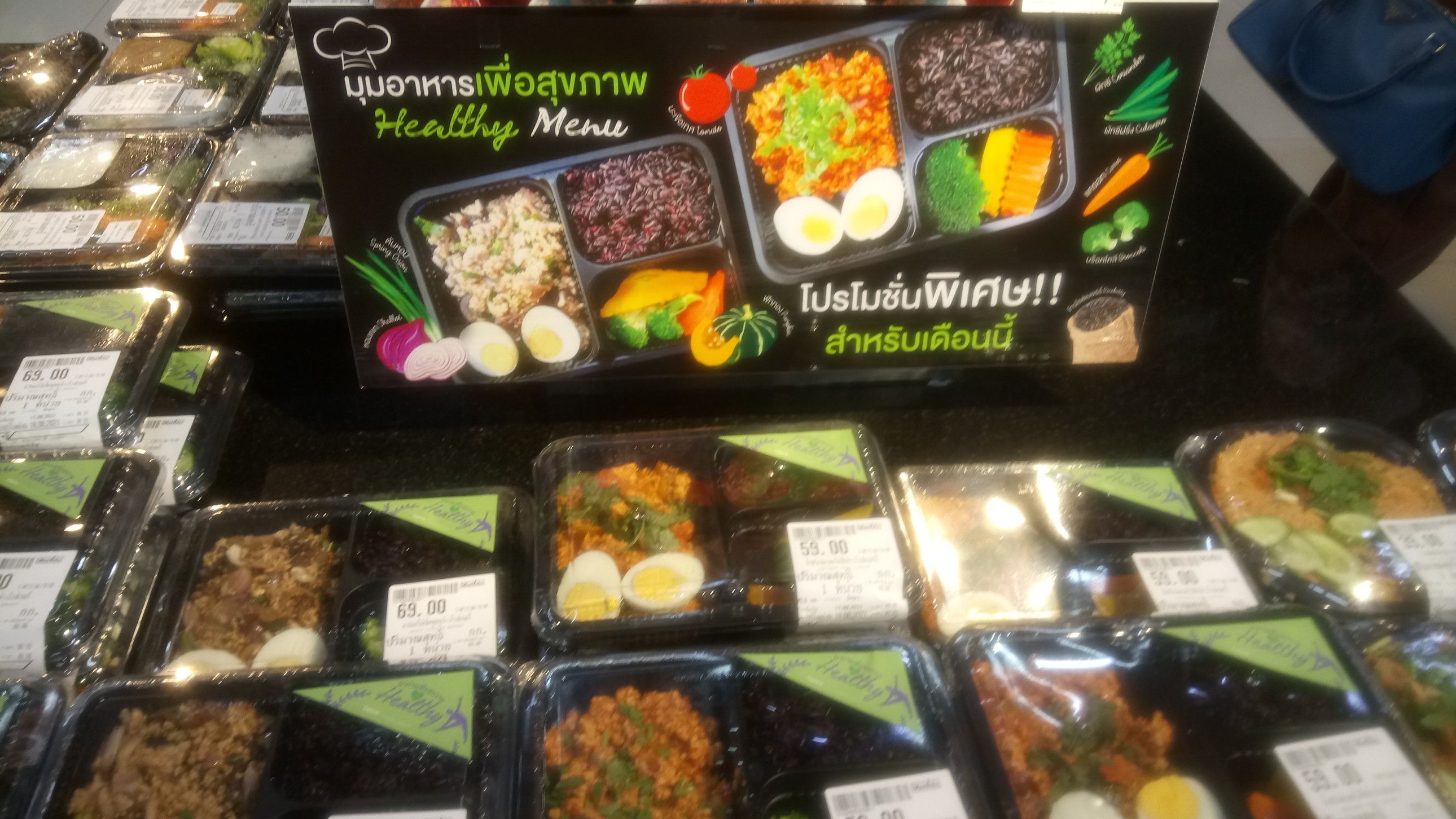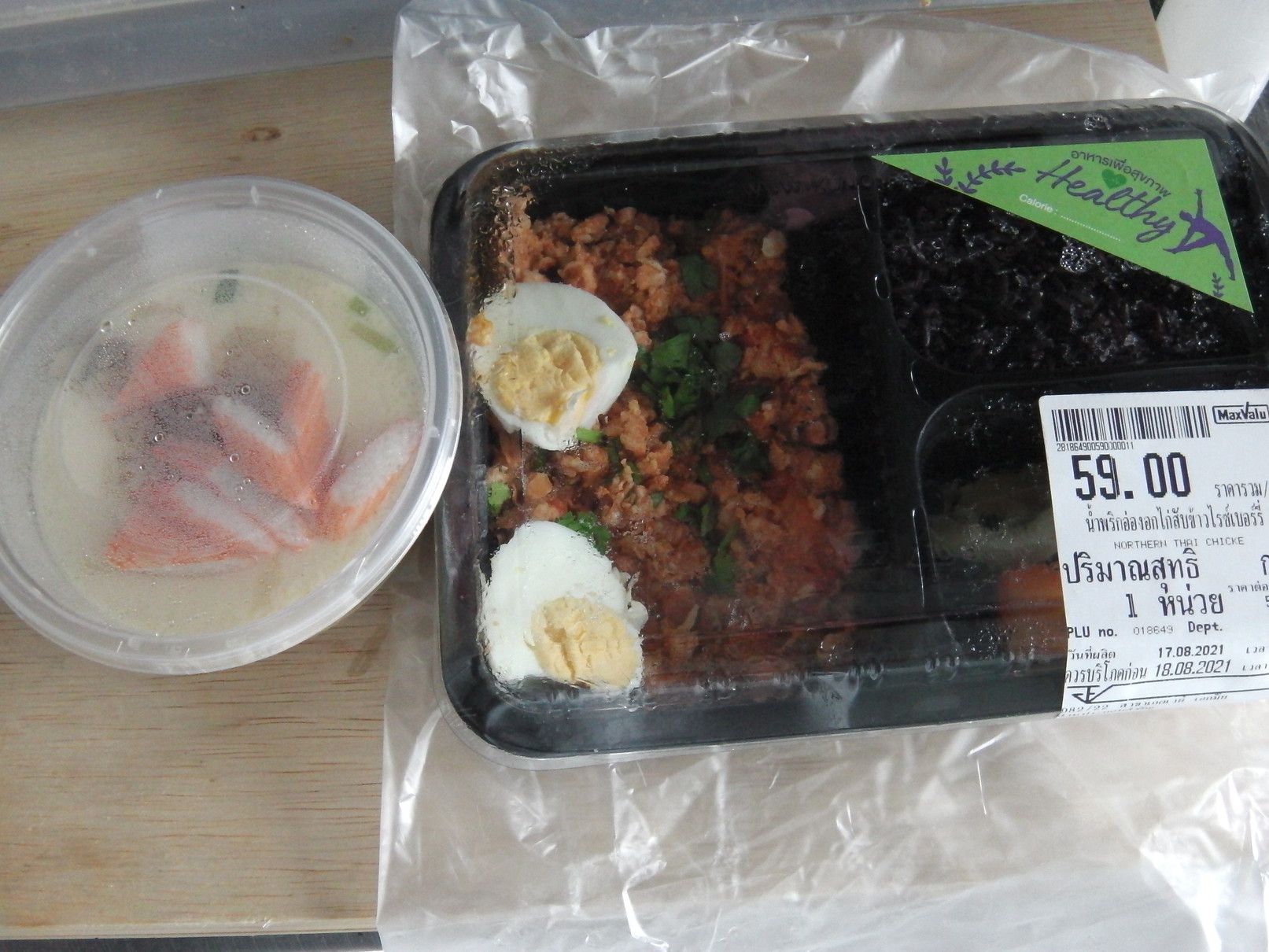 道路も、こんなにガラガラ。 そのガラガラが理由なのか、少し物資不足が気になる昨今。 もう、何処のモールへ行っても、このような状況。 レストランは数軒だけ宅配用として営業。 薬屋さん関連は問題なく営業。 マックスバリューの店内に入ると、お客さんの入りはそこそこの状態で、少し安心。 総菜も野菜も問題なく購入出来た。 こんな、ヘルシー弁当も。 ただ残念なのは、モール内では持ち帰りの食料は購入不可な事。 帰宅しての晩飯は、ヘルシー弁当。 御飯はジャスミンライス。 おかずは、カレー味の鶏挽肉。 嬉しいのは、エカマイまで出ると、セロリが棚に並んでいる事です。