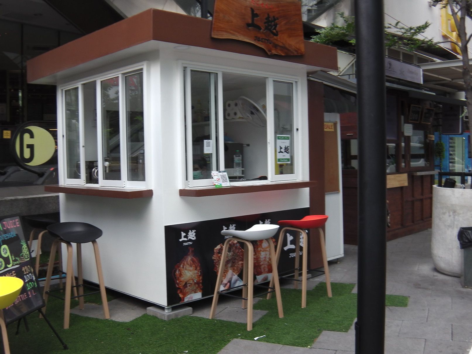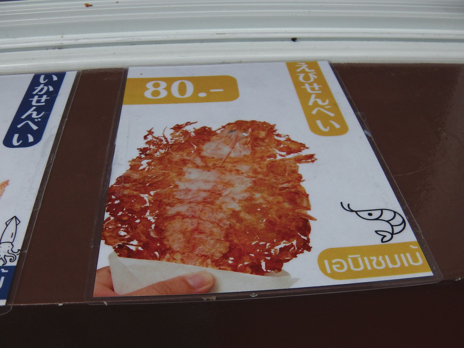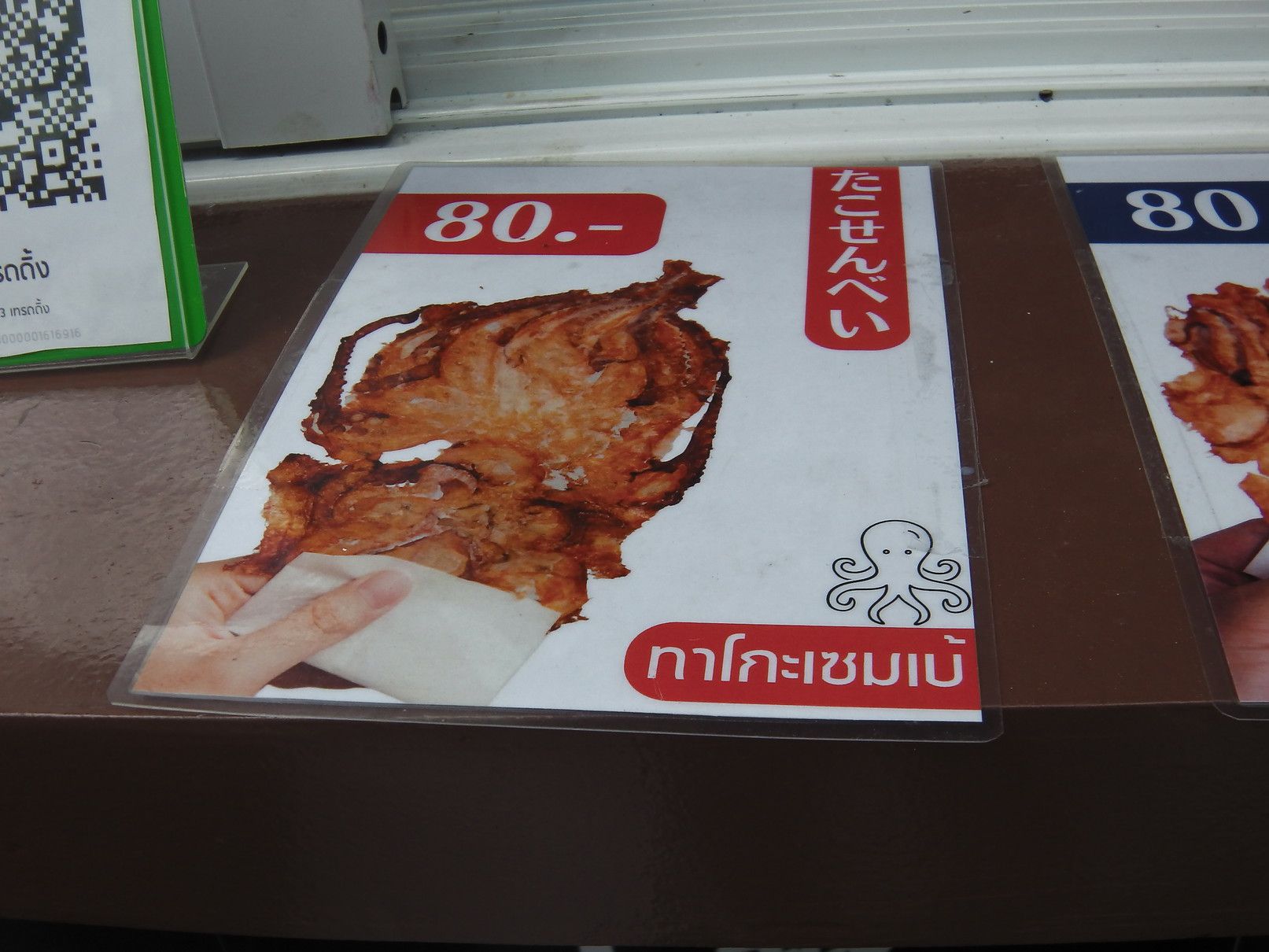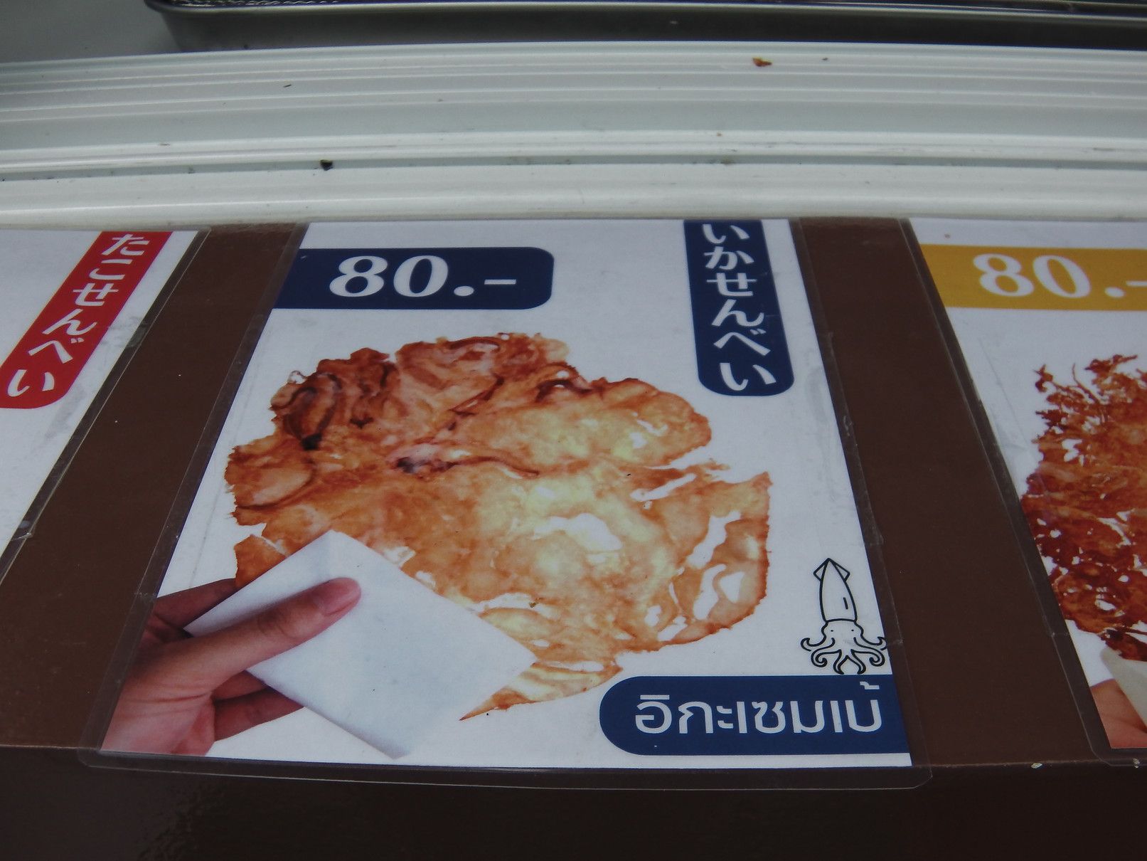 アートやら美味しい店や面白い店があると最近になって分かり始めた。 この日も途中下車して、小さな店が集まる場所へ行ってみた。 この敷地には、数棟の高層ビルが建ち並んでいる。 そして、このような店が建ち並んでいる。 少し奥へ進んで行くと、チラリと漢字の看板が見えたので行ってみる事にした。 何を売る店なのか確かめてみると。。。 ”たこせんべい”って何?? メニューは、この3種類。