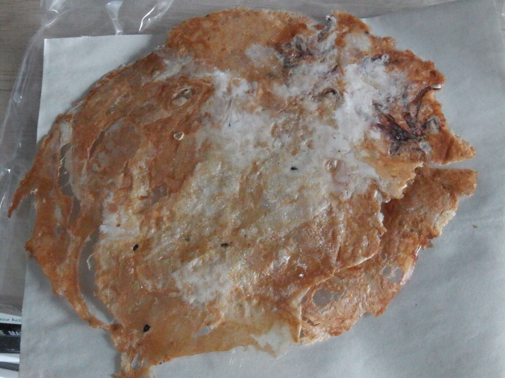 ん。。。悩んだが、3種類それぞれ1枚をオーダー。 それがこれ。 海老せんべい。 たこせんべい。 イカせんべい。