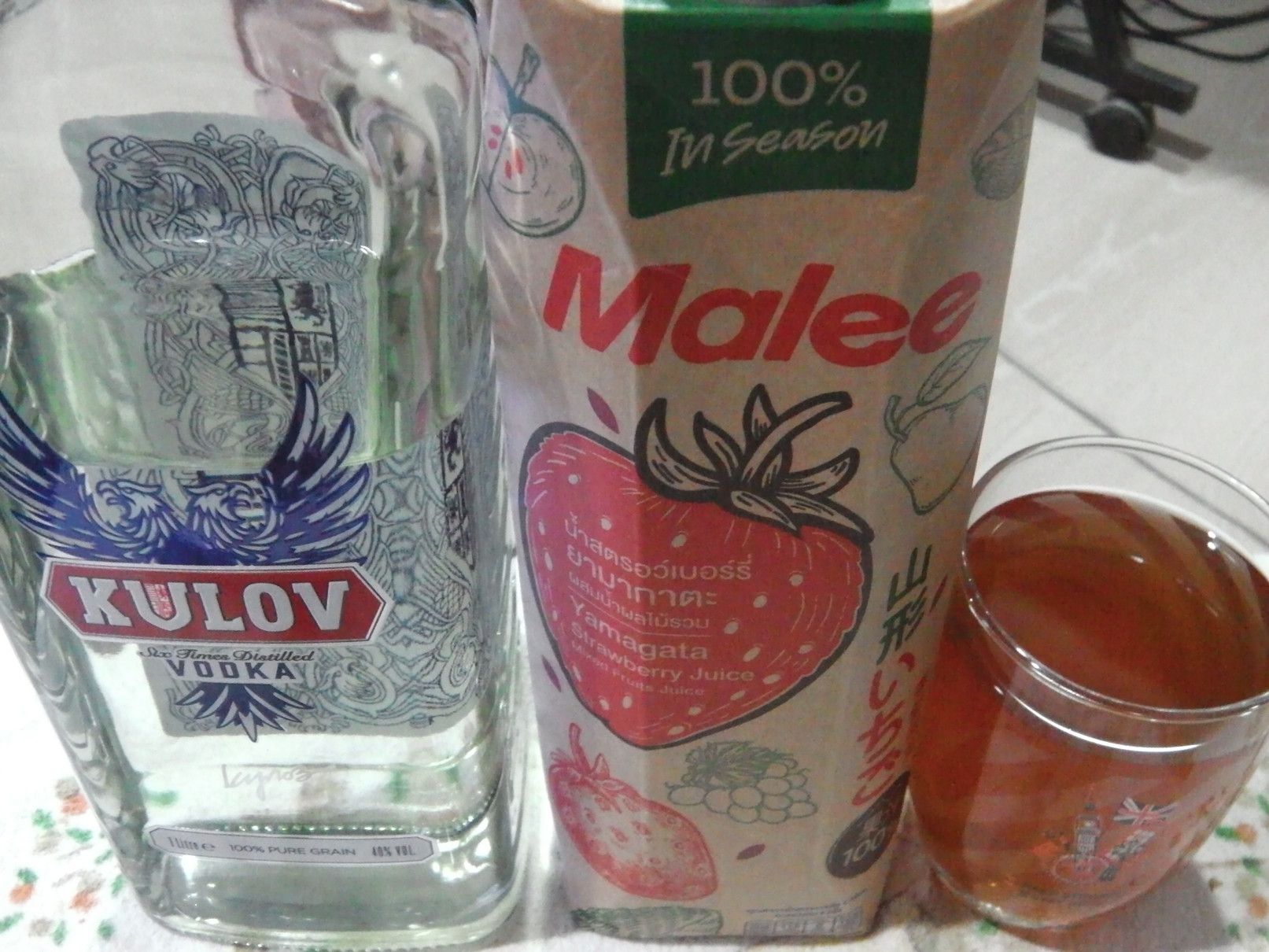 唐揚げしてから、何かに漬けられた物らしい。 オーブンで焼くと、こんな感じに仕上がった。 焼酎は、いちご果汁。