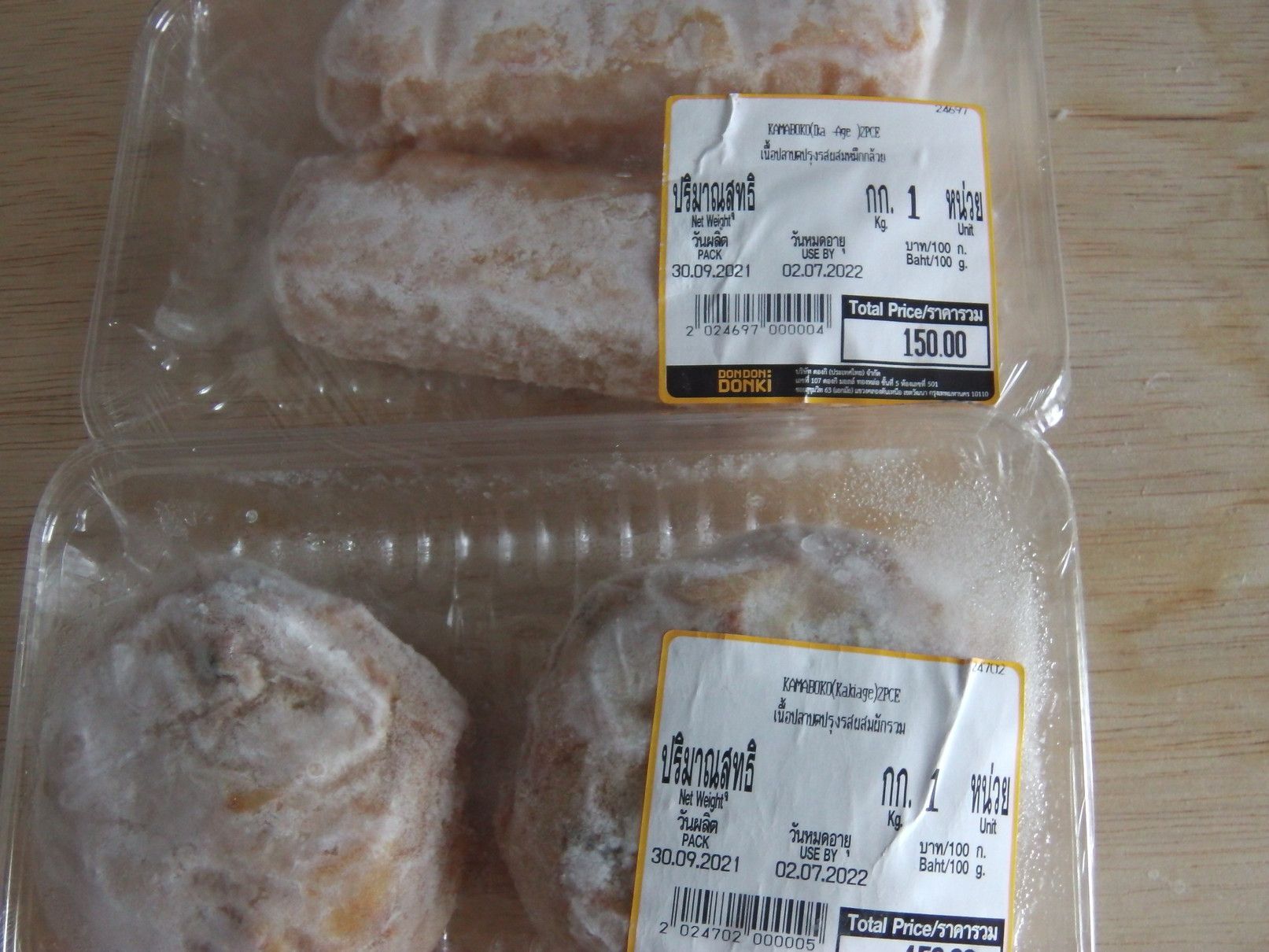 先日に行ったドンキ3号店。。。 1号店も2号店も、あれだけの混雑に出会った経験が無く唖然としたまま、何とか店内に入る事が出来たものの。。。 総菜は売れ切れで、何とか買えたのは冷凍食品コーナーの蒲鉾。 先日に冷凍庫から取り出して、どんな蒲鉾を買ったのかを確かめてみると。。。 ”Ika -Age”ですね。 ”Kakiage”ですね。