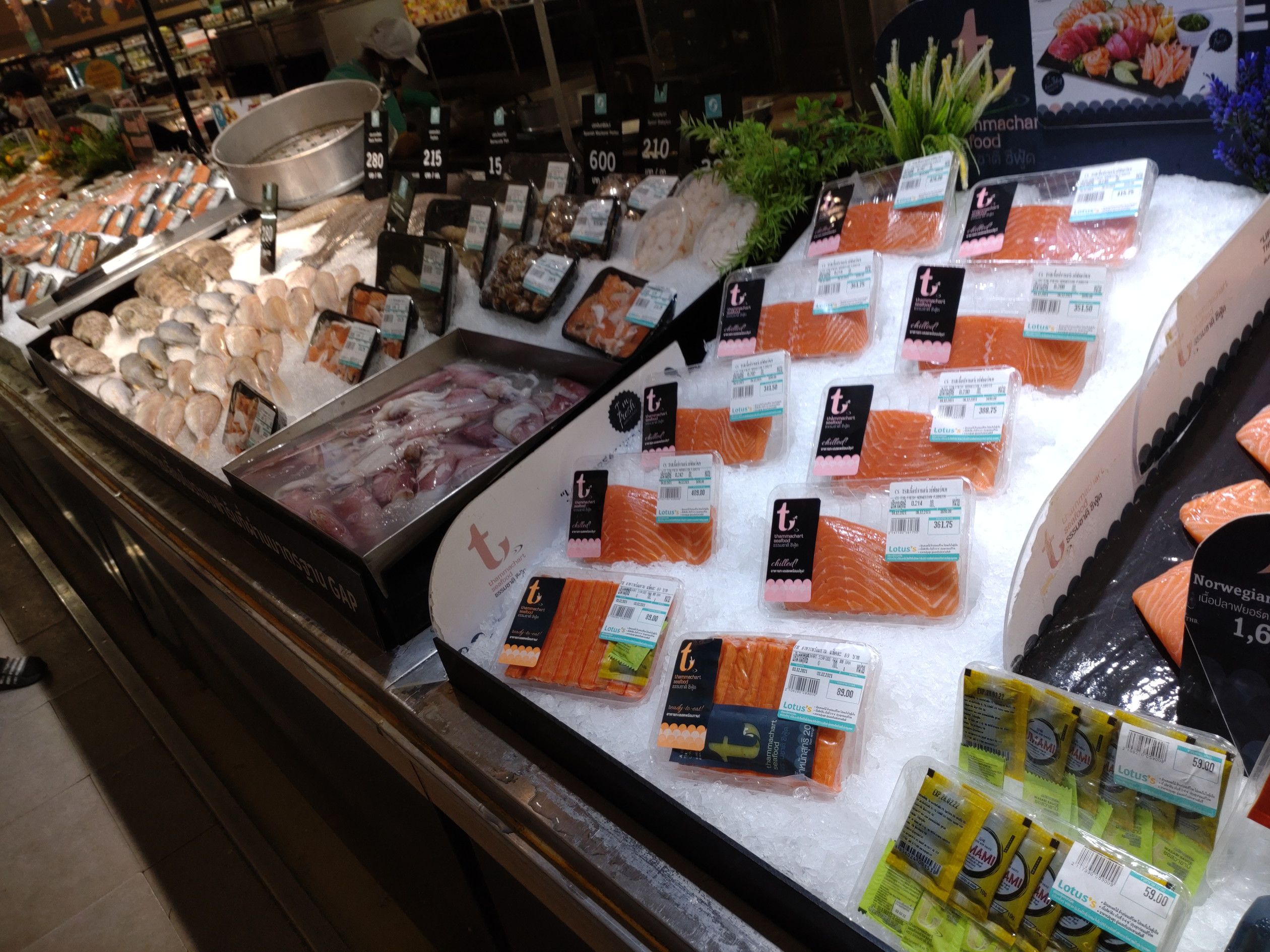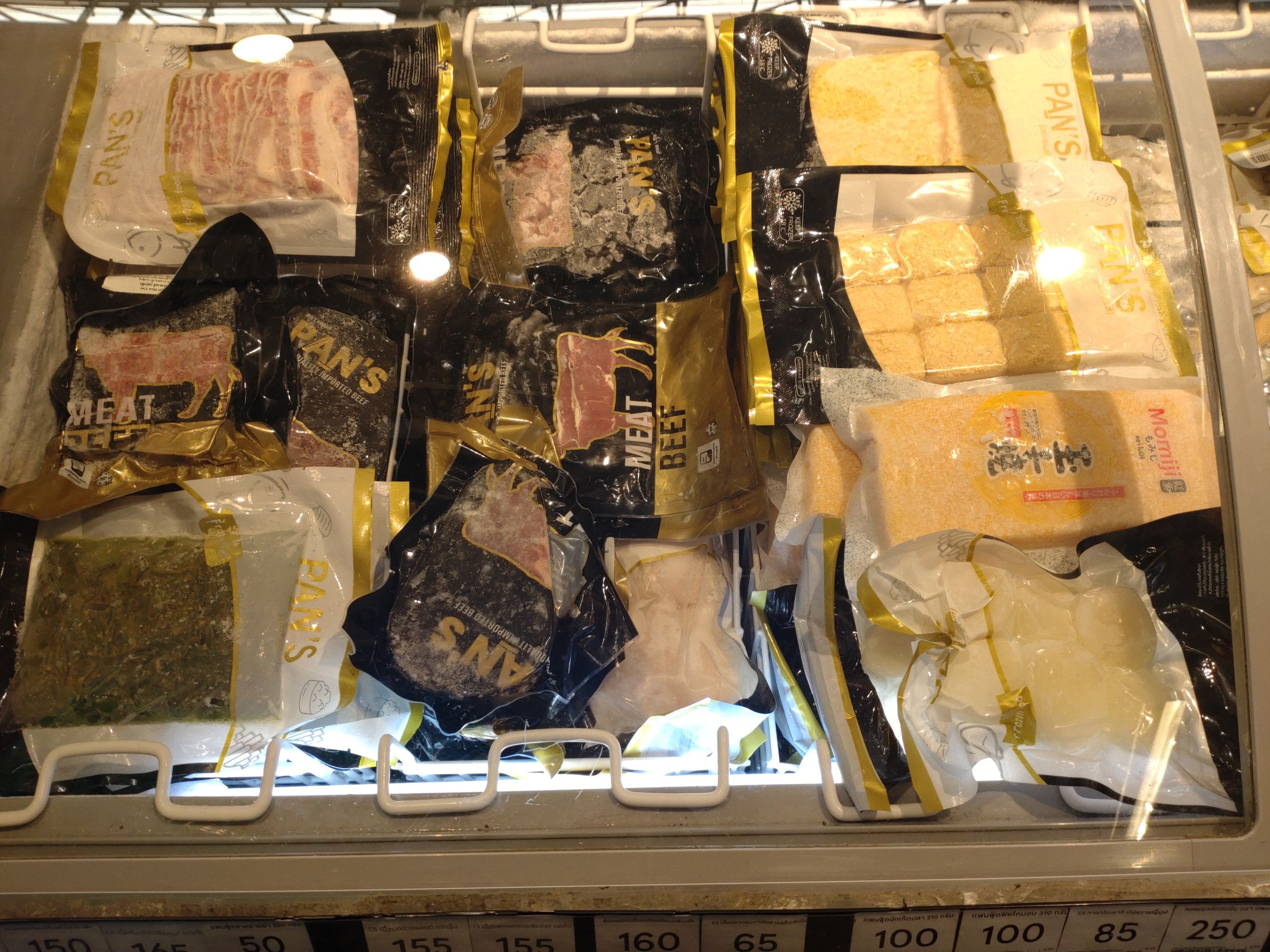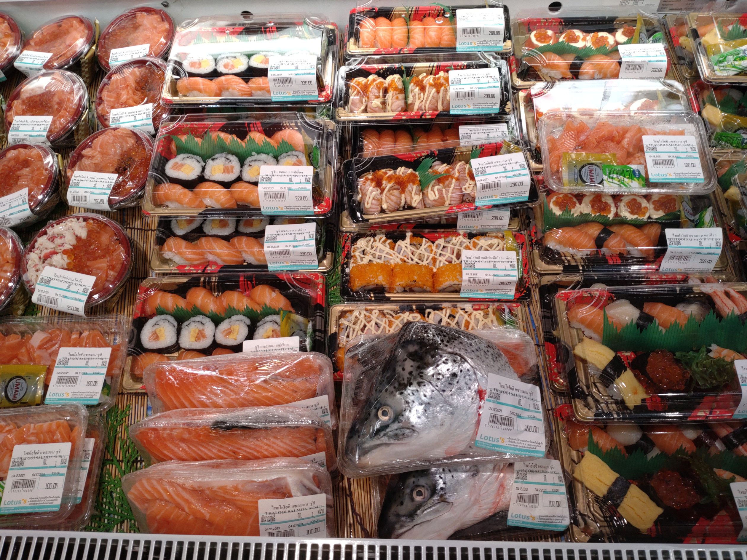 高いんです。 帰りは、BIG-C近くの店が並ぶ場所で食料を買おうと歩きましたが、食べたい物は無し。 マッサージ通りもチェックしましたが、気分が乗らず。 なので、ロータスへ行きました。 何故か、この日はサーモンには目は行かず。 そして、目に入ったのは、この冷凍庫。 卵焼きとホタテの貝柱に目が行きました。 オンヌットの、テスコロータスにも、こんな物が売っているんですね! 解凍して、刺身で食べましたが、全く問題無しです。