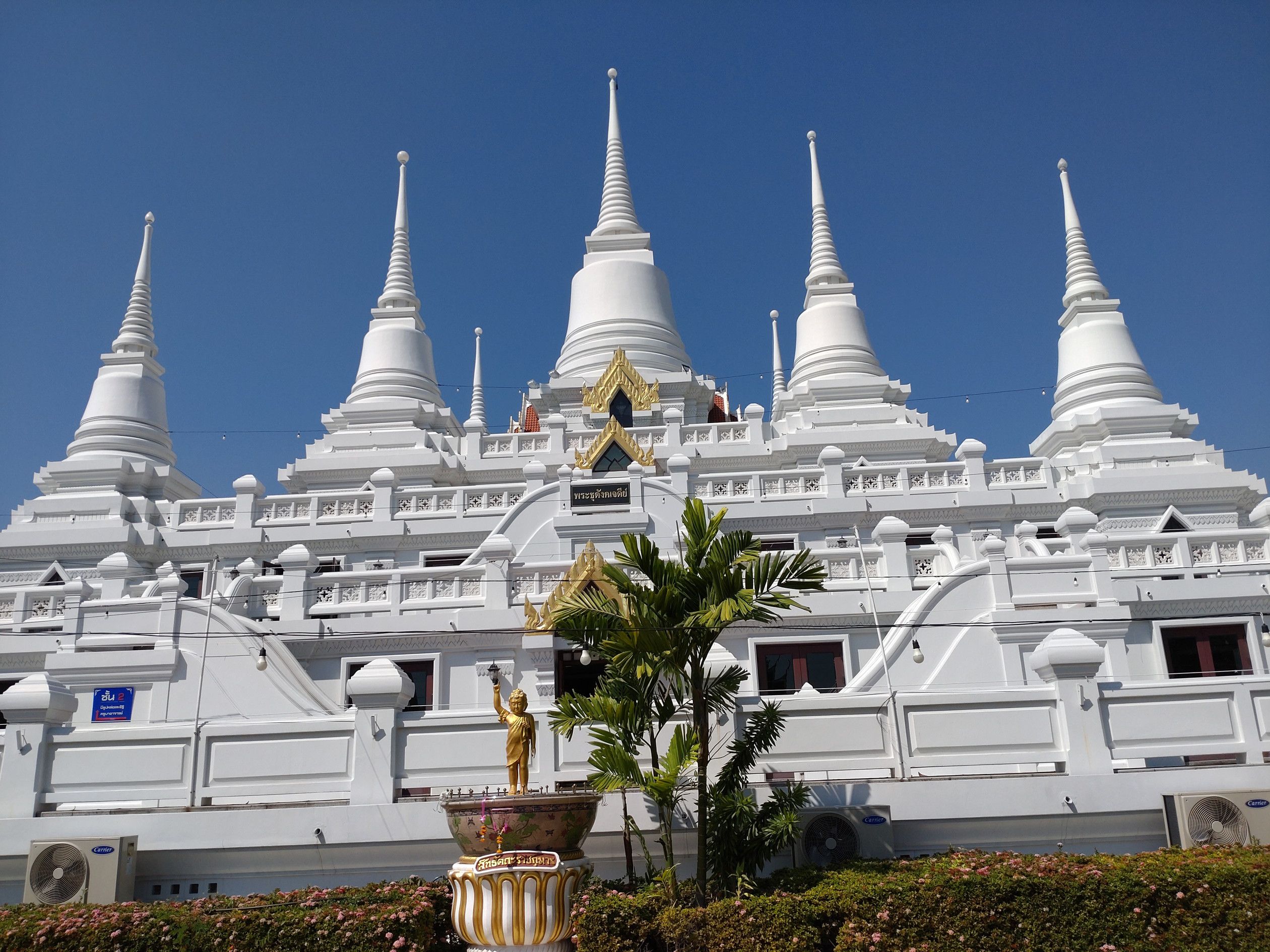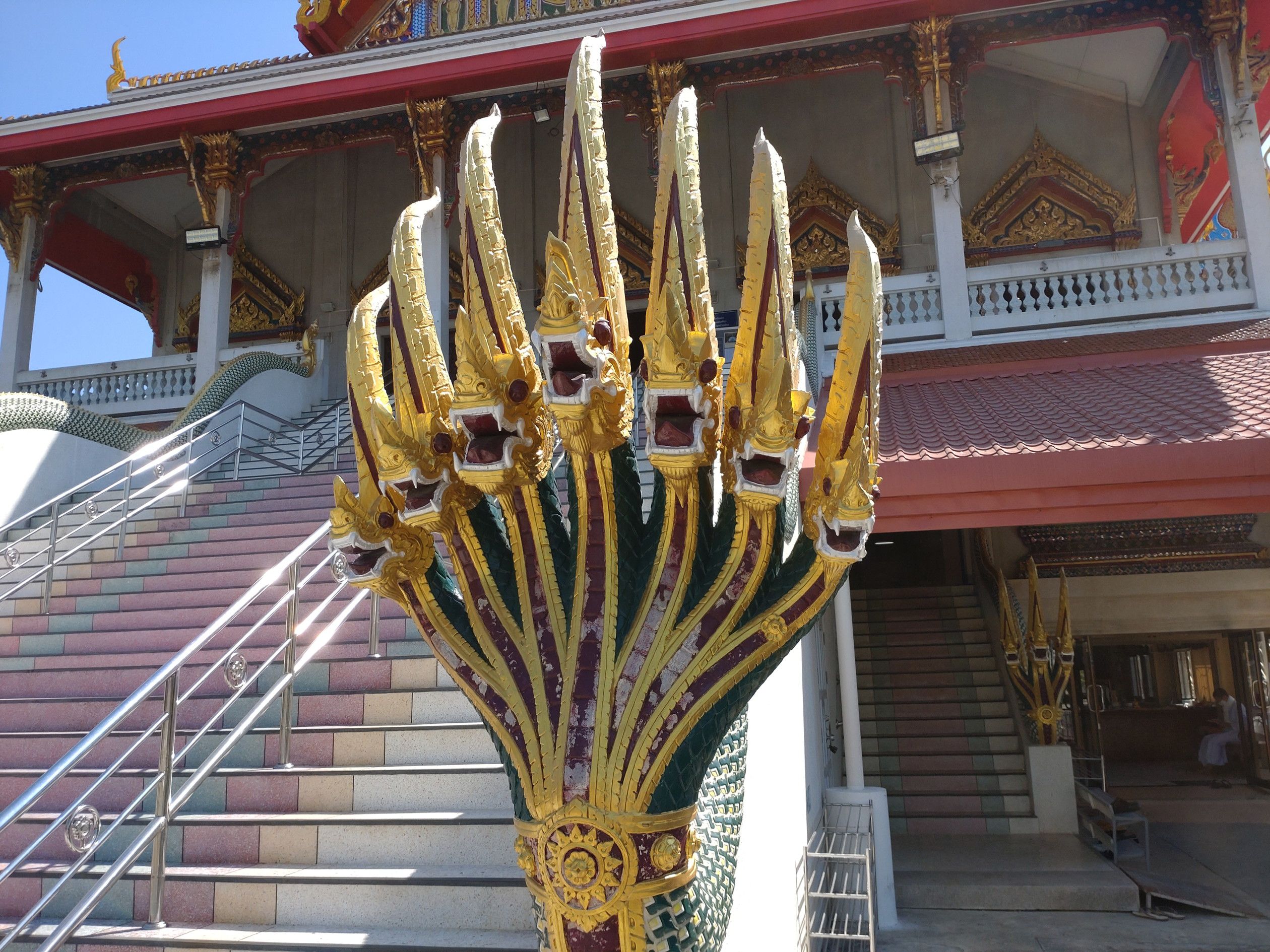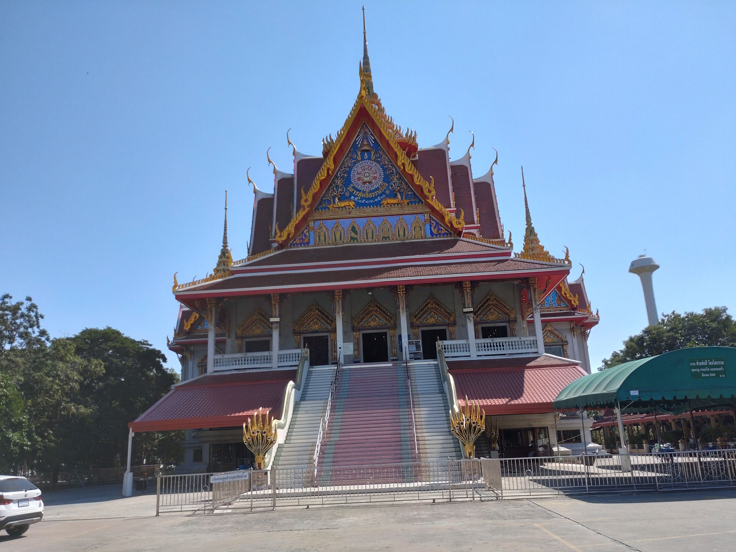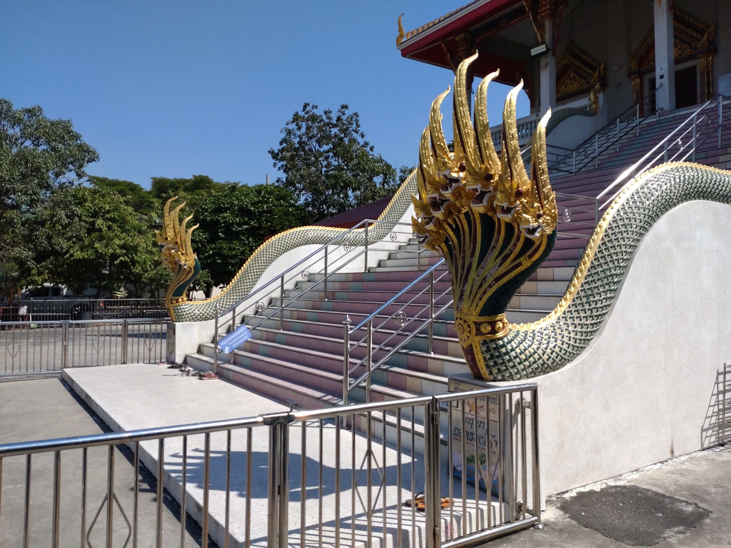 歩道橋を渡って向こう側へ行きます。 お寺へ通じるパクソイからバイタクに乗ります。 料金は、10バーツ。 到着しました。