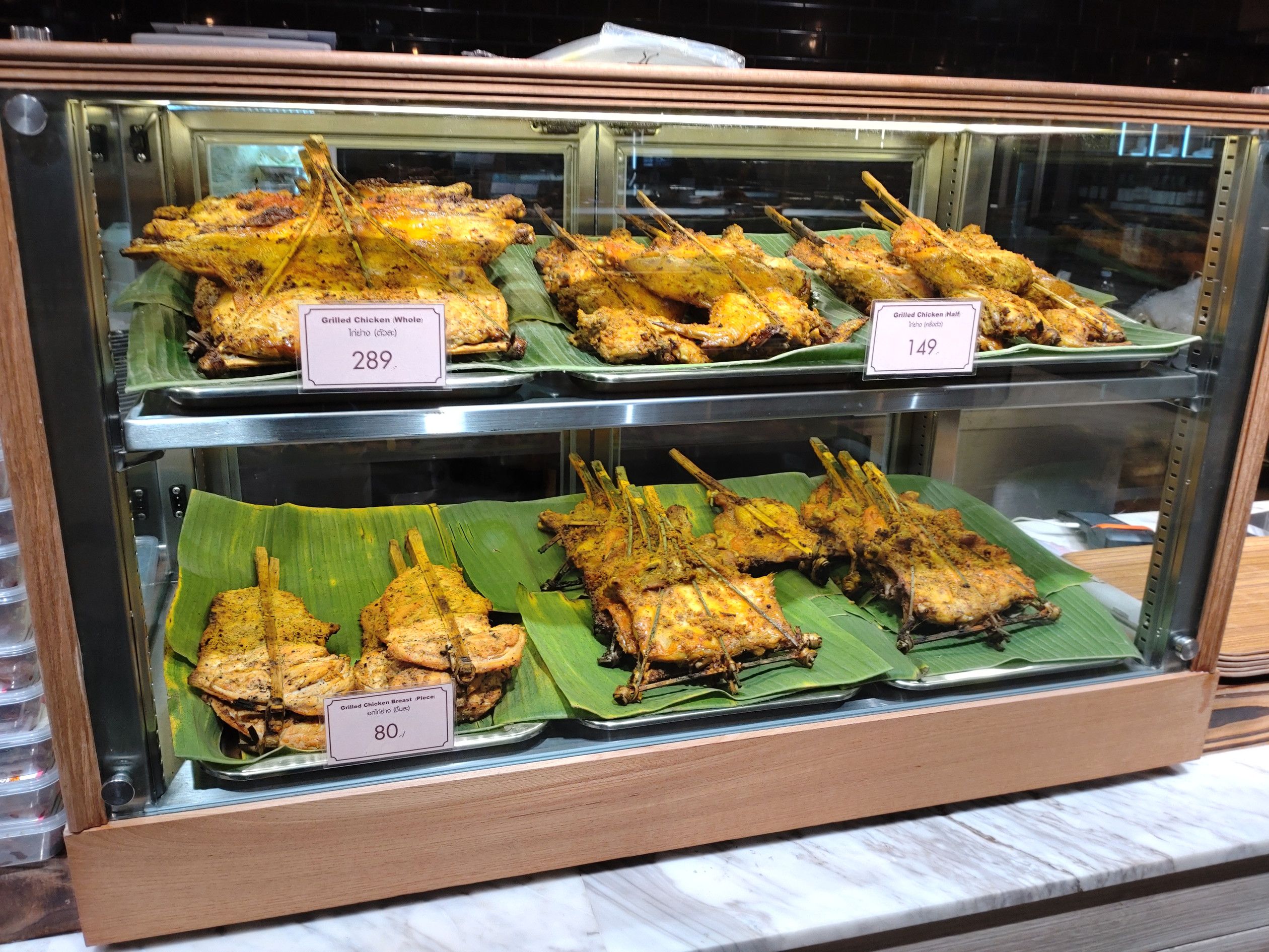スパイシーで美味しい焼き鳥 2022年01月15日 最近は。。。 総菜を買うに重宝しているセントラルチットロムへ行くのが楽しみになっている。 棚に並んでいないなどと言った不安定さが全く無い安心感がある。 店内の状況も理解しつつあるが、再度確認すると、フードホールは地下では無く1階に在る。 しかも、場所は化粧品や美容の為の店が並ぶ、その奥に在る。 これは、前回に来て習得した。 店内の商品は、多くの輸入品も揃っている。 こんな商品まであるので、凄いのです。 今回は、刺身で何か良いものがあればと思ったが、特に無し。 総菜を、幾つか購入してから以前から気になっていた場所へ。 以前に、担々麵を買ったコーナーへ再び。 今回は、焼き鳥を買って帰る事にした。 こんな品揃え。 左下の80バーツと、もち米を購入。 合計100バーツ。 注文後、包丁で切ってくれた。 そして、晩飯に焼き鳥を食べる事にした。 他の店と違うのは、表面に掛けられている粒々。 オーブントースターで少し焼き直し。 食べてみると、非常にスパーシーな旨味。 何だろう??恐らく、生姜などの辛み成分が掛けられているのだと思う。 これを、タレに漬けてから、もち米と一緒に食べると、メチャ美味い!! 本店は、此処らしいです。 非常に美味しいスパイシー焼き鳥でした。ポチッと2箇所応援クリックお願いします!にほんブログ村タイランキング 「バンコク」カテゴリの最新記事 「ガイヤーン」カテゴリの最新記事 タグ :#スパイシー#焼き鳥 < 前の記事次の記事 > コメント このブログにコメントするにはログインが必要です。 さんログアウト この記事には許可ユーザしかコメントができません。 コメントフォーム 名前 コメント 記事の評価 リセット リセット 顔 星 情報を記憶 コメントを投稿する