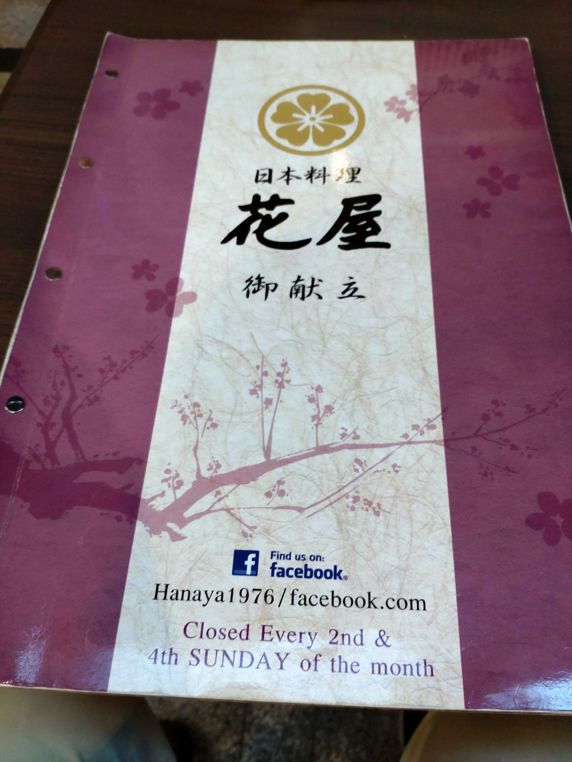 今回の最後の目的地は。。。 老舗日本料理レストランの”花屋”です。 今回で、3回目の訪問となります。 この日は、平日のお昼時でした。 近くに在ったならば、頻繁に利用したいと思う程に、安くて美味しいお店です。 テイクアウトが出来るか確認後に、メニューを頂きました。 これは、メニューのほんの一例にすぎません。