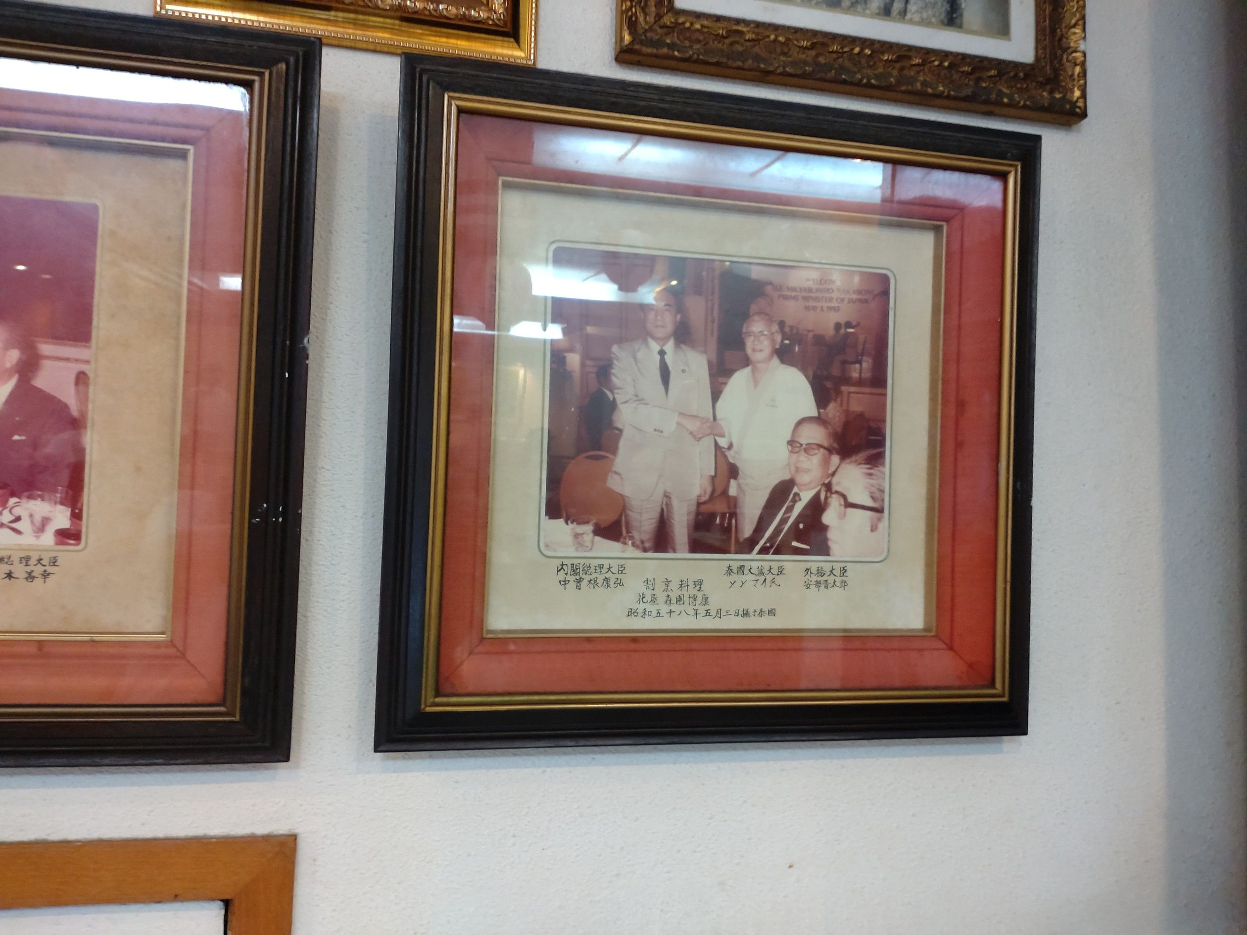 本当に多くのメニューの他に、日替わりランチメニューなどもあります。 オーダーしたのは、幕の内弁当(上)です。 前回来た際には、カウンターに座って食べましたが、日本の料理店で食べているような雰囲気で、板前さんも教育されていて感心した記憶もあるのですが、それは昔から変わりません。 壁には、こんな写真もありました。 著名な方々も、来ておられたんですね。