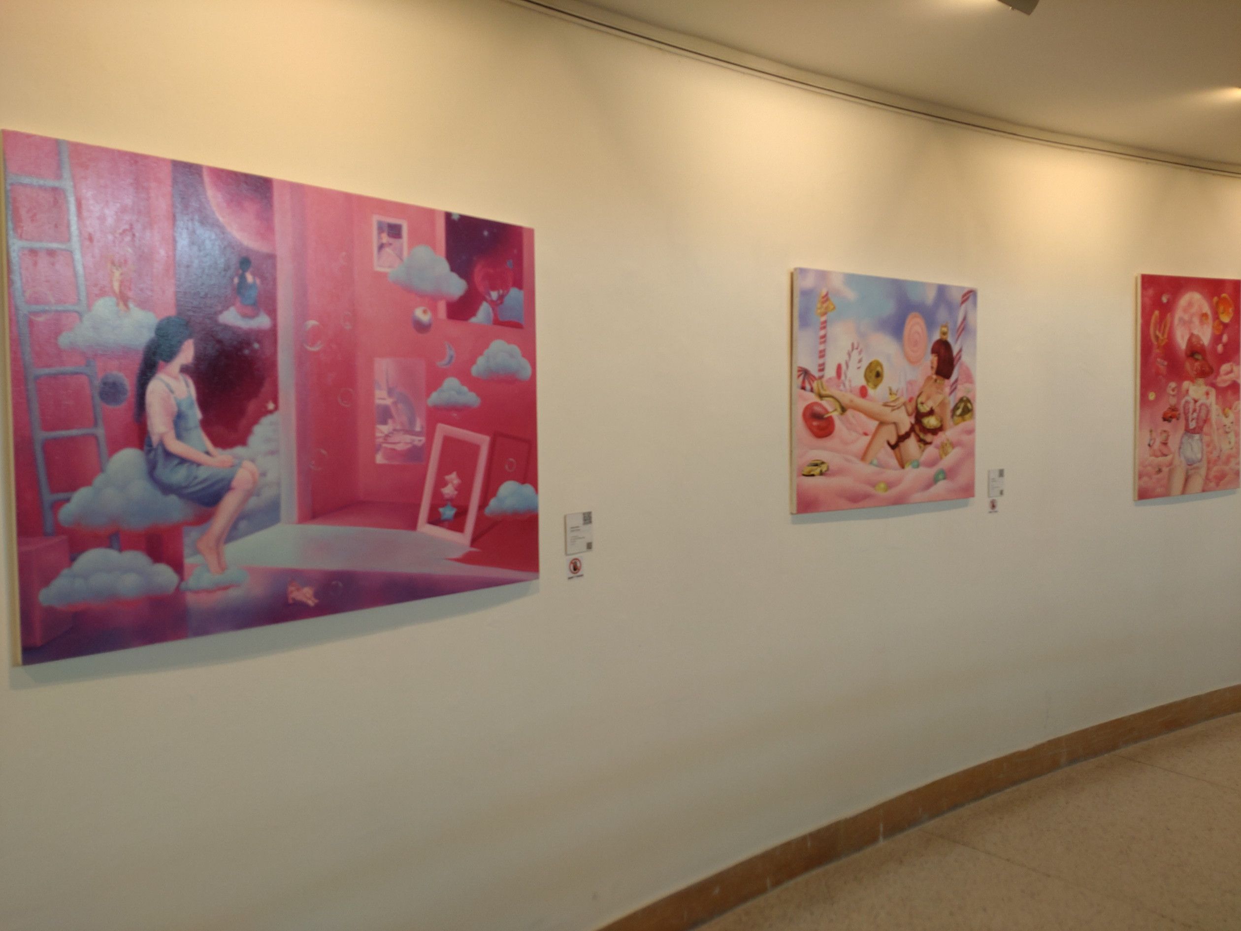 2階には何もなく、3階です。 こんな絵が並んでました。 これが、ユニークで面白かったですね。 これは、ほろりとしましたが。。。食べ盛りなんでしょうね。