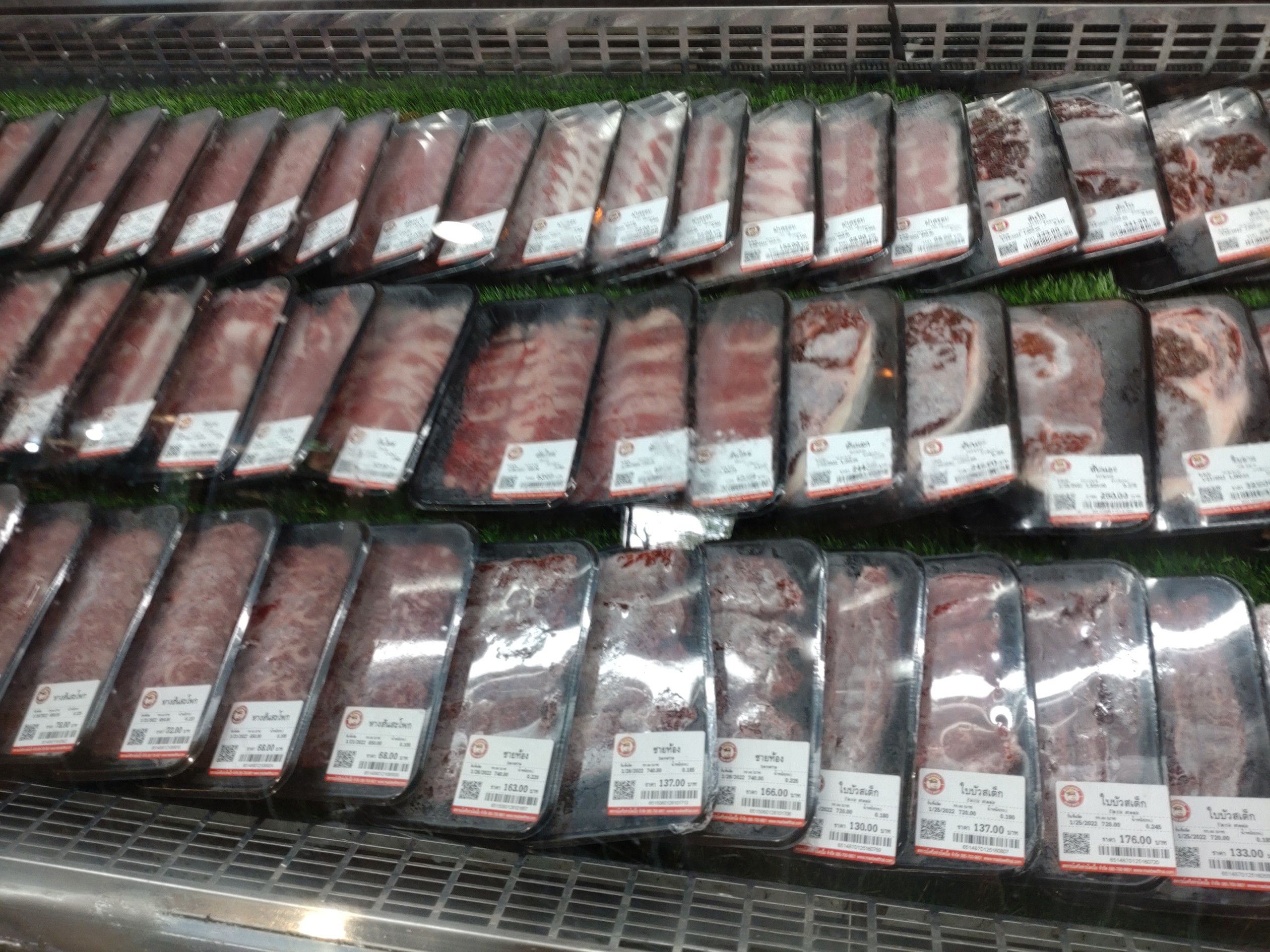 以前にカセサート大学へ行った際に。。。 キャンパス内のショッピングモールでステーキ肉を購入していた。