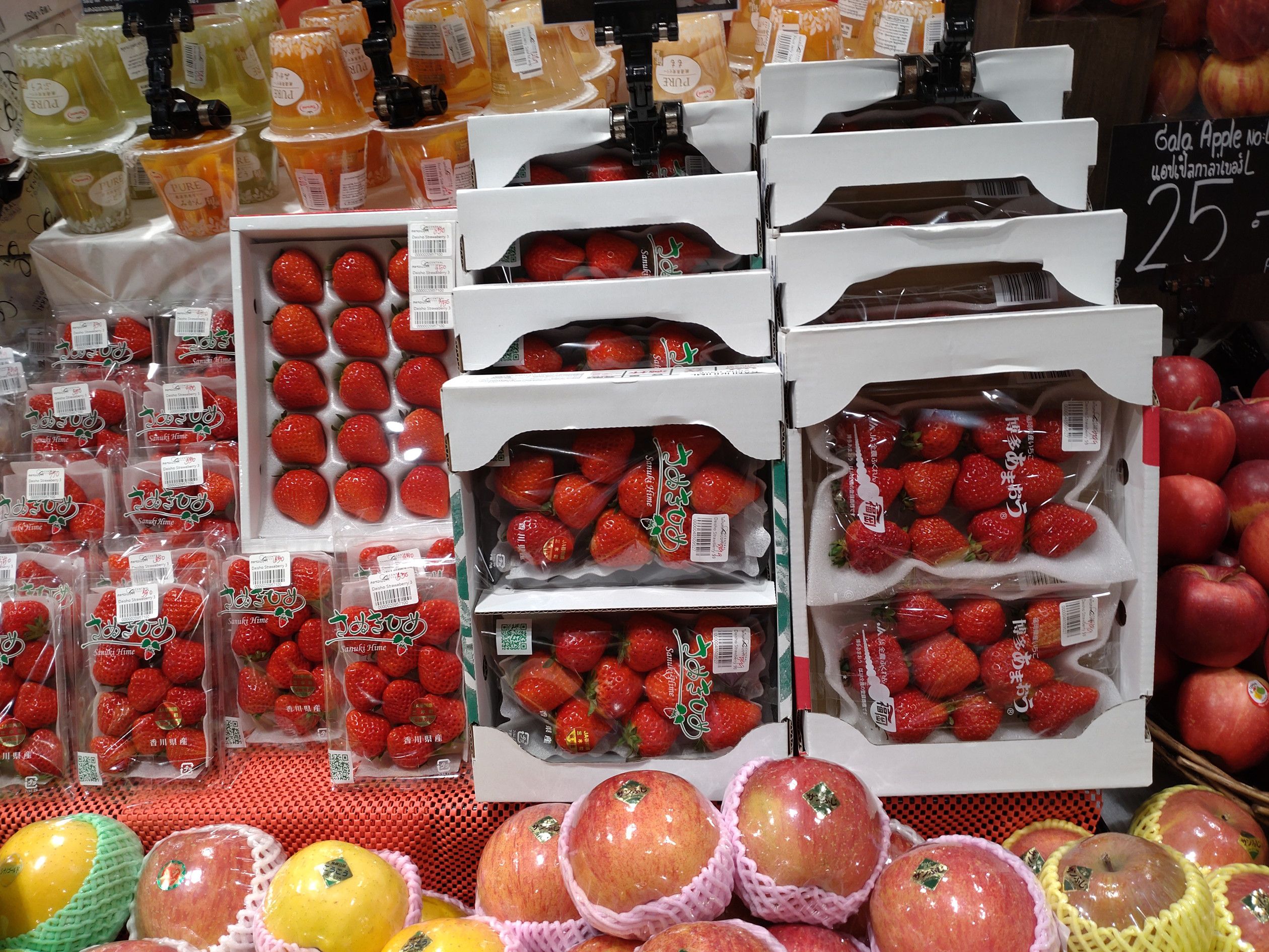 数年前までは車を運転して頻繁に訪れていた場所だけれど、今では意を決してバスでなければ行く事が出来ない場所。 レストラン街では、色々な店を利用させて頂きました。 入り口を入ると花で作られた虎がお出迎え。 しかし、最も頻繁に利用したのは地下の食料品フロアー。 このフロアーは、決して広くはないけれど、品揃えの内容と質には関心をしてました。 この奥に、スーパーがあるのです。 この様に、陳列も綺麗。 この日は、日本から輸入した真っ赤なイチゴも並んでいたけれど、値段が高くて手が出ませんでした。
