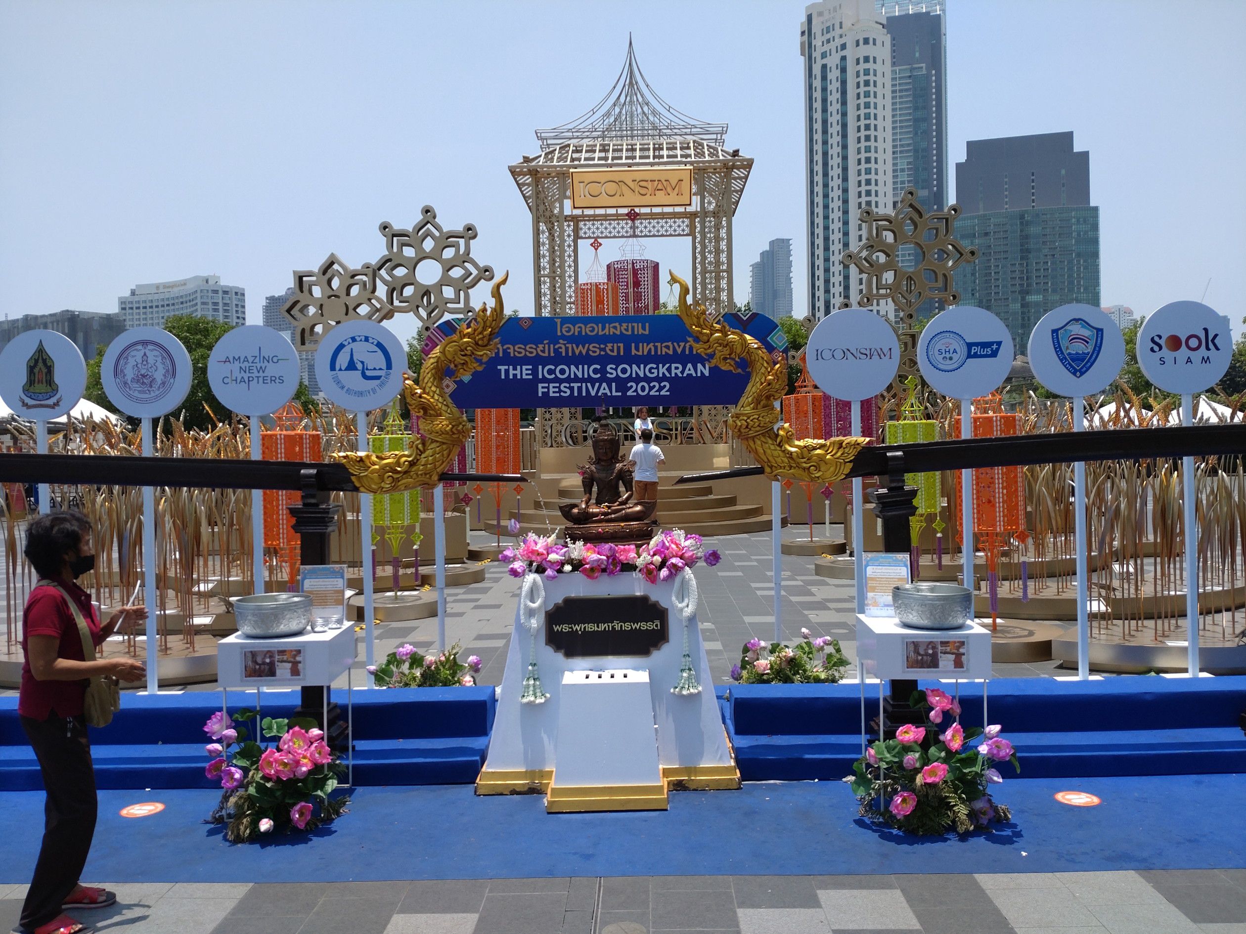 早々に飲み干して、帰宅します。 帰りは船で。。。 乗り場近くにも、お参りする場所がありました。 綺麗ですね。 船が来るまで暫く待ちました。 そして、やって来ましたが満席状態のようでした。