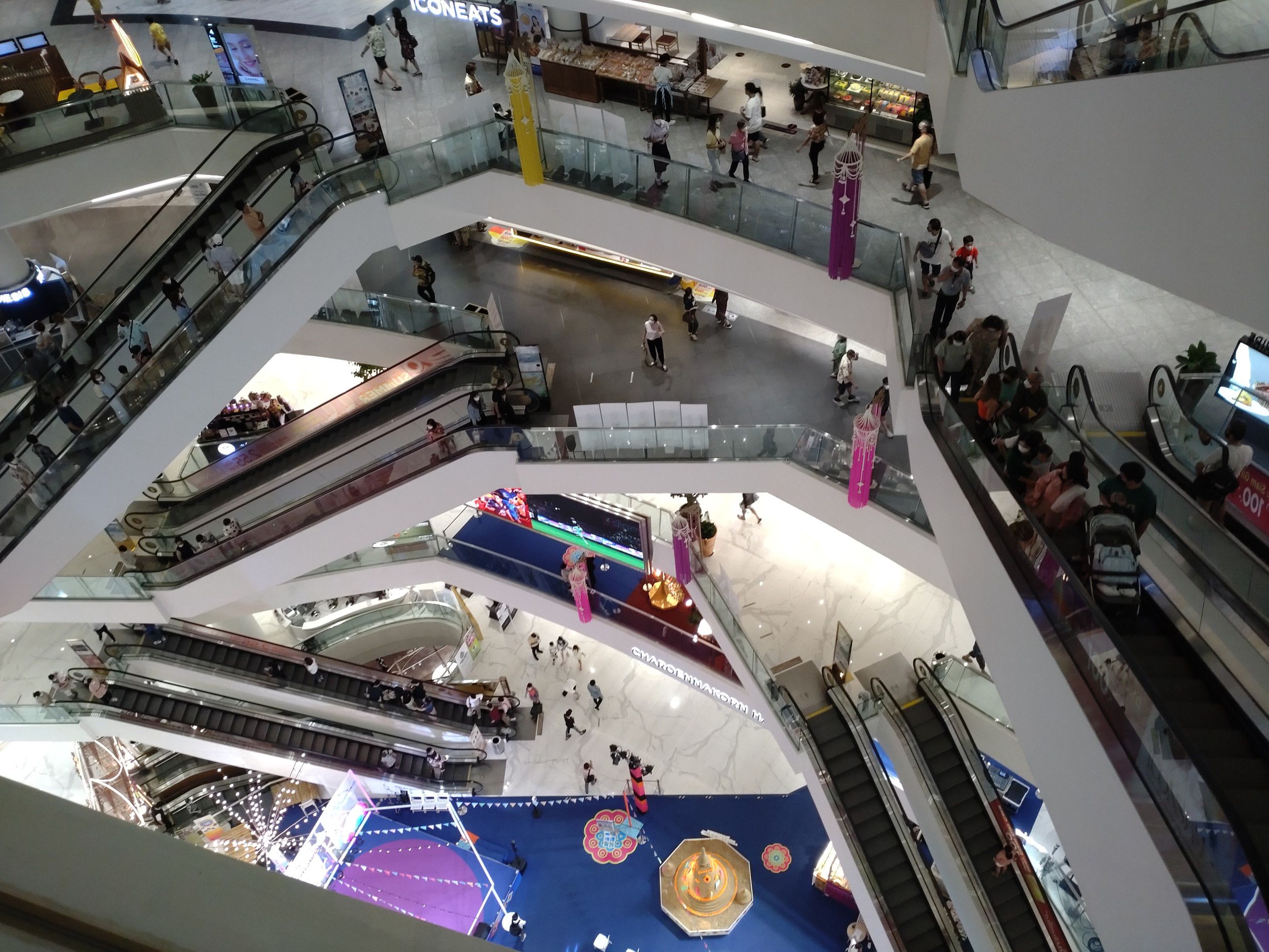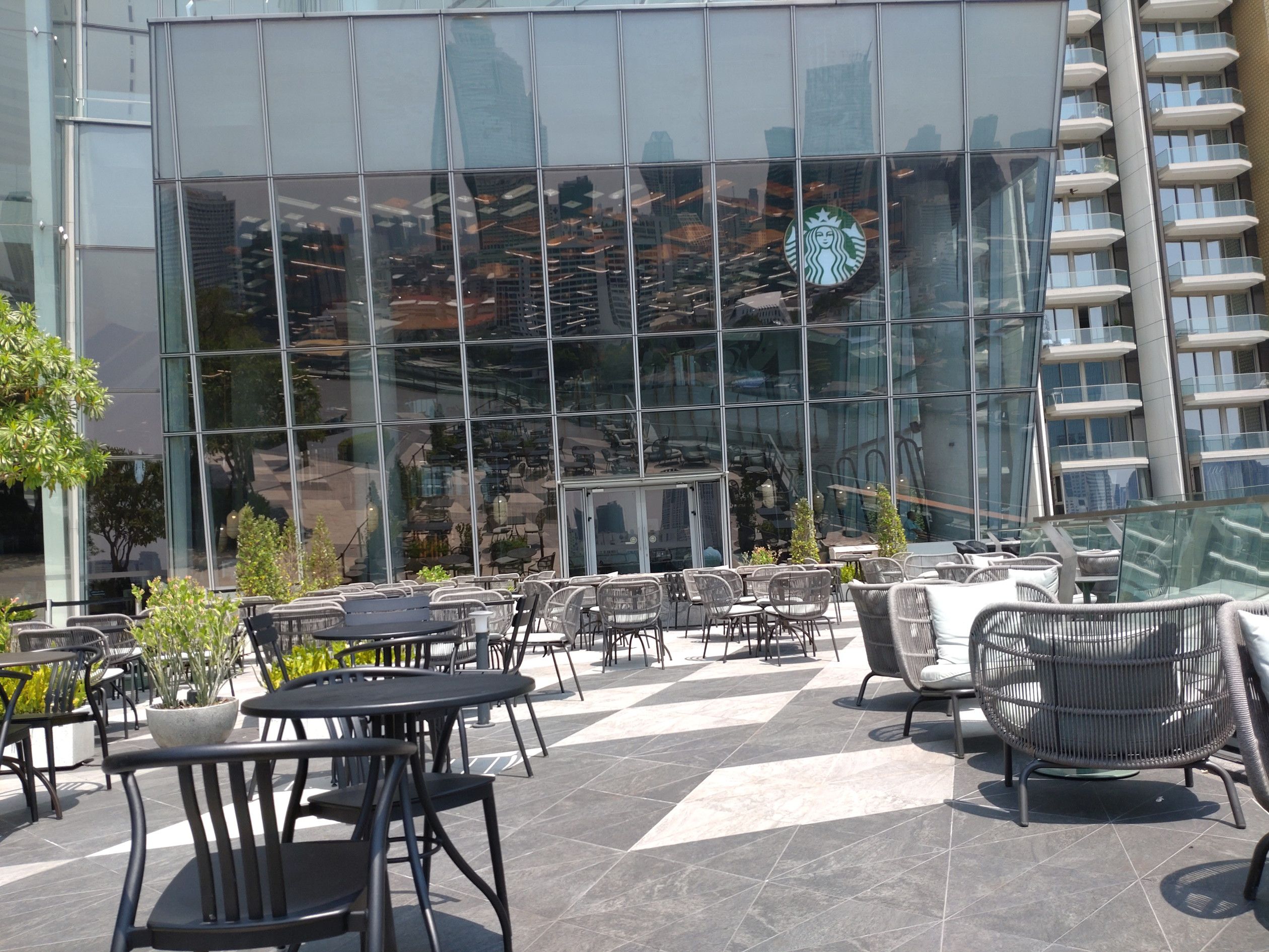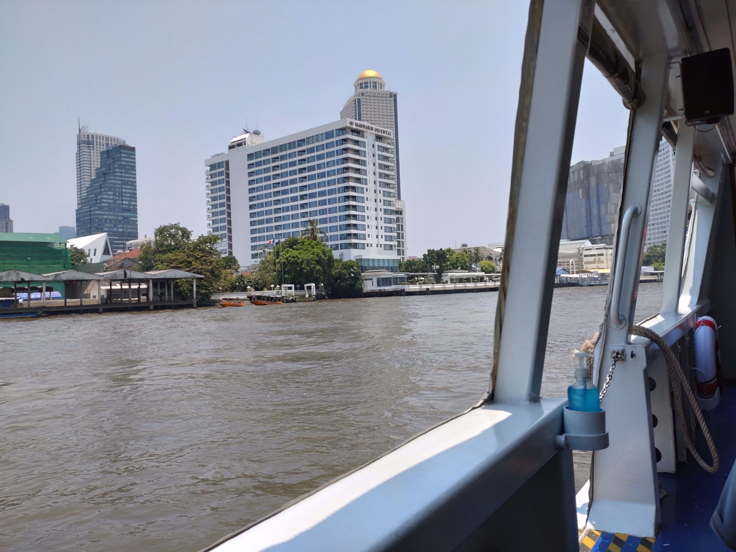 最近は、アイコンサイアムへ来ると、此処のテラス席で景色を観ながらの珈琲がお気に入りです。 この時は、室内の席は3割ほど埋まってたでしょうか。 そして、自身はコーヒーと共にテラス席へ。 何と、私だけ。 この日は、快晴なのですが、空気はPM2.5の影響なのか?スカッとしていません。 こうして景色を観ると、前回来た時と全く違う点があります。 船の往来が非常に増えているのです。