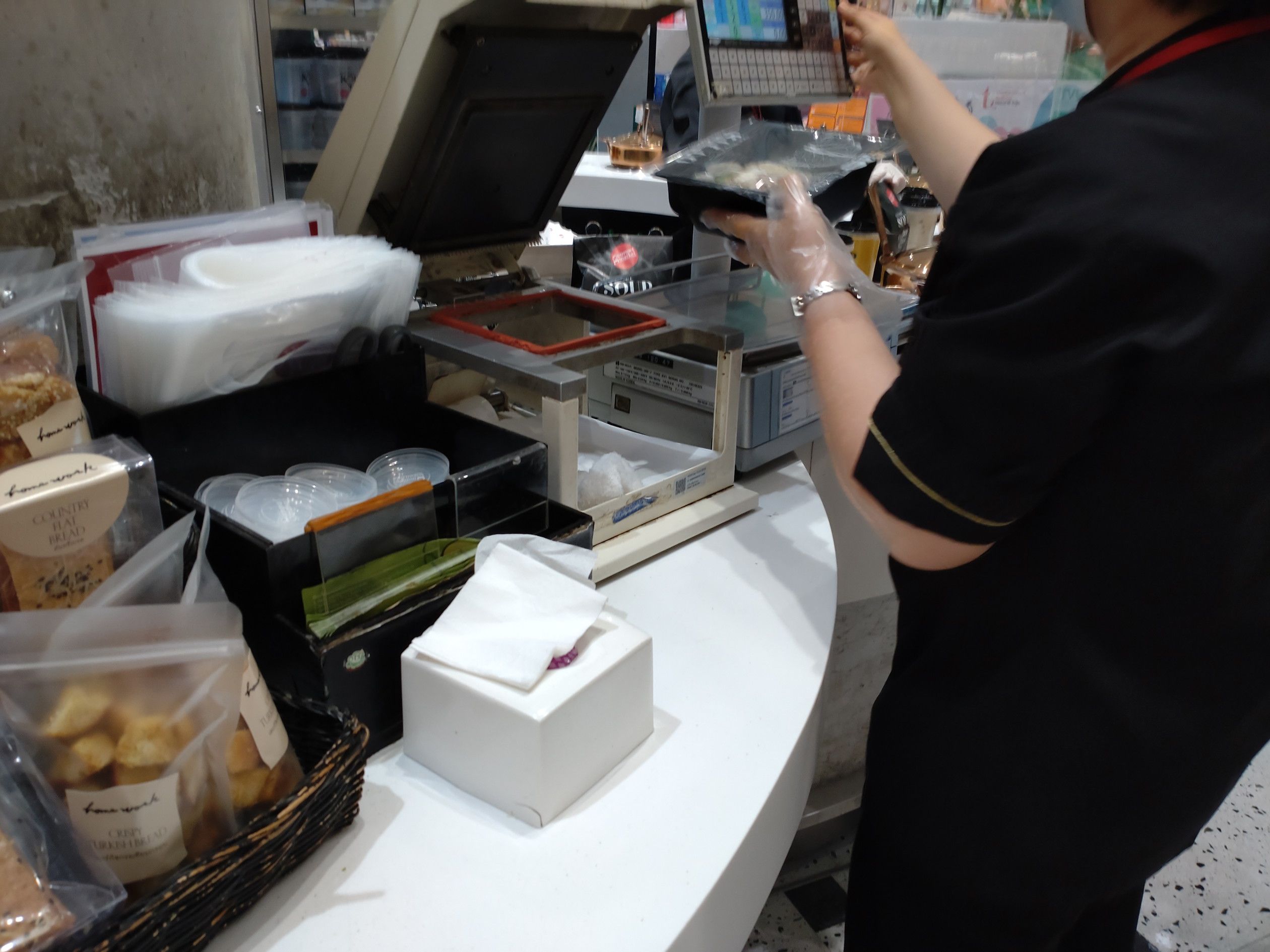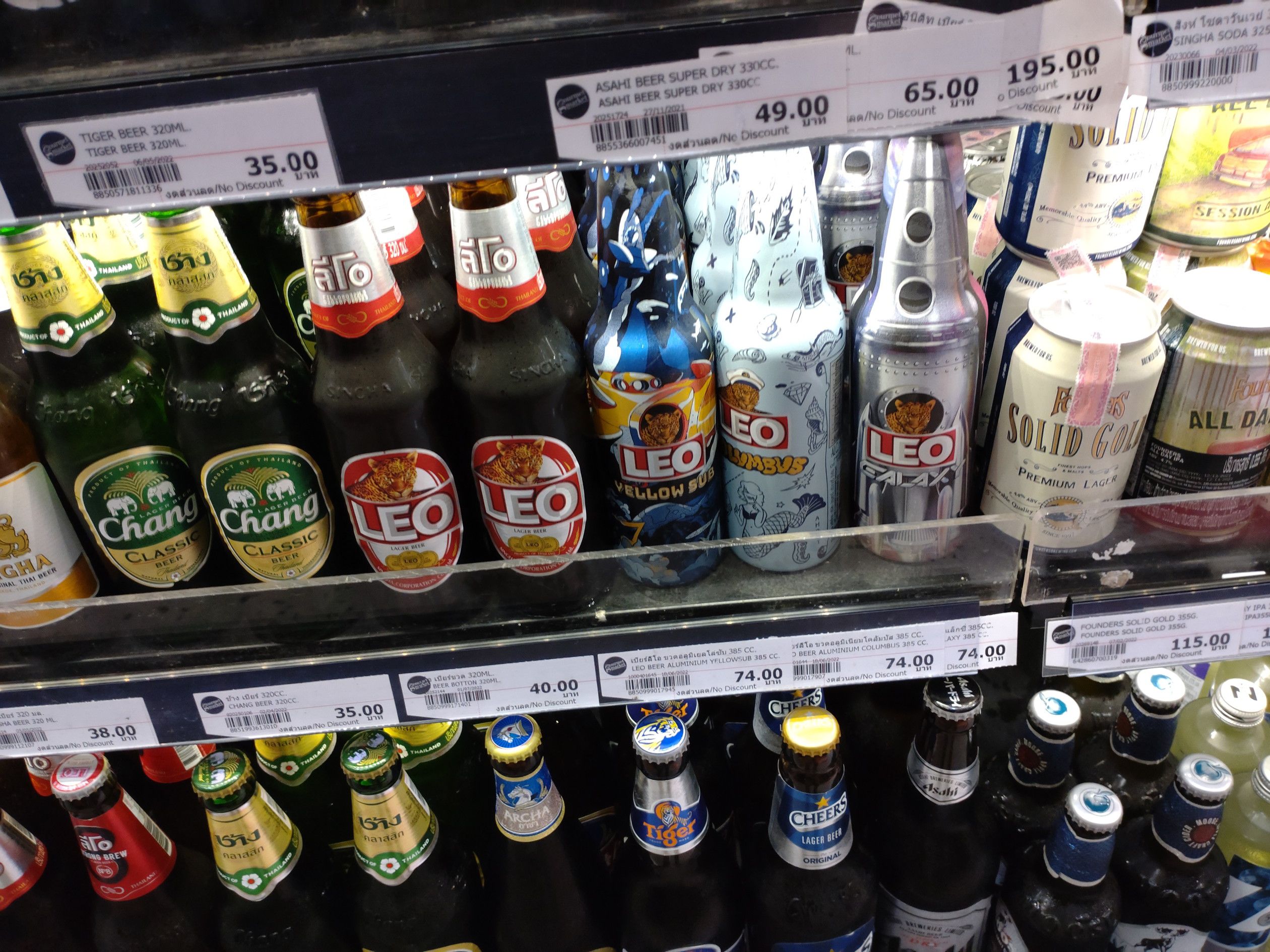 対応してくれたのは、電話をくれた方だったので、スムーズに手続きは進み、終了。 折角なので、食料の買い出しは、エムクォーティエへ。 この時、平日のお昼頃だったのだけれど、結構な人出でした。 100g35バーツコーナーで野菜を購入。 手人さんに渡すとパック詰めをしてくれました。 惣菜も購入。 珍しいLEOビールも1本。 これを晩飯に食べます。 ところで。。。ビールは。。。 値段は少し高めでした。