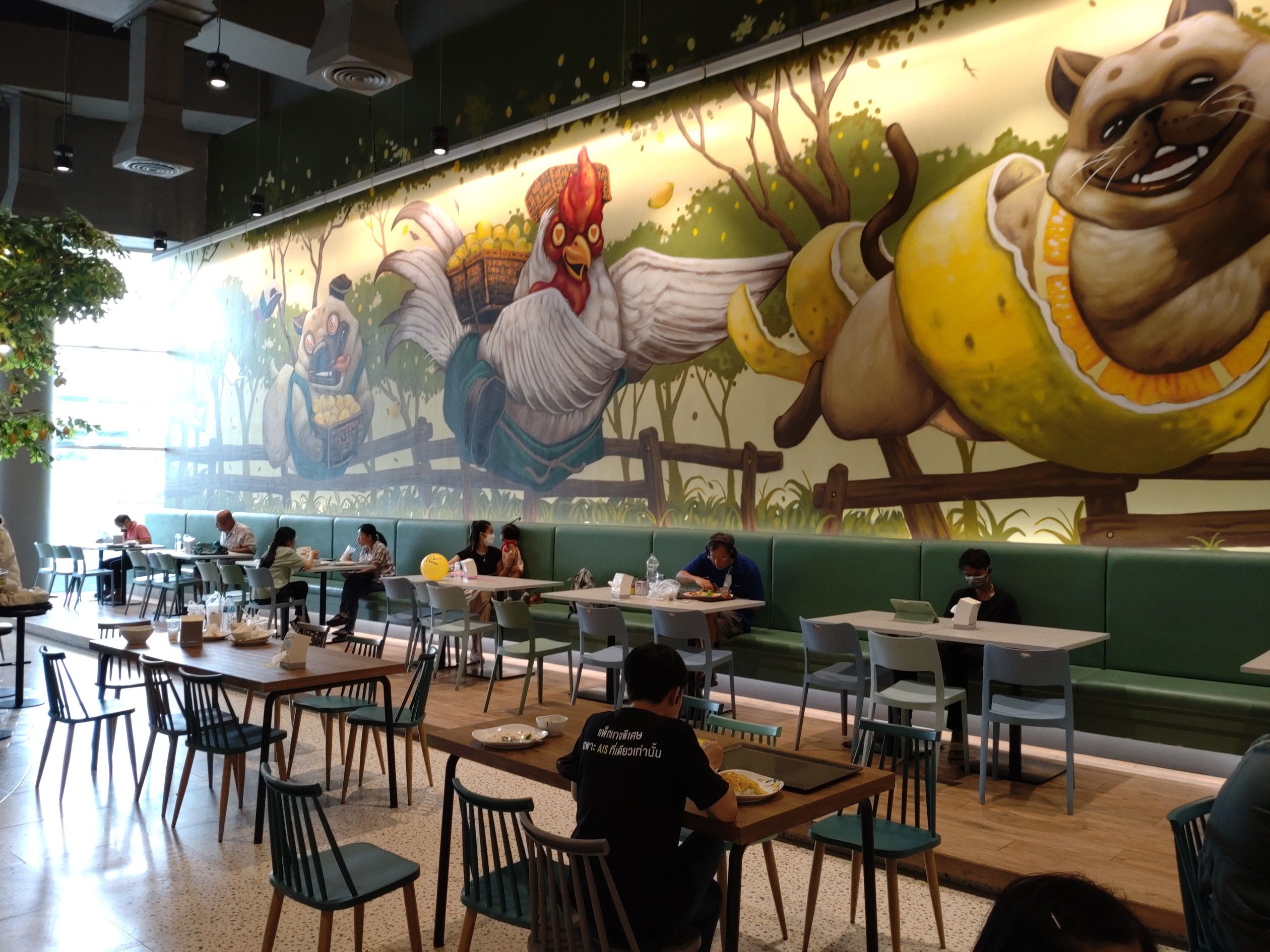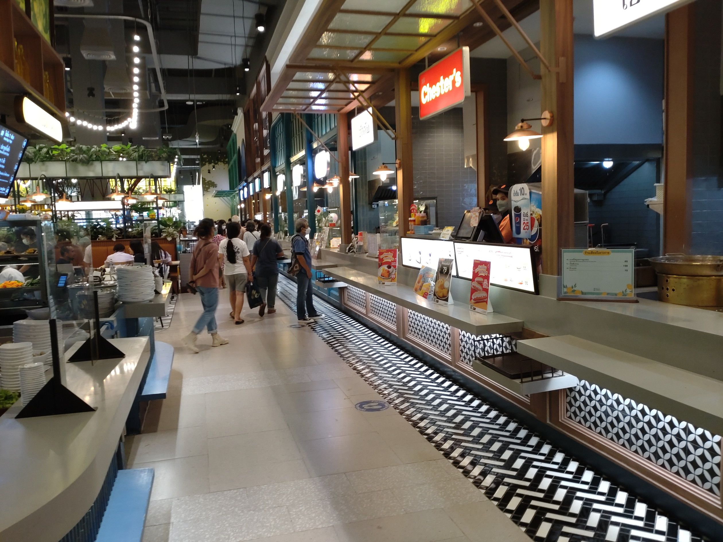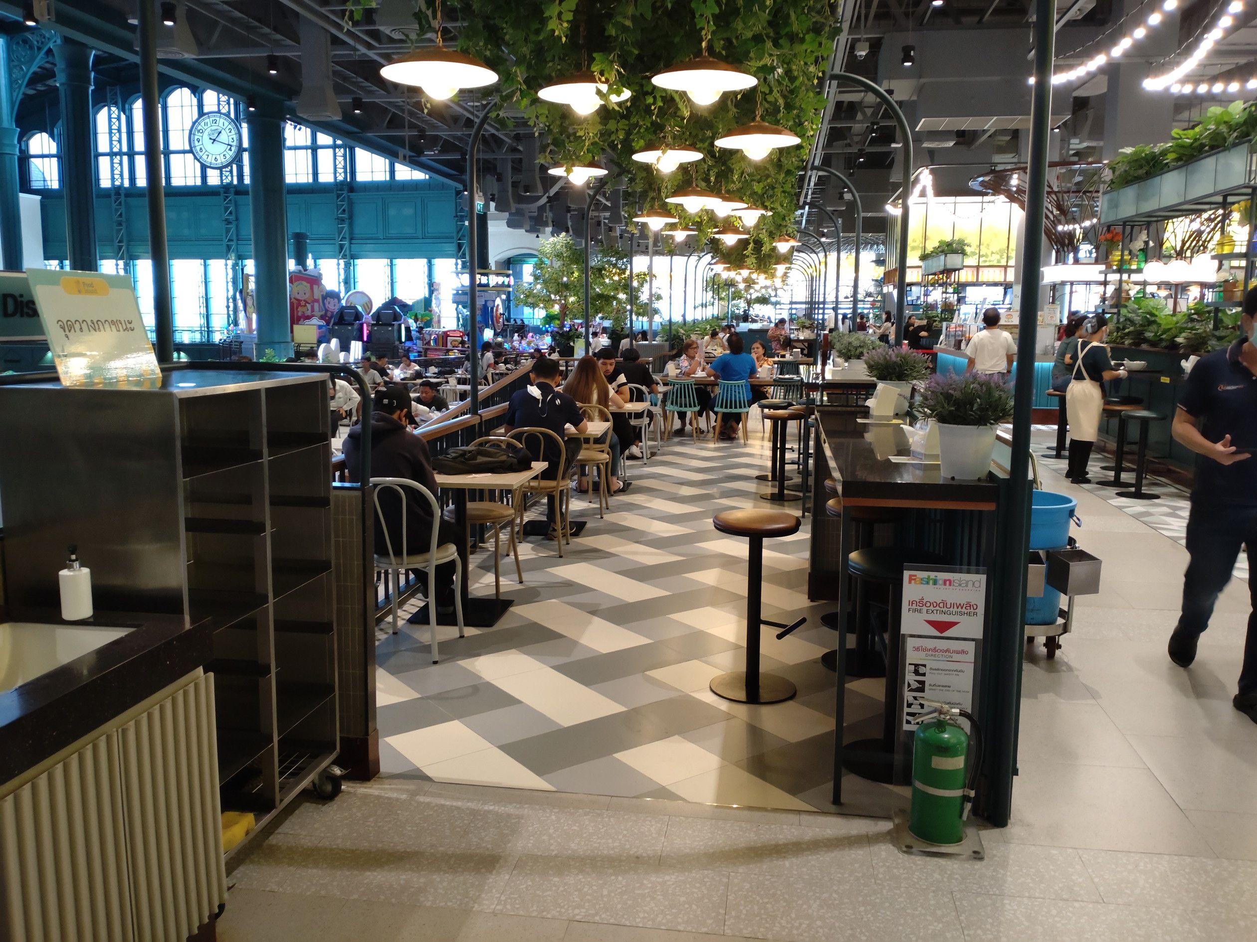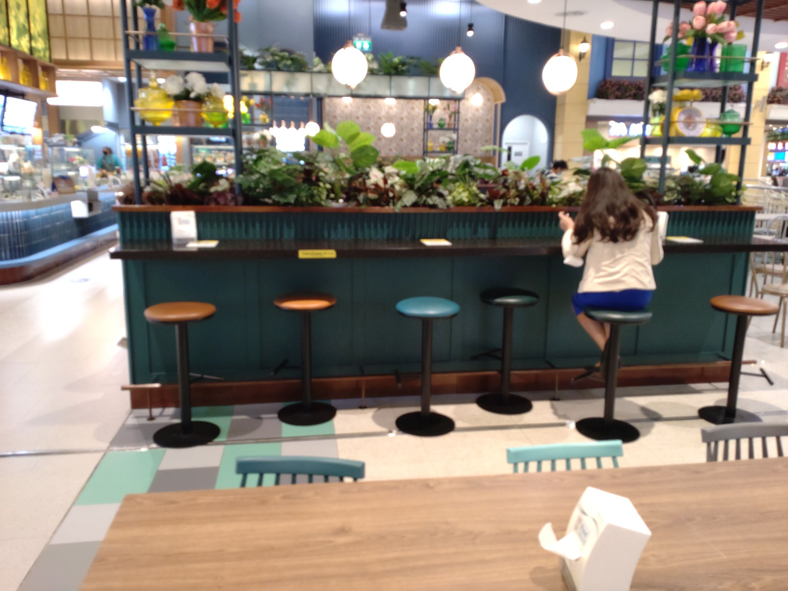 店内を歩いていて気になった場所。。。 遠くから見ると、直ぐには気が付かなかったのだけれど、よくよく見るとフードコートと判りました。 行ってみると広々として雰囲気が良いのです。 カウンター席もありました。