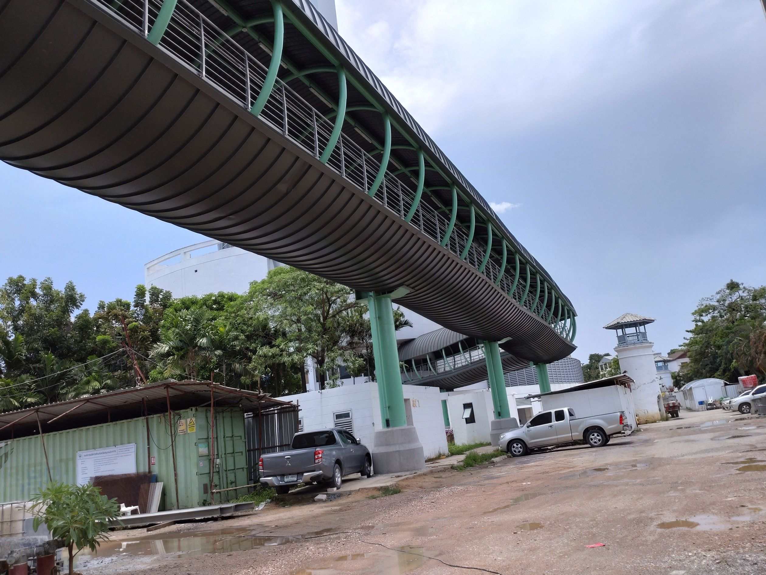 そして何と!驚くのは! この写真は、駅を出て直ぐの場所から撮影したのですが、スカイウォークが川沿いにも向かって建設中だったんです。 これが、川沿いの写真です。