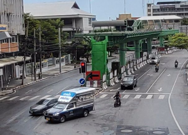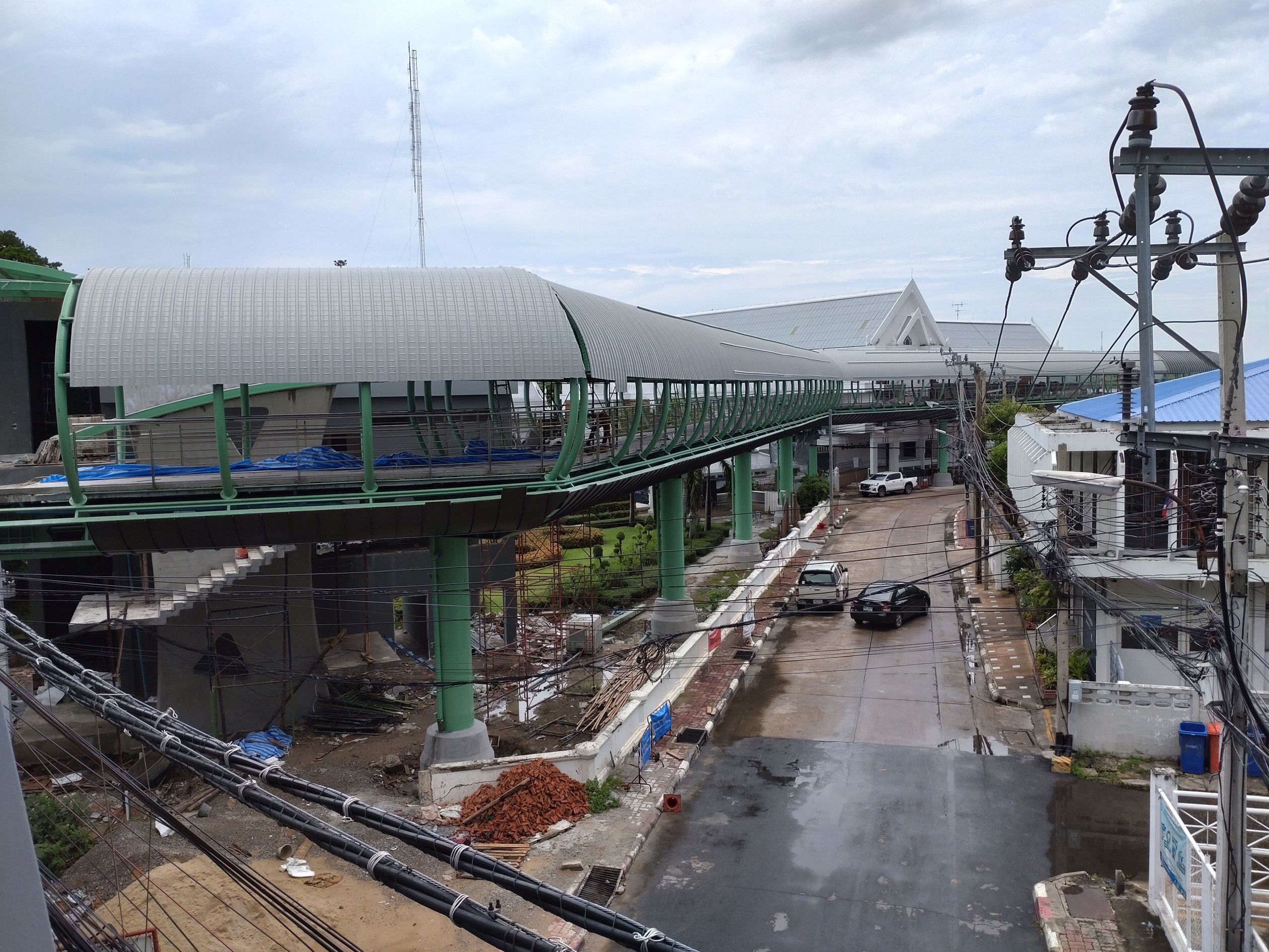 スカイウォークが建設されていたのです。 BTSの駅方向に向かって建設されていたのですが! 広い道路の手前でストップ状態でした。