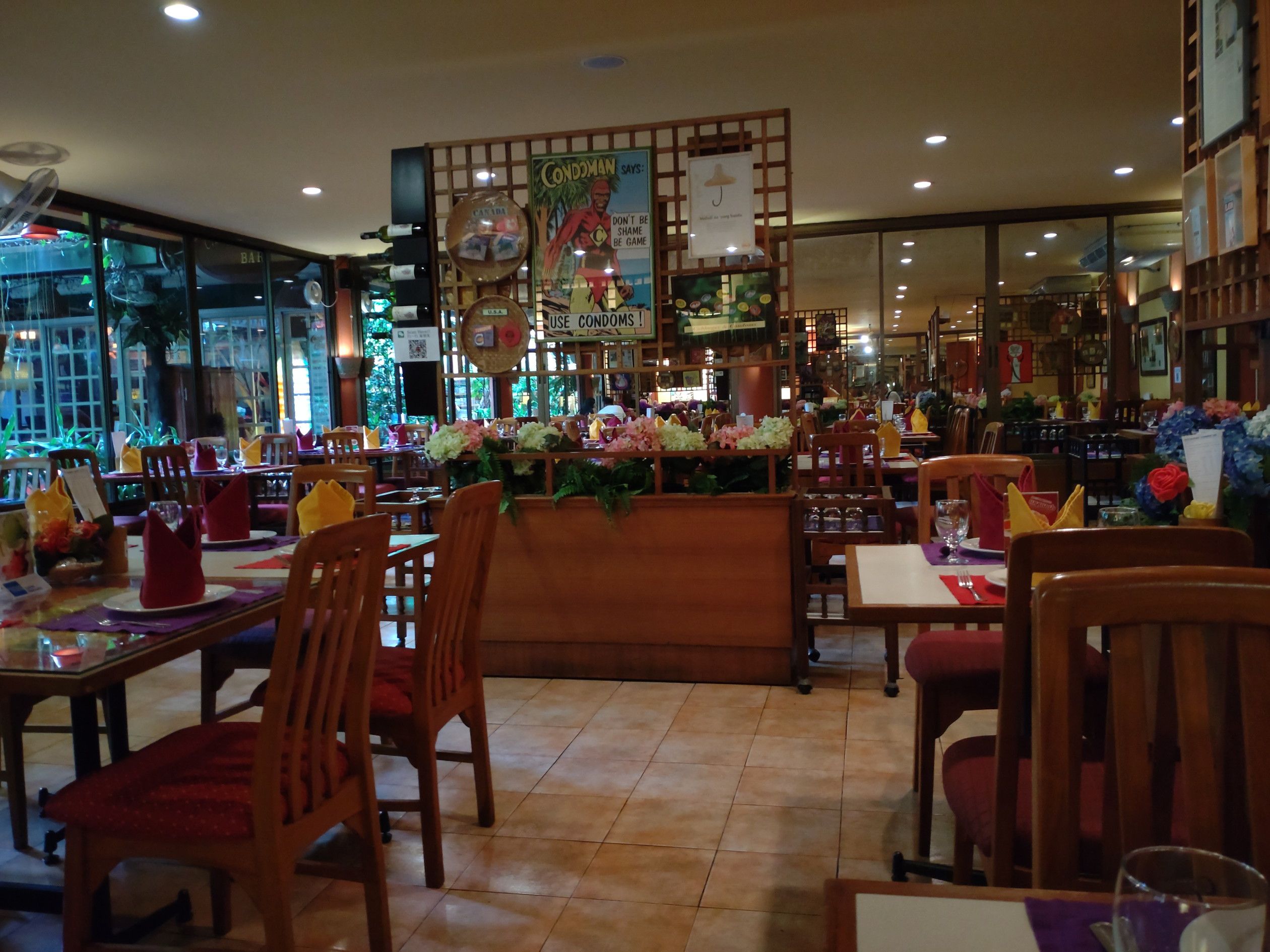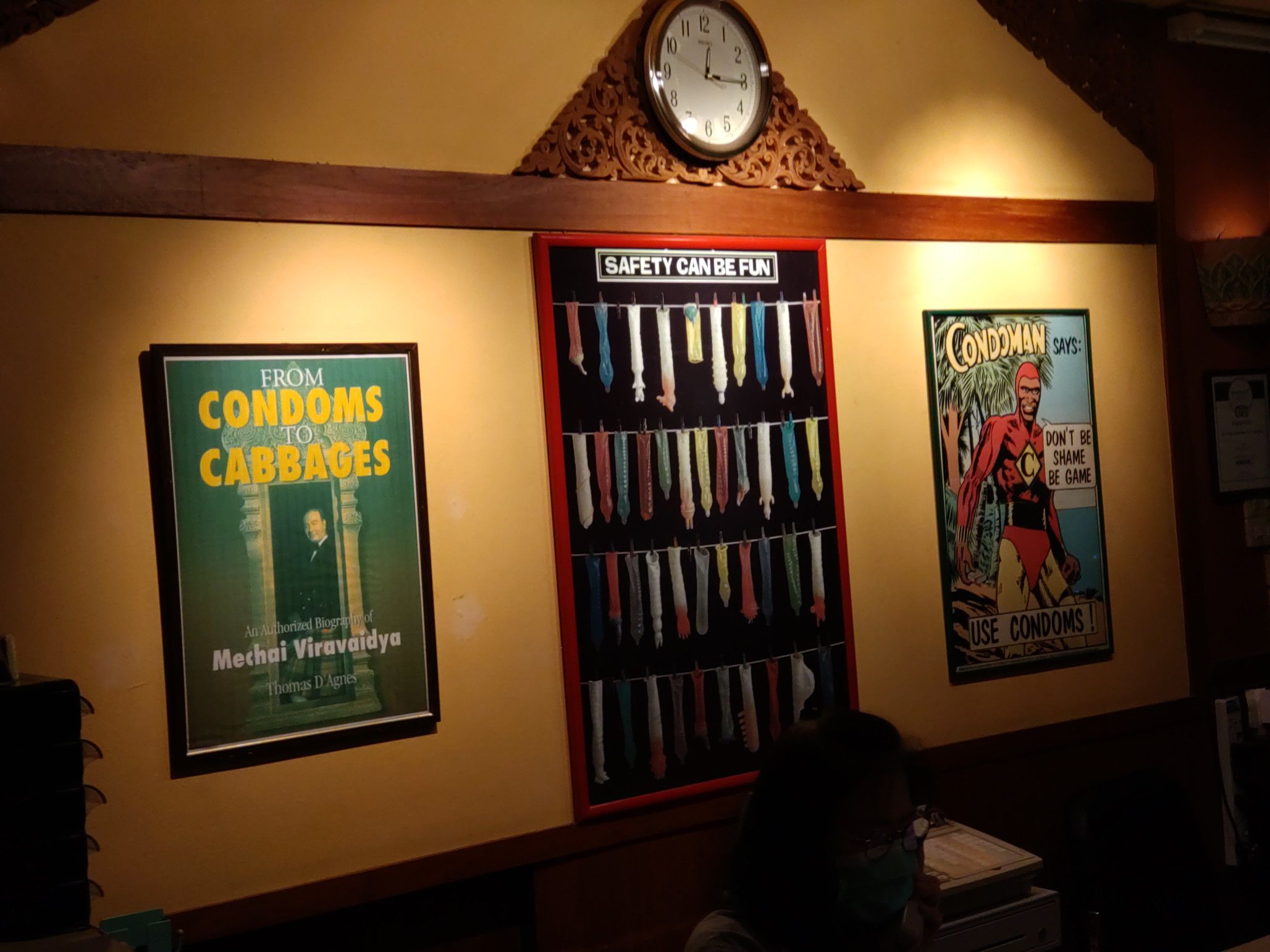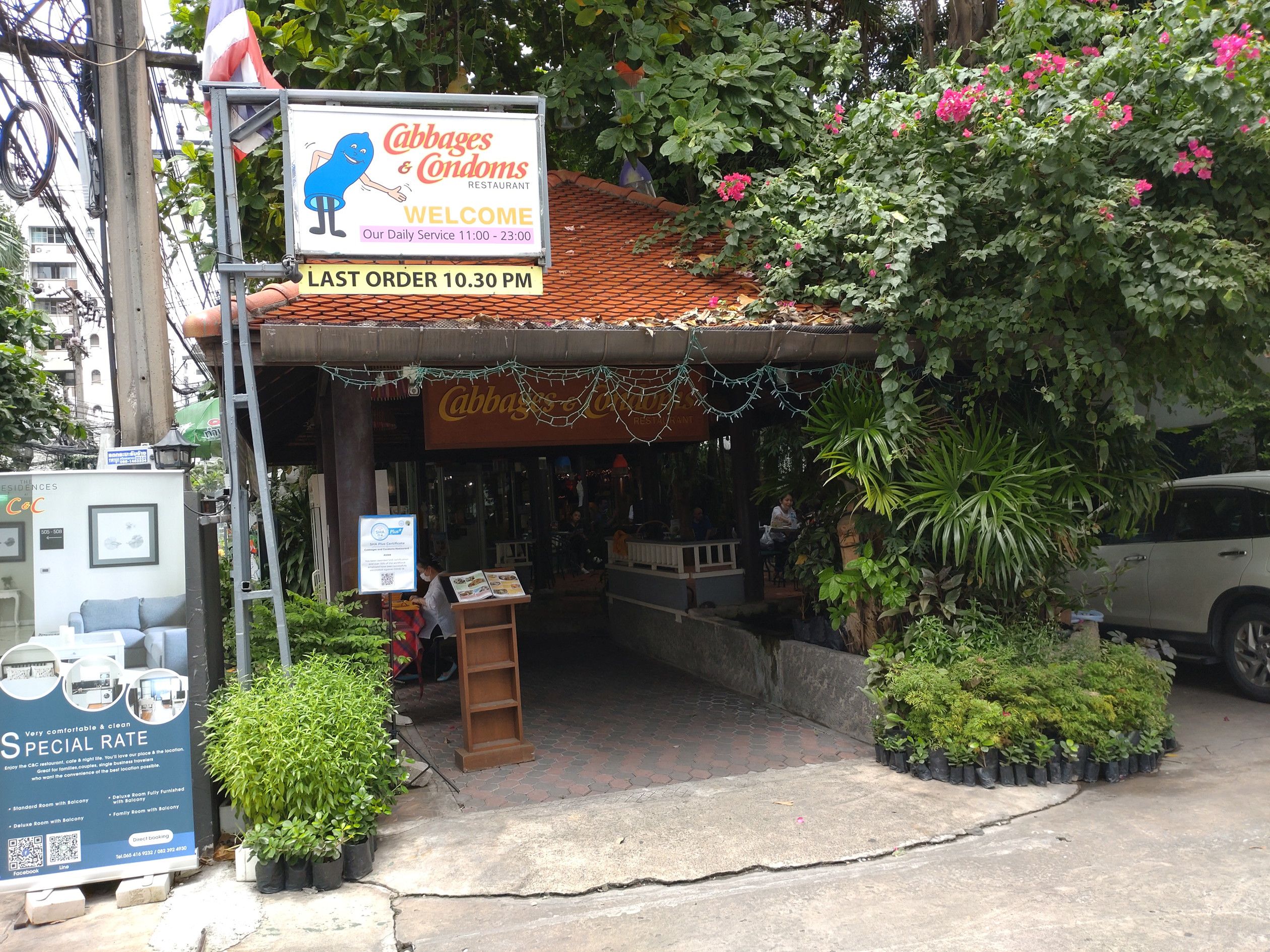 先日は。。。 アソーク界隈へ来た際には、久しぶりに行ってみたいと思っていた店へ。 ソイ12を入って暫くして右側にある。 店の名前を見ると、何じゃこれ?!と思う方もいると思うけれど、真面目なお店。 この辺に住んでいた昔には、頻繁に出張者を連れて来た思い出がある。 入り口を入ると、御覧の通り敷地は広い店。 コーヒー&ベーカリーの店も在る。 奥へ行くと、屋外のテーブルもあり。 室内も、広々としている。 壁の至る所に、コンドームの重要性を訴える貼り紙が。。。 そして、メニューを受け取りました。 プーパッポンカリを注文し、暫く待ってテイクアウト。 417バーツ。 黒紫米と一緒に食べます。 良い意味で、普通に美味しかったです。