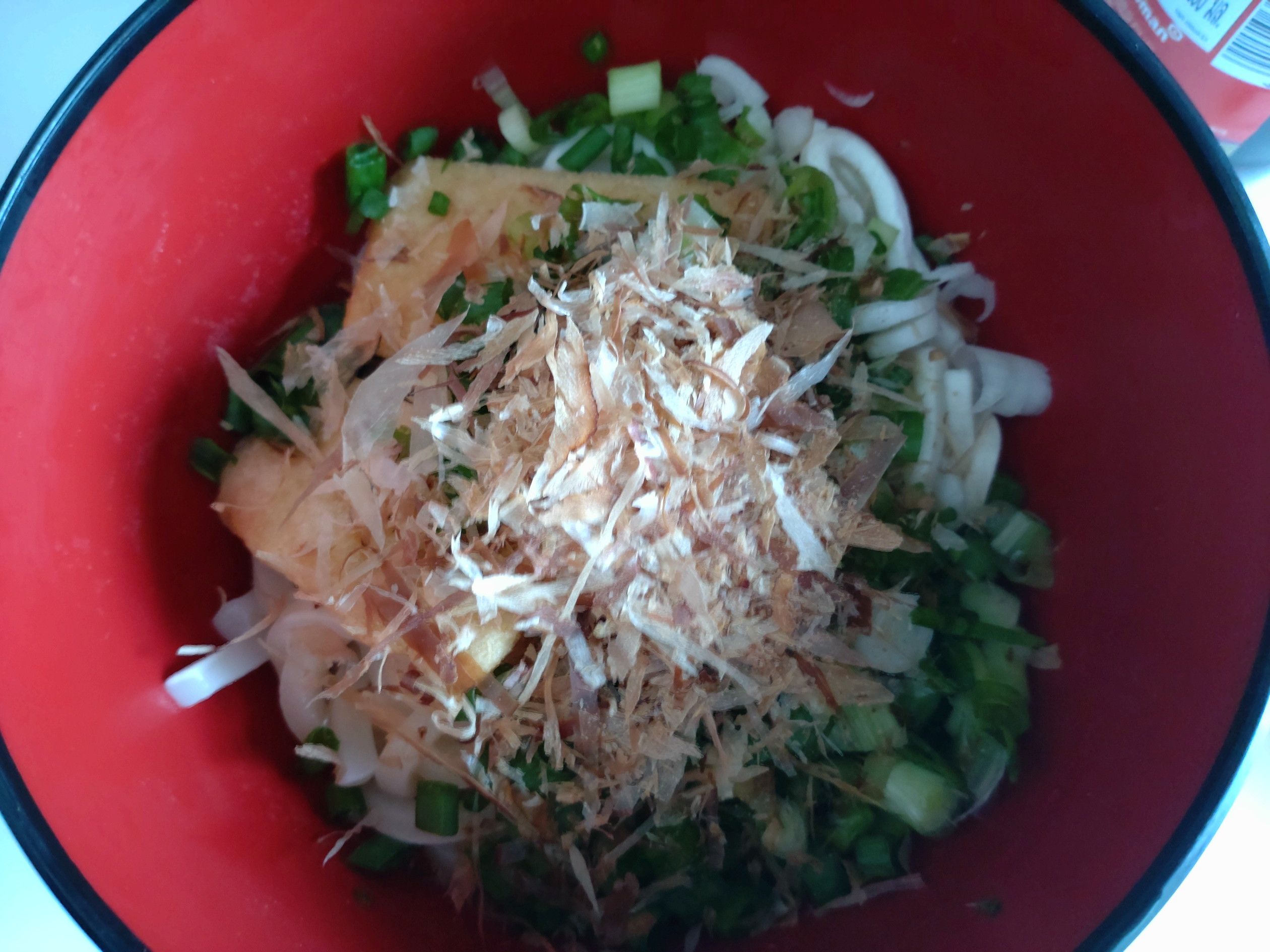 ガックリ! なので、セントラルワールドへ向かいました。 前回来た際に知った、Nippon Marketへ。 此処も、こんな状態だったので、場所を移しフードホールへ向かいました。 此処は、大勢の人でした。 自宅の冷凍庫には、うどんが入っている事を思い出し、ドンキで買った天ぷらを使って、ぶっかけうどんを食べる事にして、タレを購入。 ネギは、多めに入れました。 食べながら感じたのは。。。