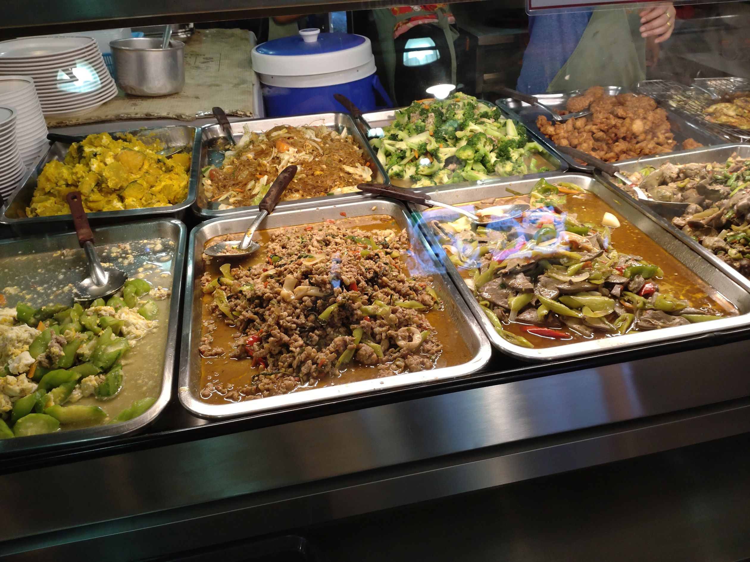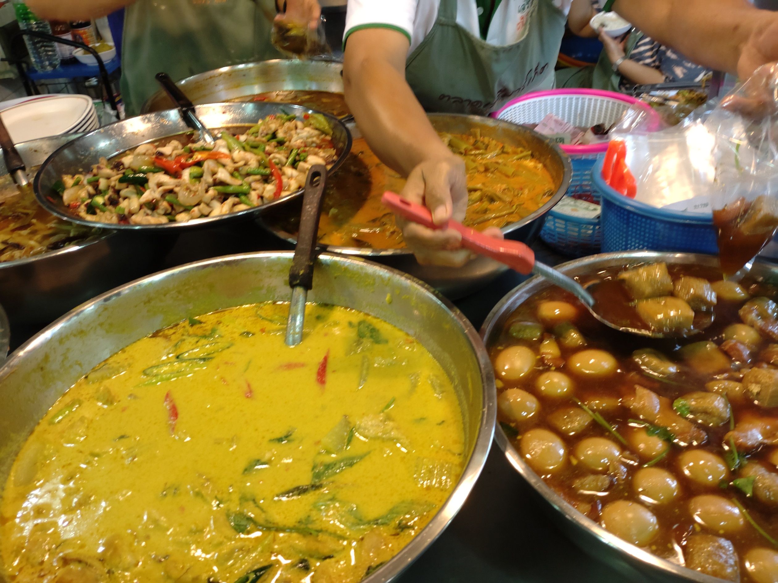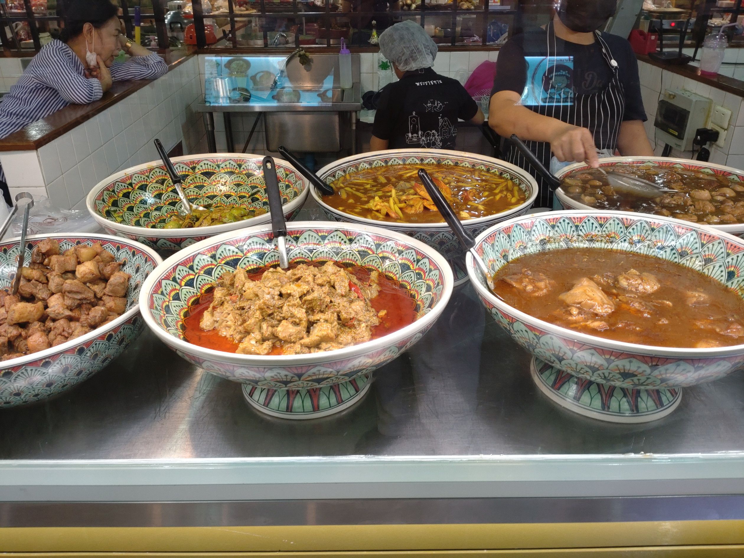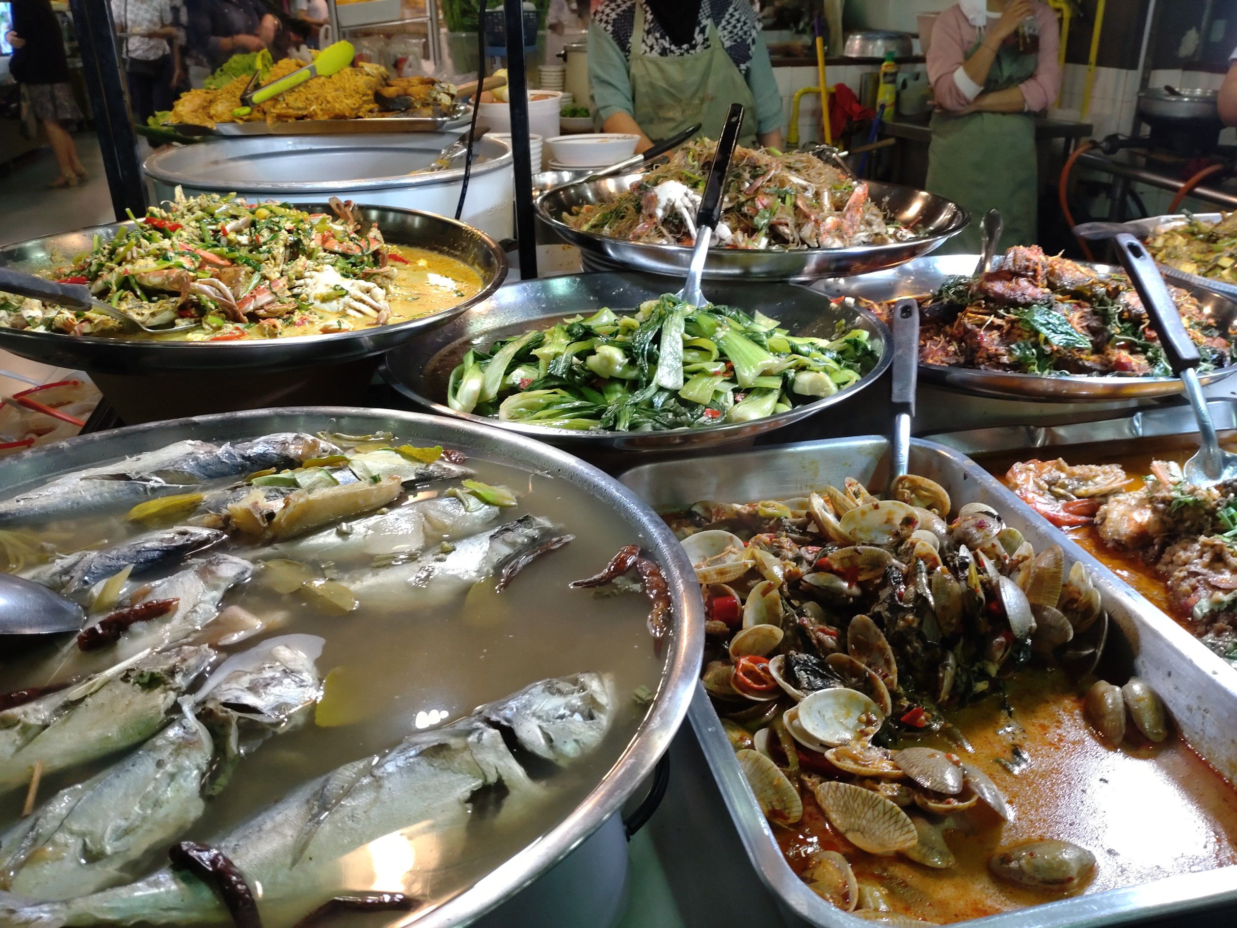 そして、その殆どは惣菜店なのです。 ここで買って、奥のテーブルで食べる人や、テイクアウトする方々で大賑わいです。 兎に角、多くの店が在り多くの種類の料理が売られています。