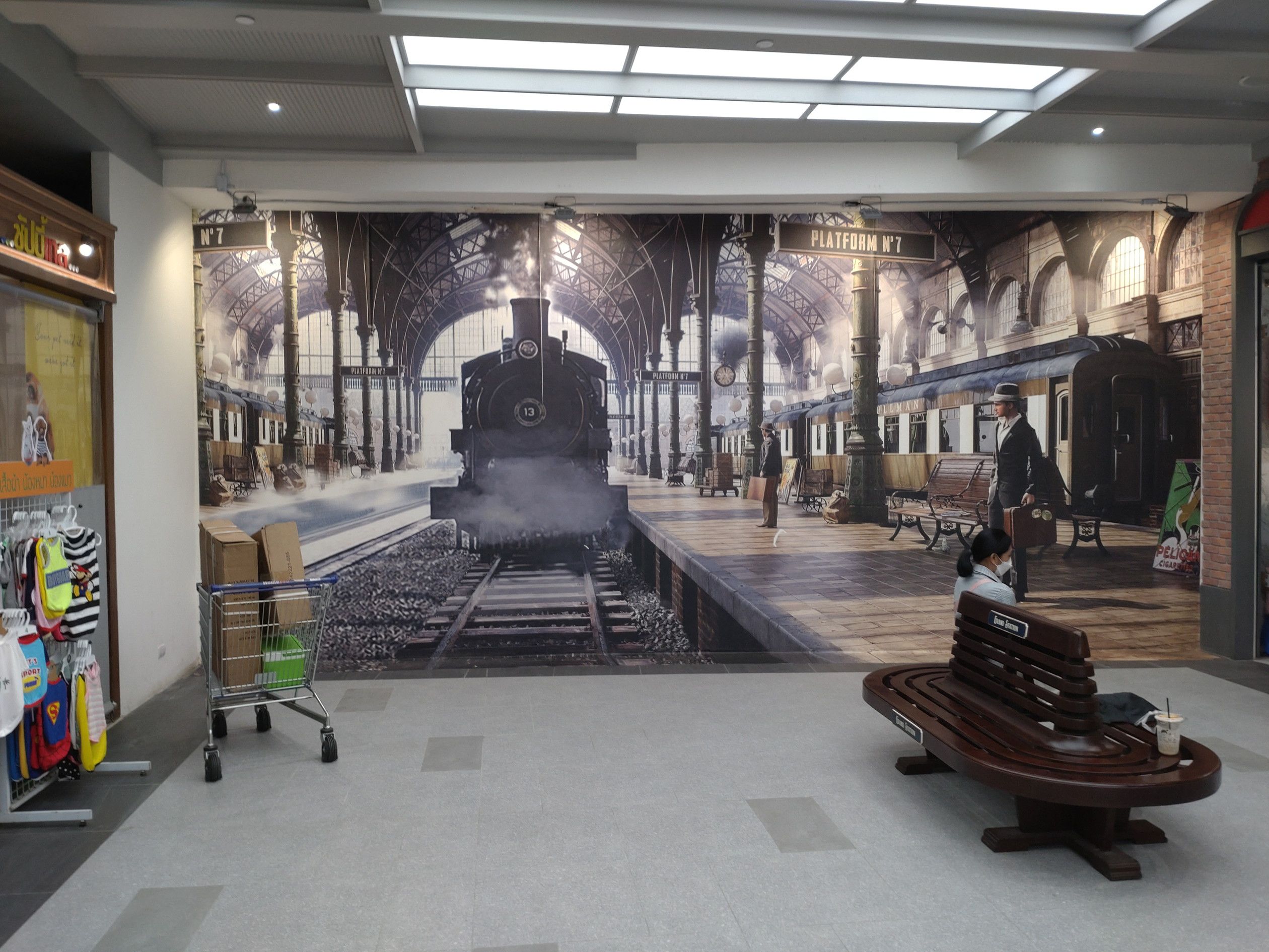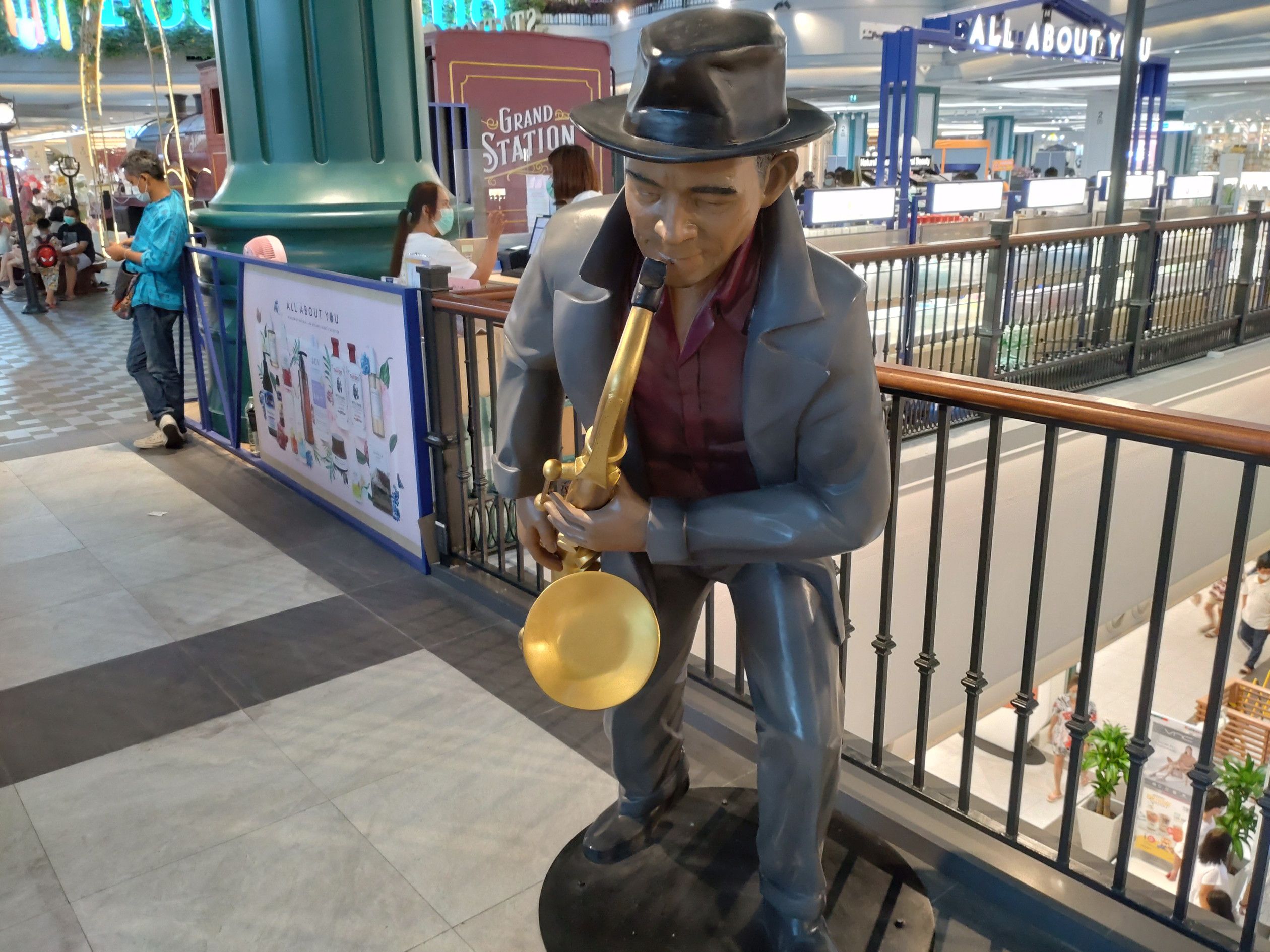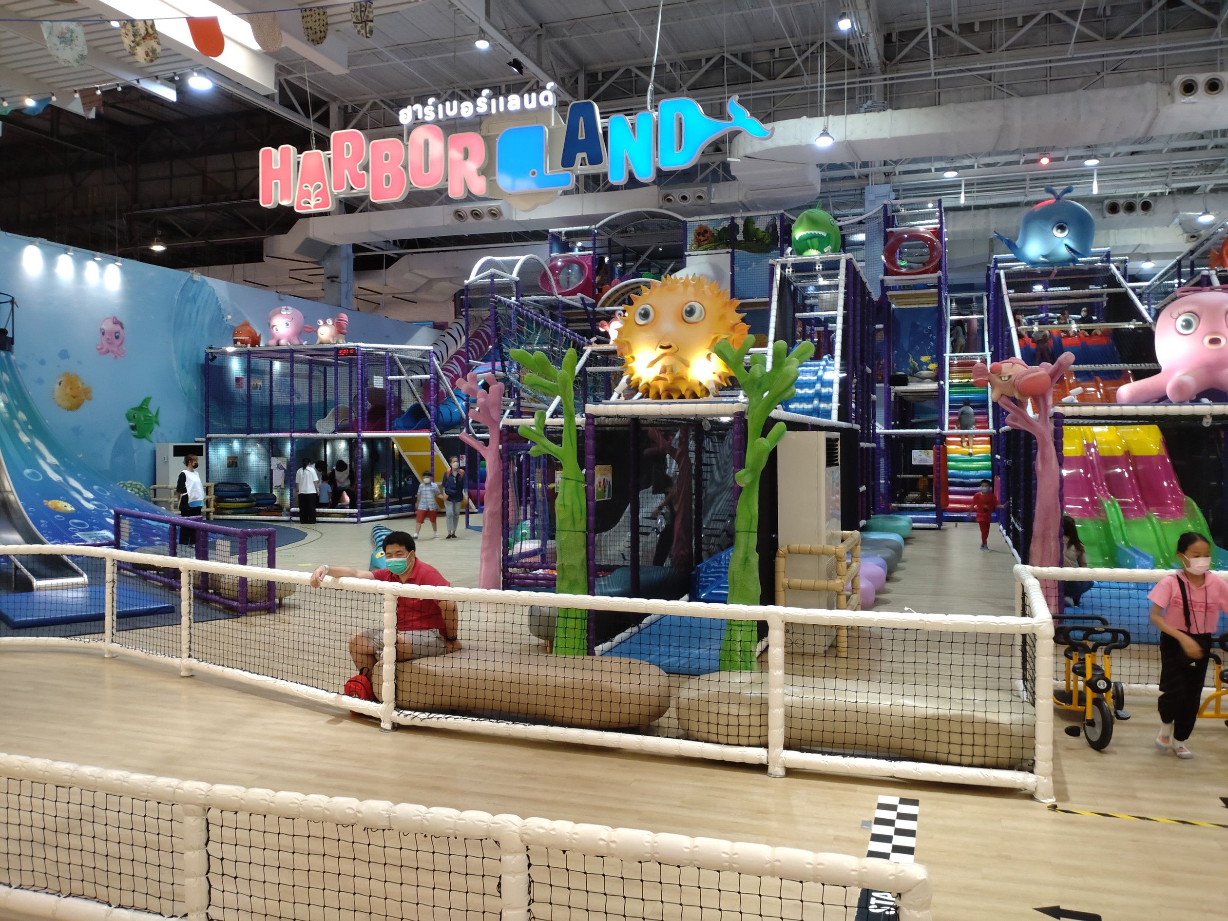 前回は、運河ボートとバスで行ったのだけれど、調べてみると、501番のバスに乗れば、行けると知った。 暫くすると、無事に乗車するも、エアコン無しバスだった。 街中で停車すると暑さがジワジワと伝わって来たけれど、郊外に出ると停車する事は、少なくなり快適なバス旅だった。 およそ、1時間10分程で到着。 まずは、上の階から散策。 そこは、子供たちの遊び場や。。。 ゲームセンターなどの大きな施設があった。 そして、その隣には、アイススケートリンク。 滑っているのは、タイ人と思われるのだけれど、結構上手な人が滑っていました。 動画で撮れば良かったなと後悔。 その後は、下の階に降りて散策開始。 チンタラ歩いて巡るのですが、飽きません。 本当に綺麗だなと実感します。 そして、幾つかの場所には、オブジェと言ったら良いのでしょうか?