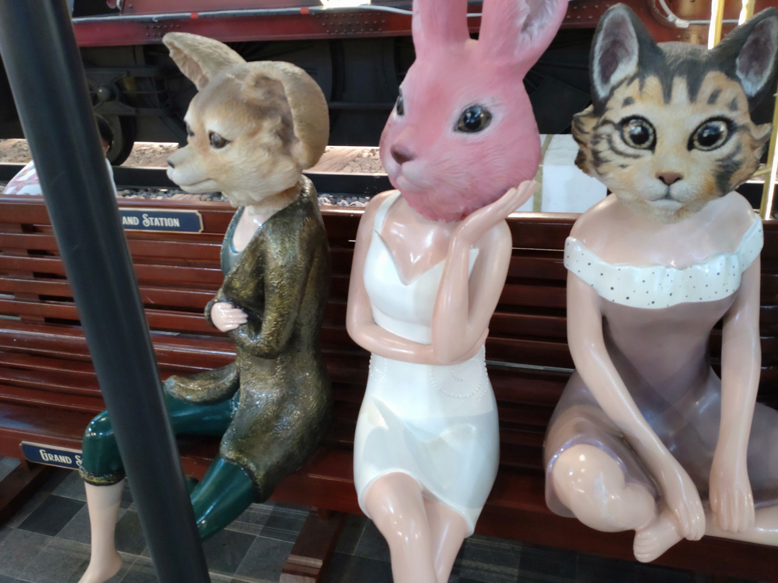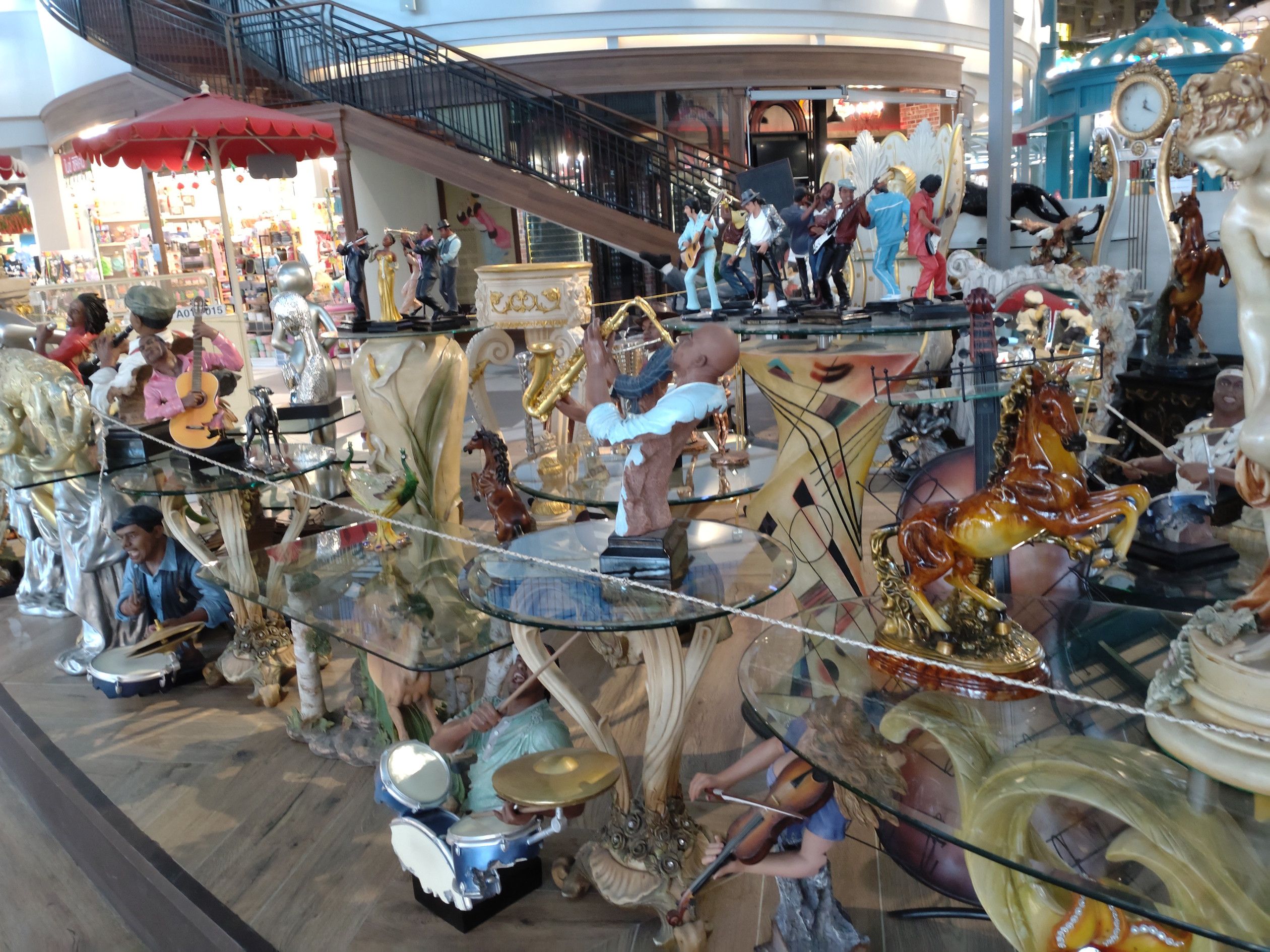 像が、飾られているんです。 こんな可愛い像も。。。 誰なのか分かりませんが、有名人でしょうか? こんなオブジェを売る店まであるんです。 本当に、歩き疲れる事も忘れる程に楽しい散策です。 最後は、フードコートで何か買います。 ガパオライスにします。 激辛でした!!