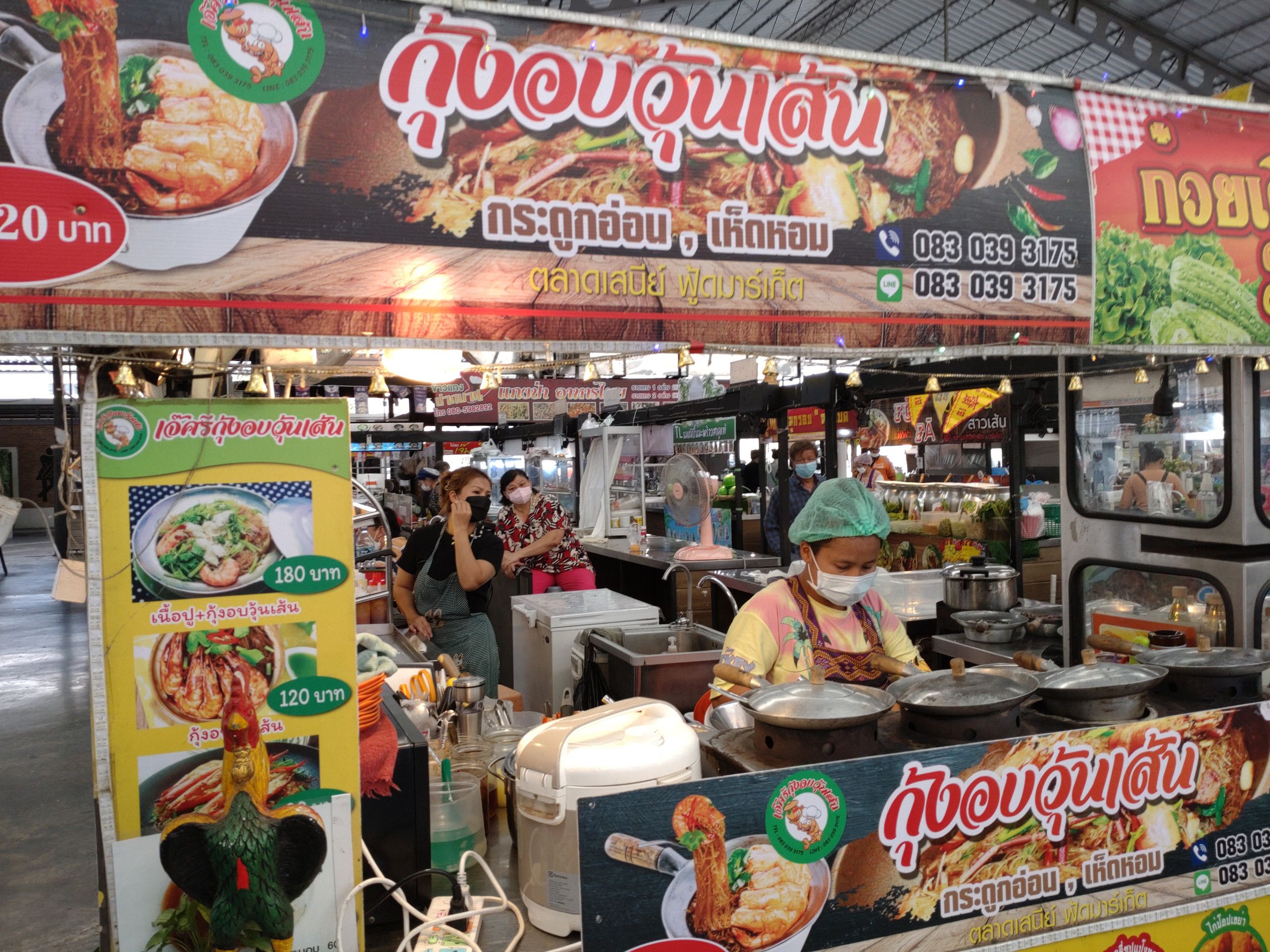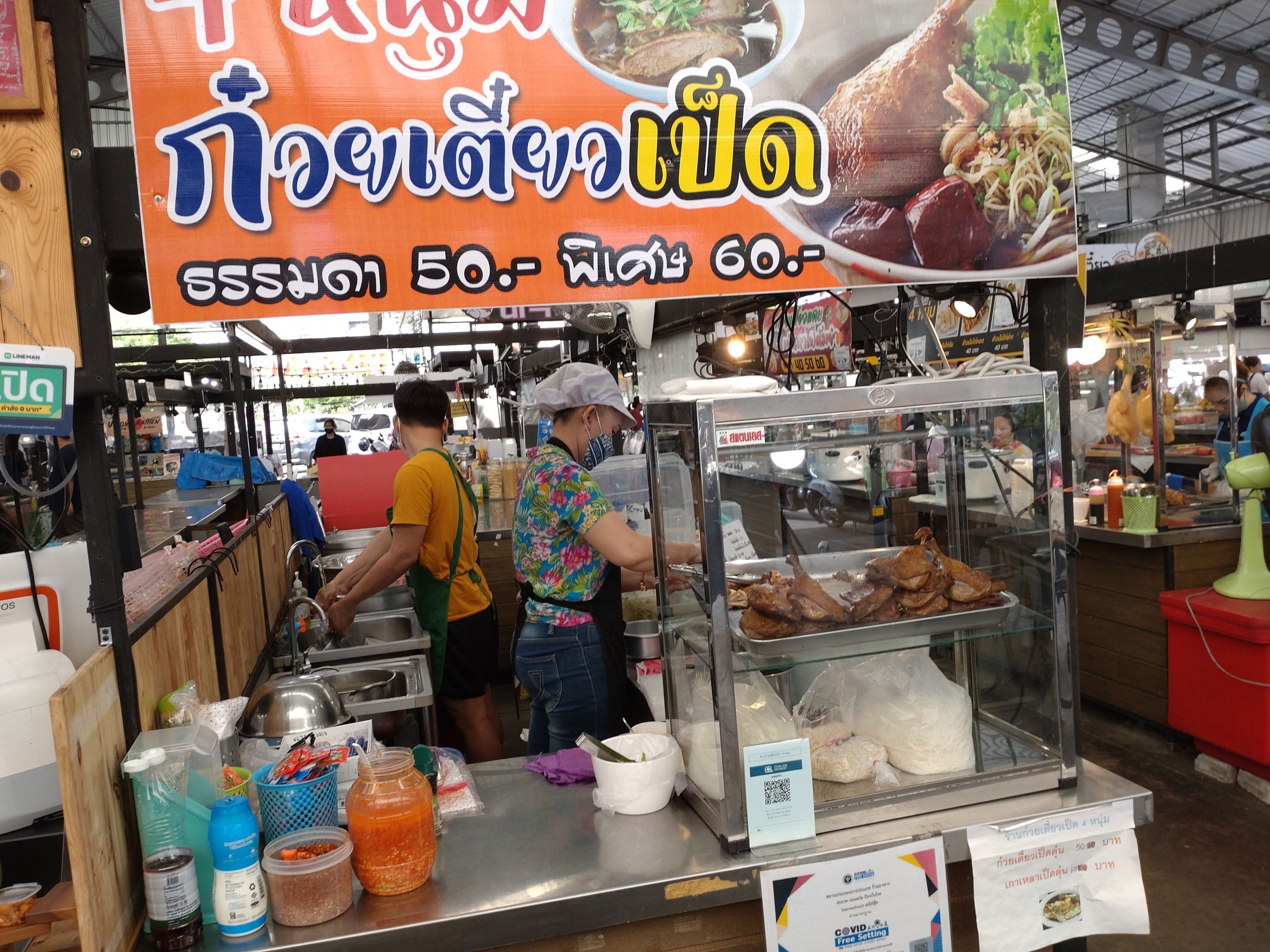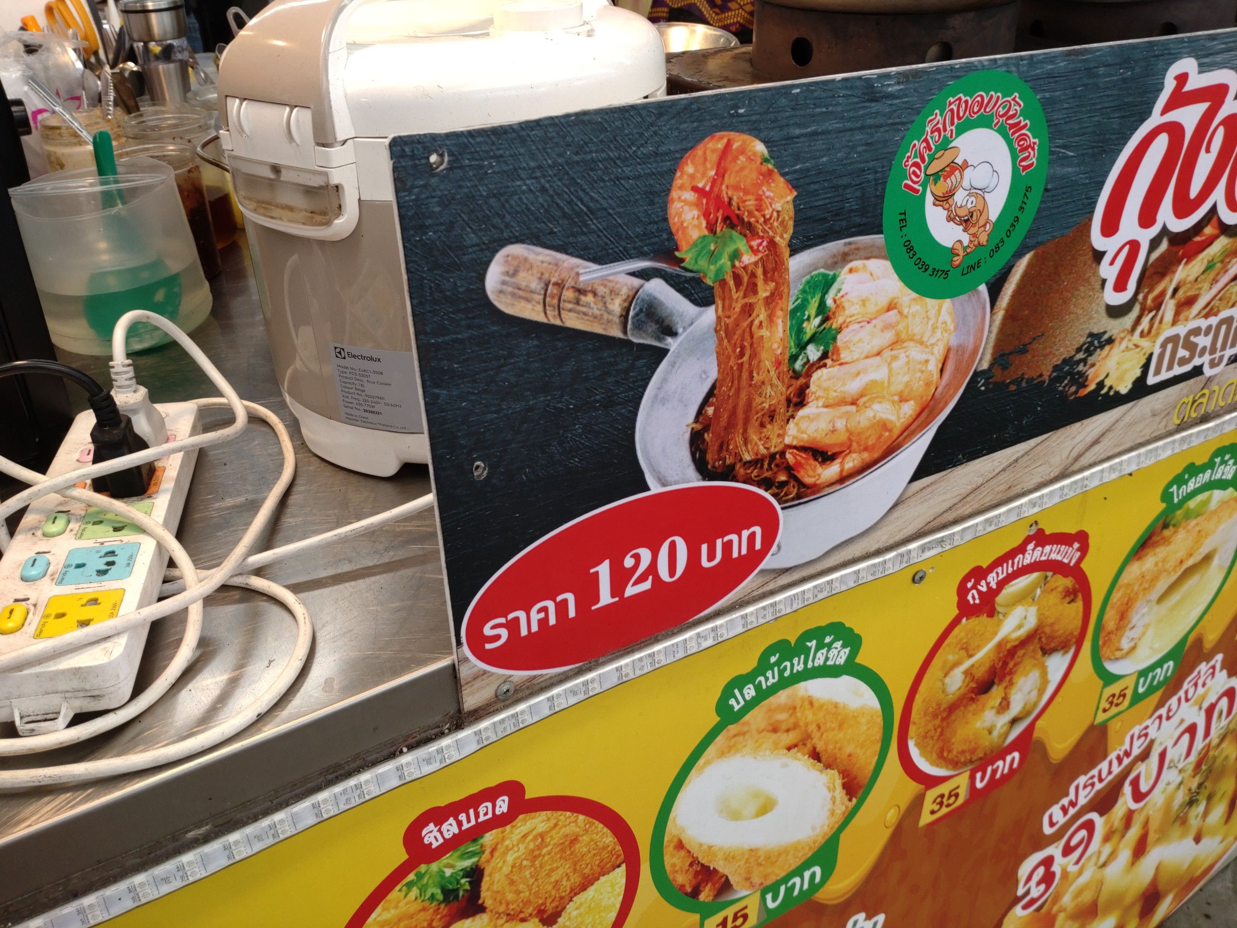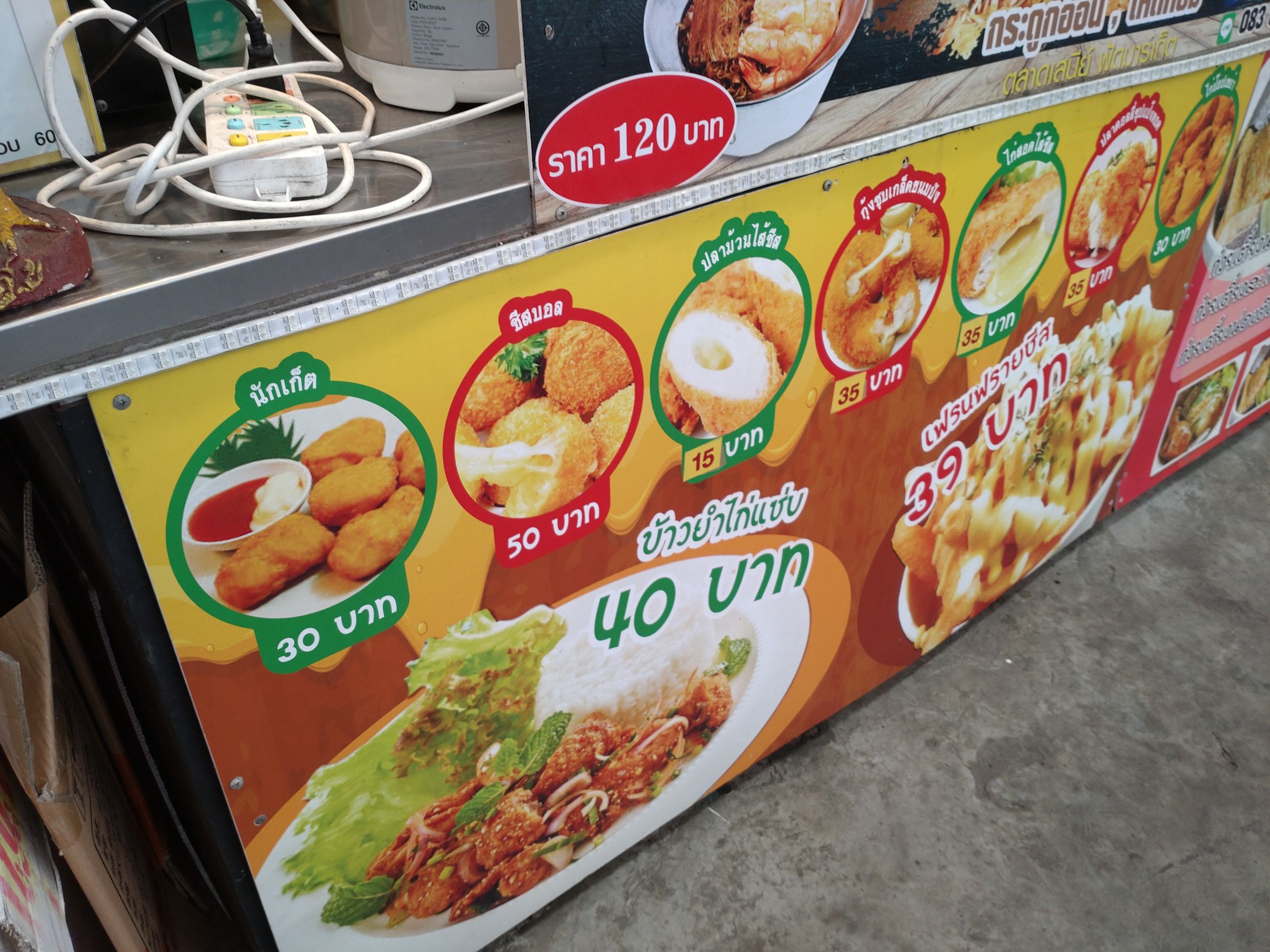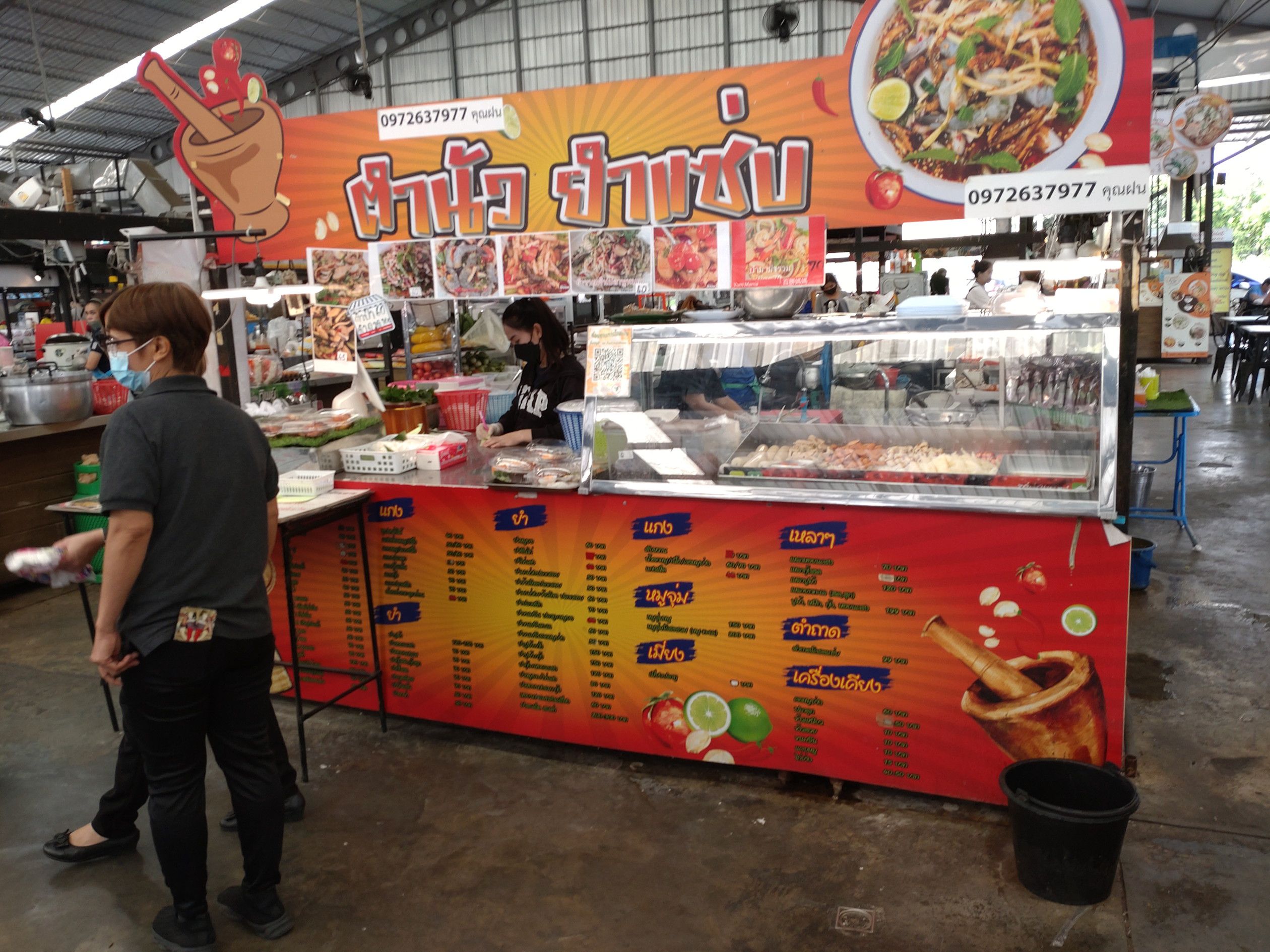 今回は、2度目の訪問となります。 入り口周辺には、宅配のバイクが多く停められています。 中に入ると、フードコートのようになっている場所です。 色々なタイ料理が安く販売されています。 前回は、カオソーイを持ち帰りましたが、今回は、別の料理にしたいと思います。 まずは、この料理を注文。 60バーツ。 折角なので、もう一品。 此処にしました。
