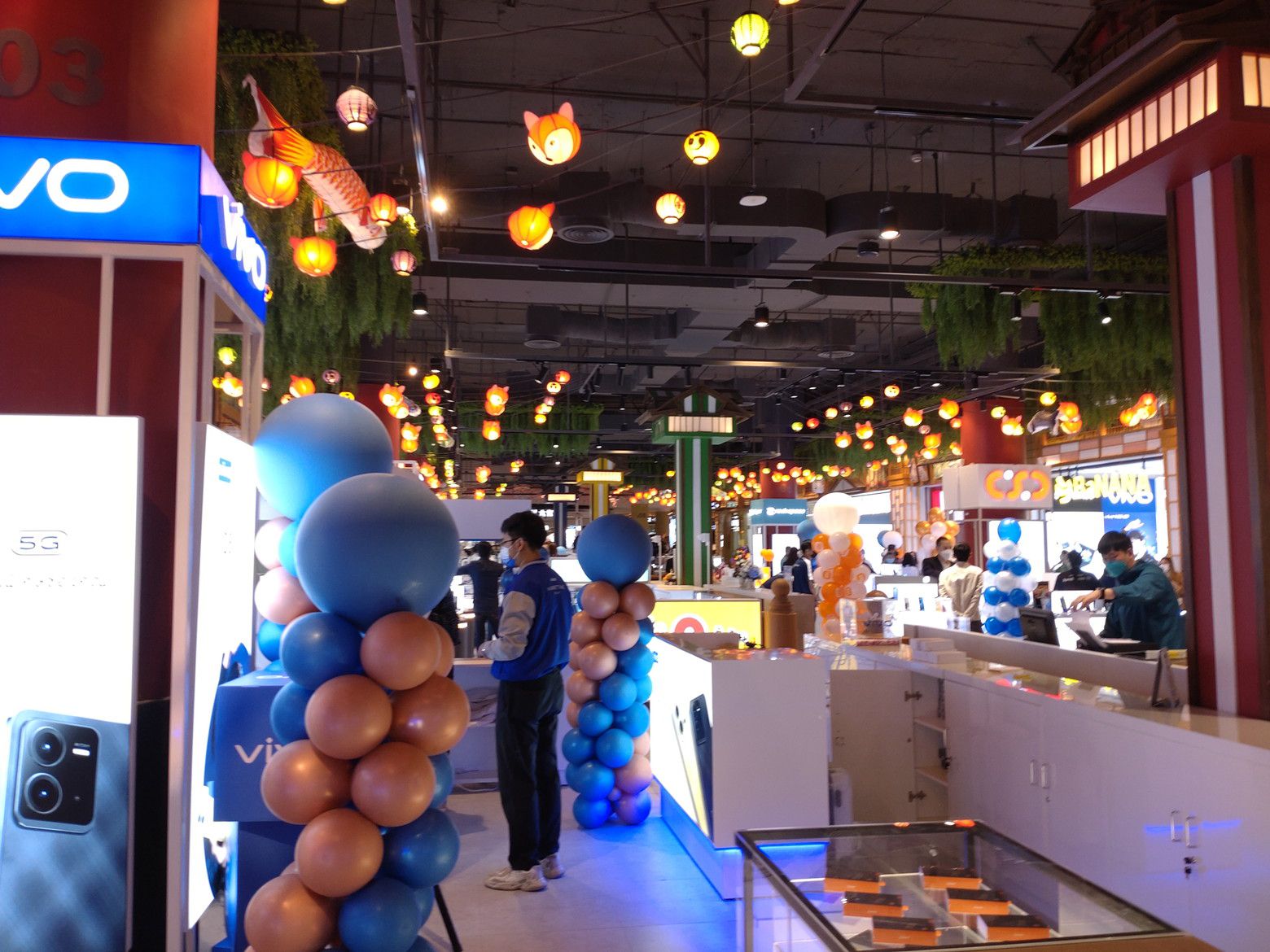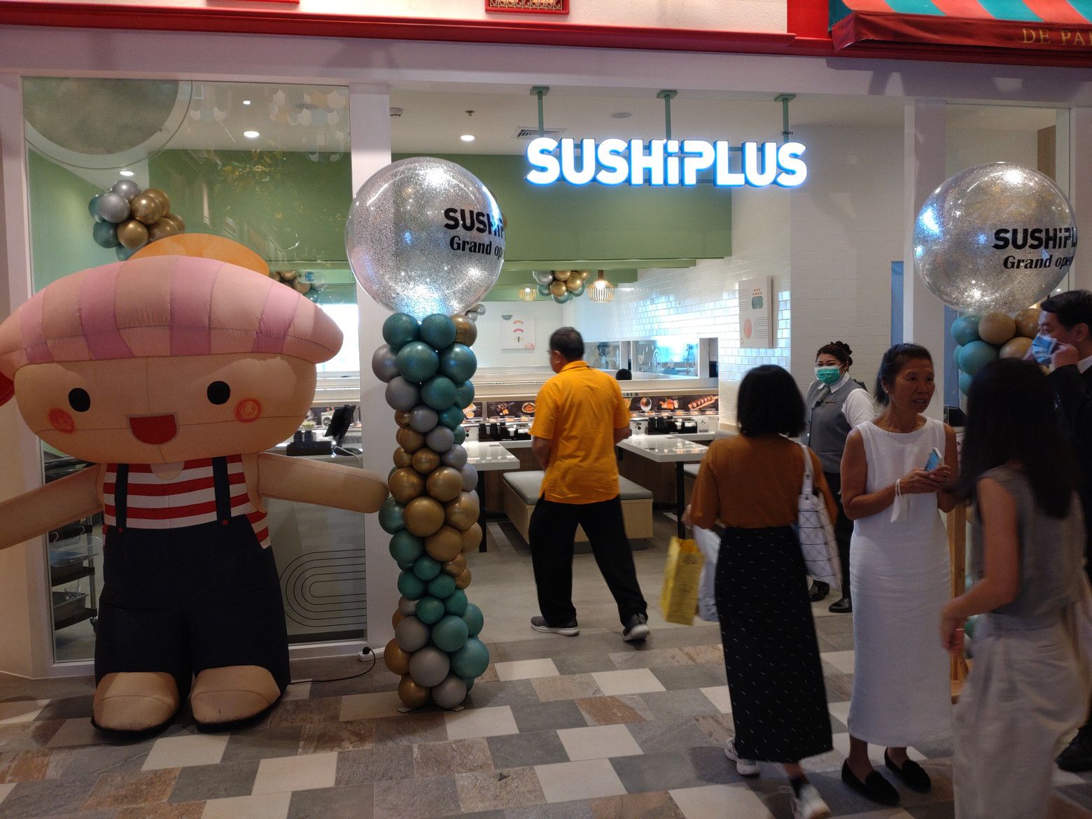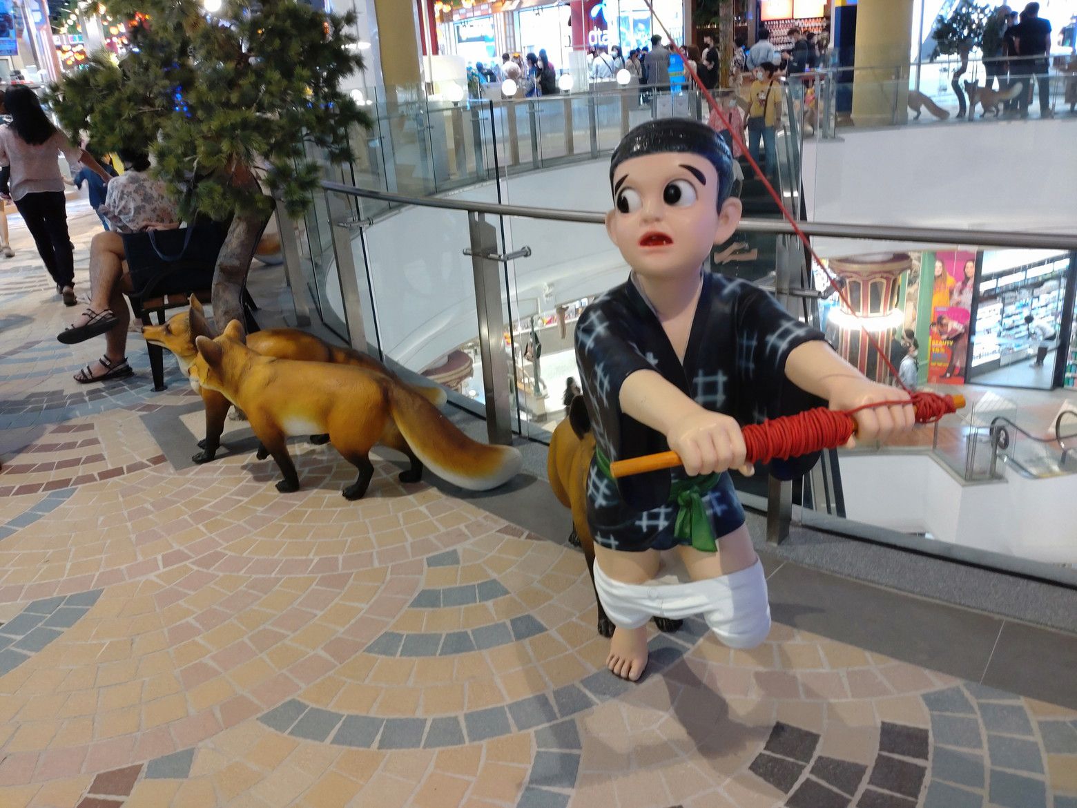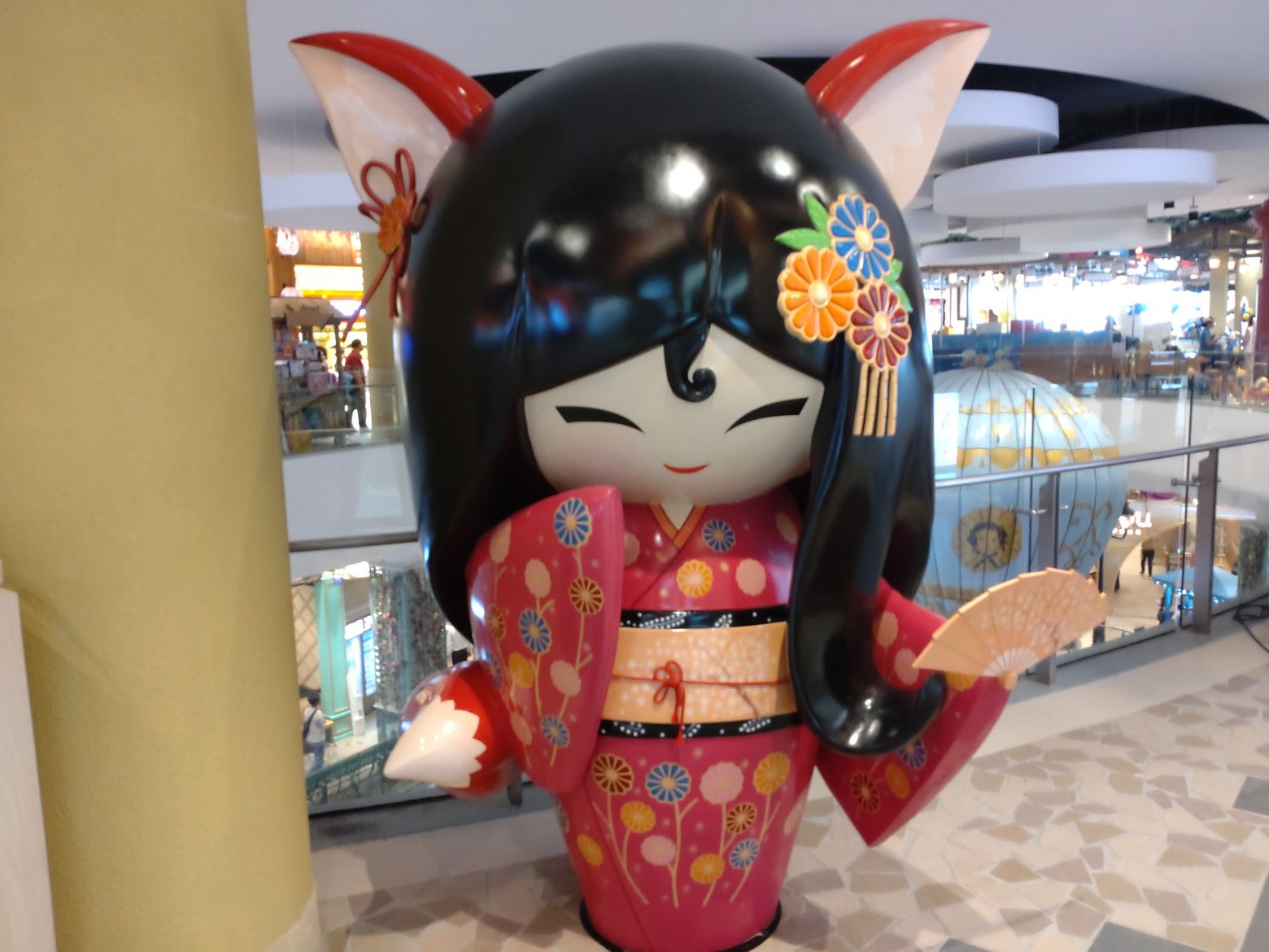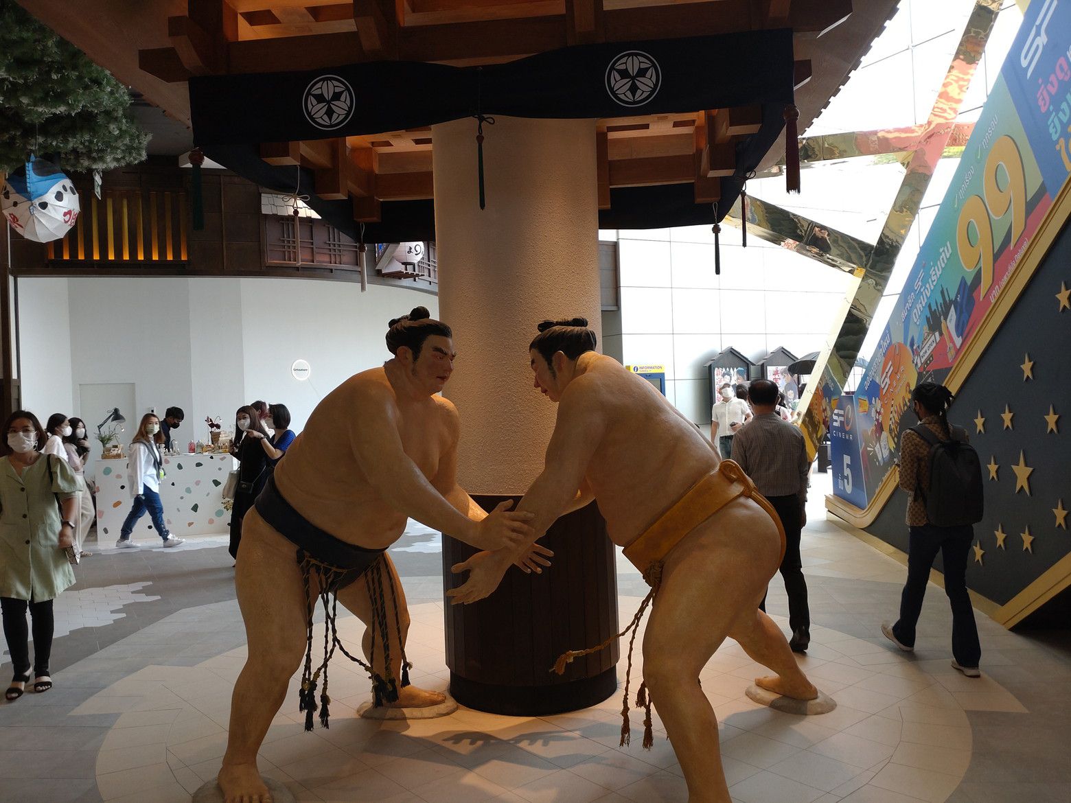 そう感じていましたが、飾り付けに時間が掛かったでしょうね。 結構なお客さんの数です。 此処にも、お相撲さん。 一番上の、フードコートへ行きますと、既に満席に近い状態でした。