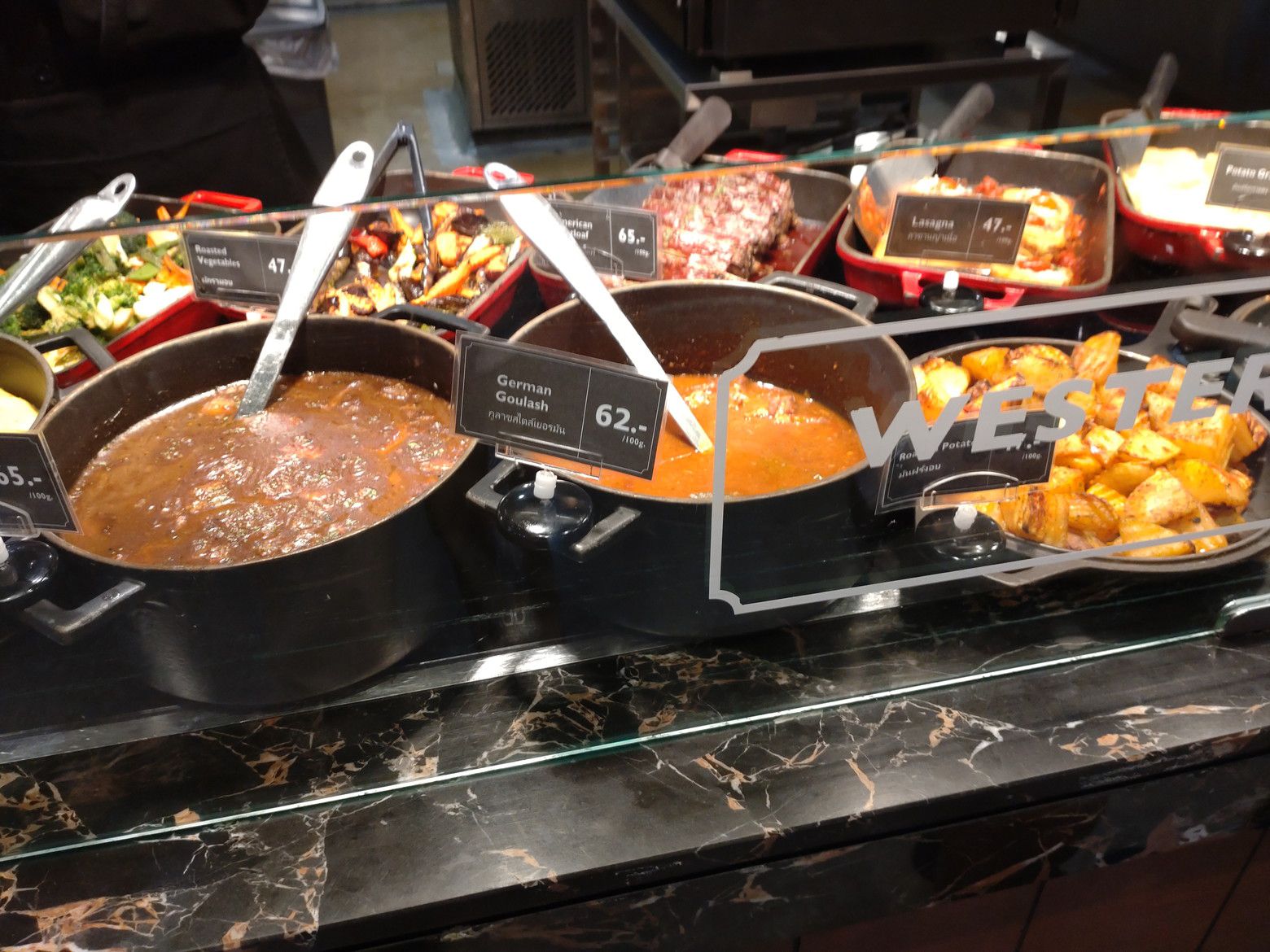 実は、これが一般的なんです。 惣菜類は、セントラル系列の物が大好きです。 砂糖の甘みが強い商品に遭遇する確率は低いです。 このような、野菜も色々と揃っています。 この日は、生野菜に加えて、アメリカンミートローフを購入しました。