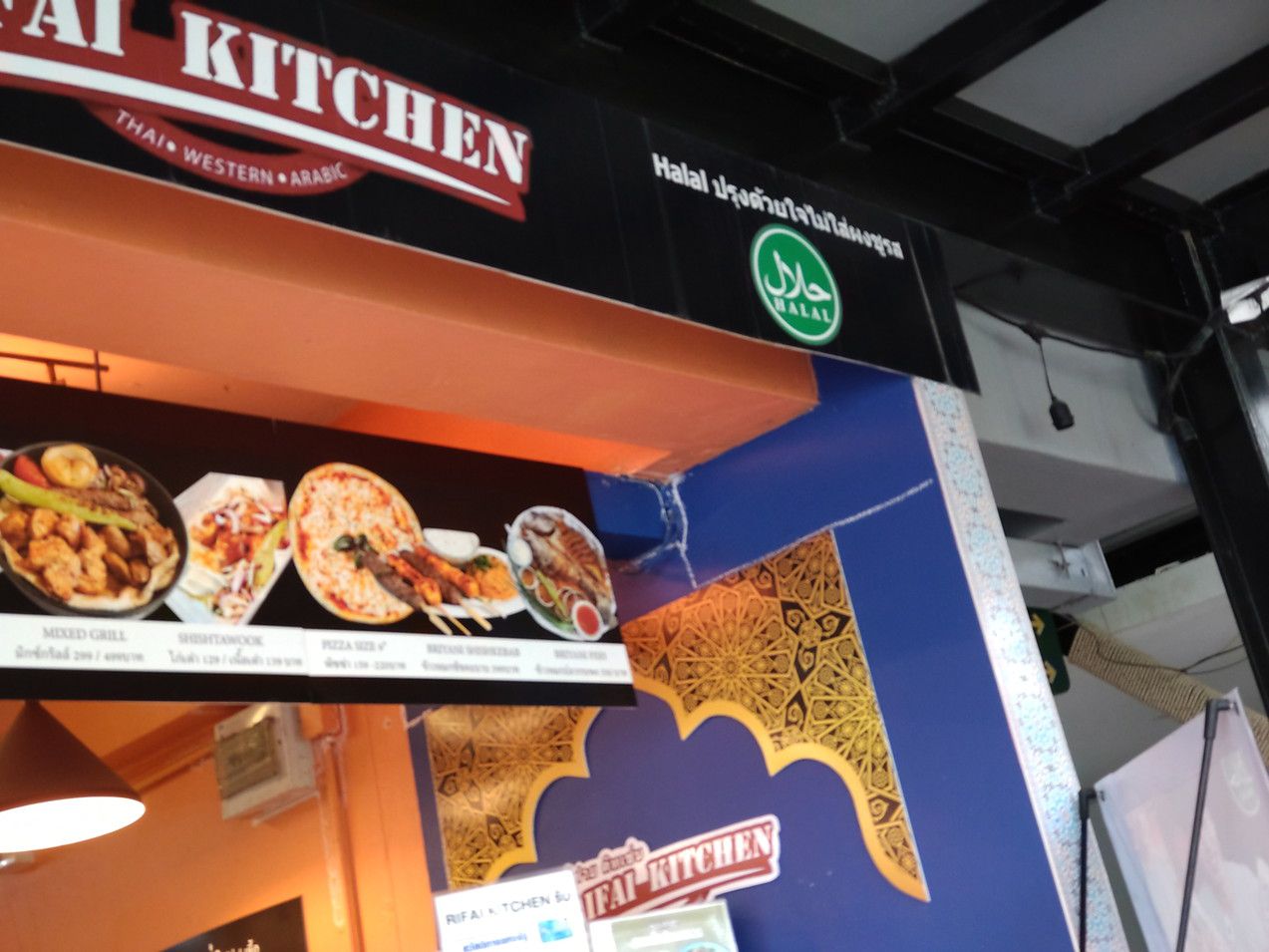 オートーコー市場を出た後は。。。 数駅乗って、こんな駅に到着。 駅から、結構歩いて、こんなショッピングモールへやって来た。 偶然、グーグルマップで見つけた、ハラル料理が集まるショッピングモールと知った。 これは、日本料理店。 ドン突きまで行くと、そこにも日本料理店。 店が開いていれば、買って帰りたいと思いながらブラブラ。 所々に休憩場所もあり、ゆったりとした造り。 こんな店を発見。 チキンを注文。 此処にも、ハラルのマークが。 80バーツ。 此処は、牛肉料理の店。 全ては確認していませんが、確かにハラルのマークが多く見られました。