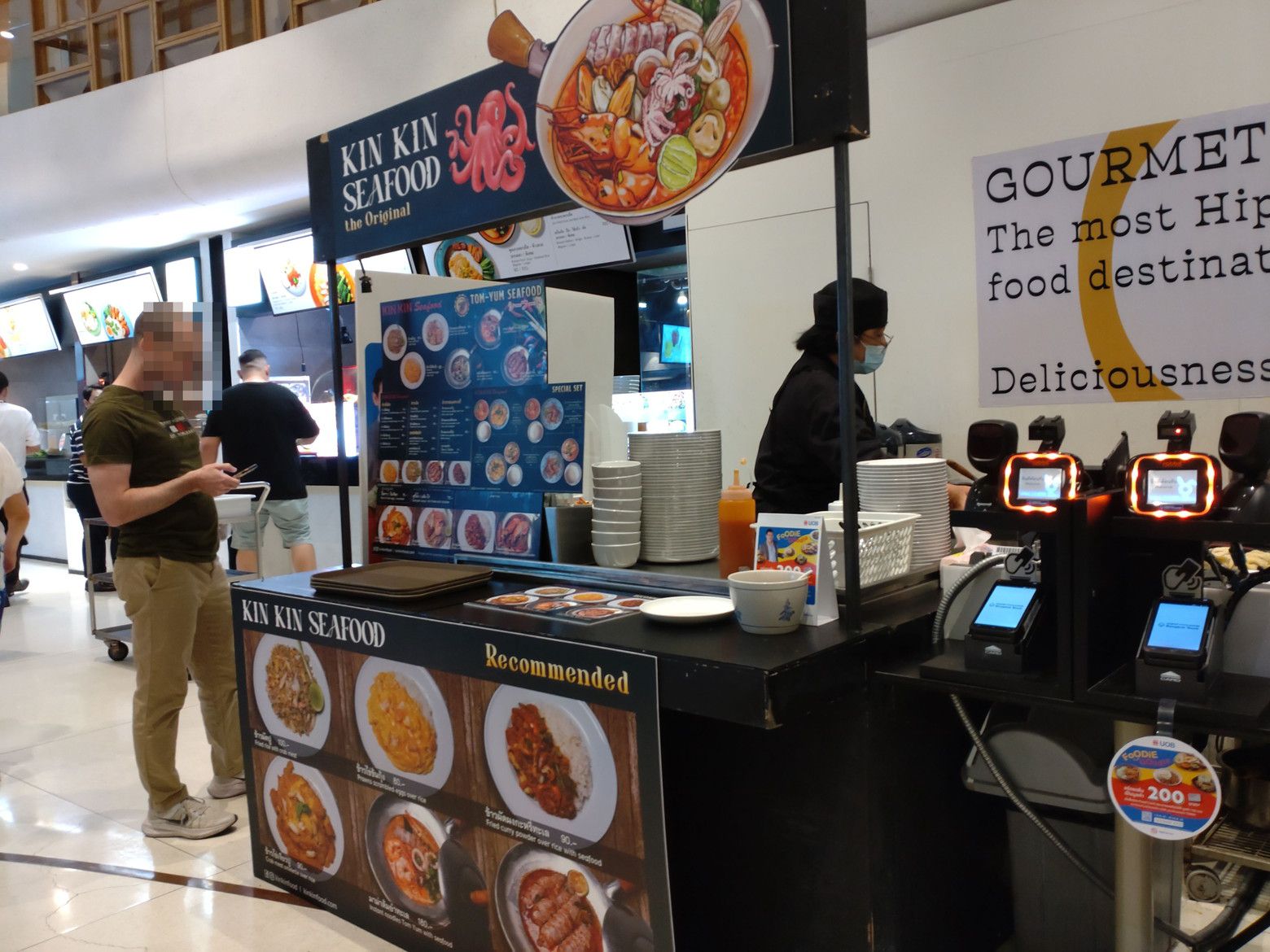 エムクオーティエ フードコート 2022年11月21日 先日は。。。 エムクオーティエへ。 既に、クリスマスの飾りは出来ていました。 少し、グルメマーケットは覗きましたが、食べたい物は無く。。。 フードコートを頼る事にしました。 久しぶりに来ましたが、店舗が変わったような。。。 行列が出来ていたのは、カオマンガイの店でした。 自身は、この店にしました。 注文したのは、トムヤムシーフードヌードル。 180バーツ。 エムクォーティエのフードコートは、少し値段は高いのですが、美味しいので好感を持っています。 スープは、熱々にしてから食べます。 スープがたっぷりです。 具材もたっぷり。 酸味は控えめで、ピリ辛で美味しかったです。 満腹でした。ポチッと2箇所応援クリックお願いします!にほんブログ村 タイ(海外生活・情報)ランキング 「スクムビットソイ20-39」カテゴリの最新記事 「フードコート」カテゴリの最新記事 タグ :#エムクォーティエ#フートコート < 前の記事次の記事 > コメント このブログにコメントするにはログインが必要です。 さんログアウト この記事には許可ユーザしかコメントができません。 コメントフォーム 名前 コメント 記事の評価 リセット リセット 顔 星 情報を記憶 コメントを投稿する