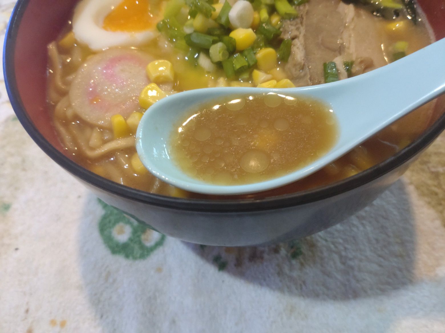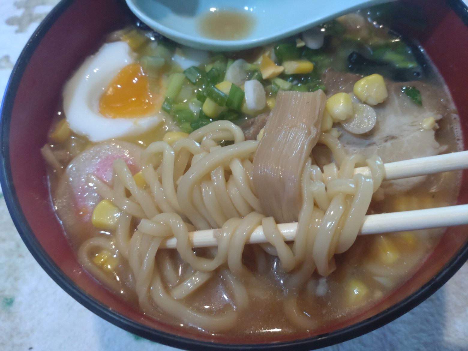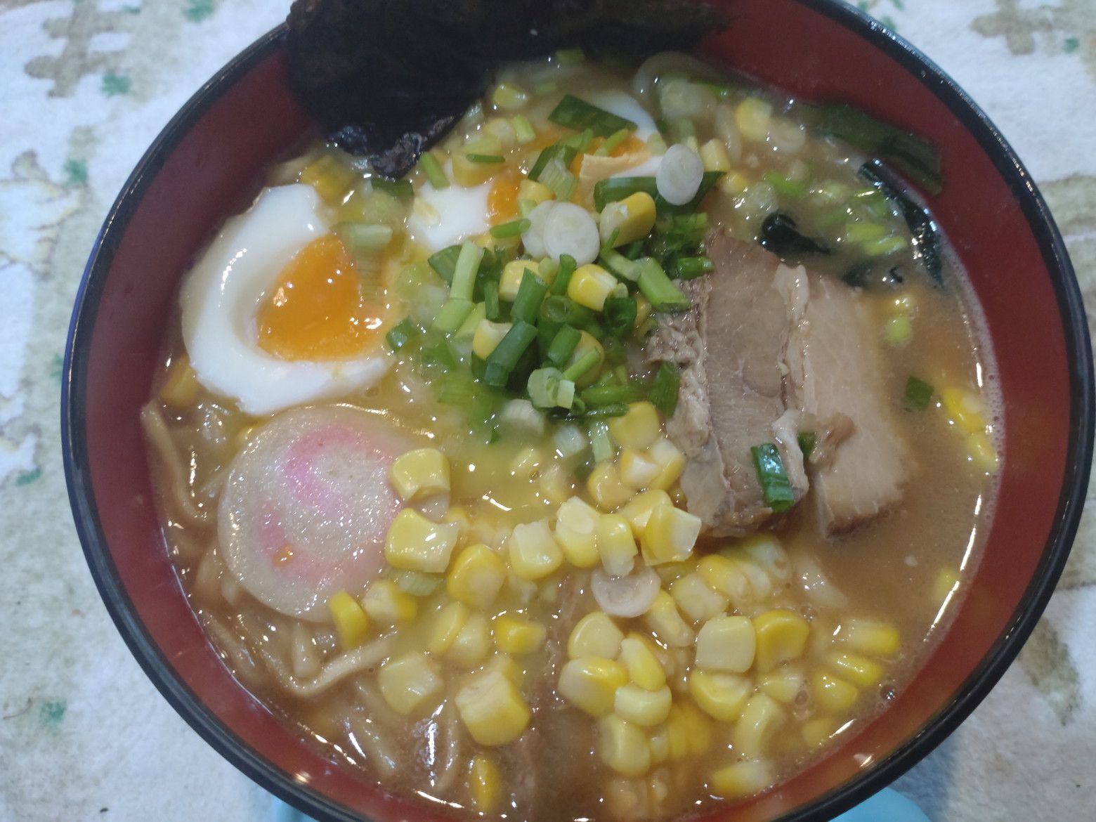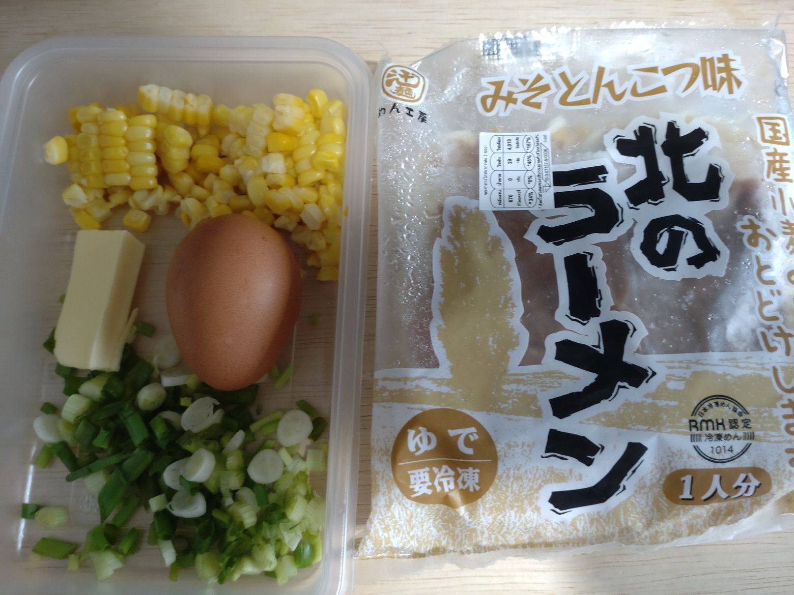 此処に来れば買う事が出来る貴重な場所。 残念ながら、惣菜は好みの物は無く、素通りの状況。 ただ、冷凍食品コーナーには、他には無い物もあり、楽しみの一つ。 今回は、味噌ラーメンを購入。 食べる日には、コーン、茹で卵、ネギ、バターを用意。 このラーメンには、具材も入っていて、そのままお湯に入れるだけ。 沸騰したら、スープを加えます。 野菜や厚切りのチャーシューも入っています。 味噌バター味が大好きです。 麺は太麺。