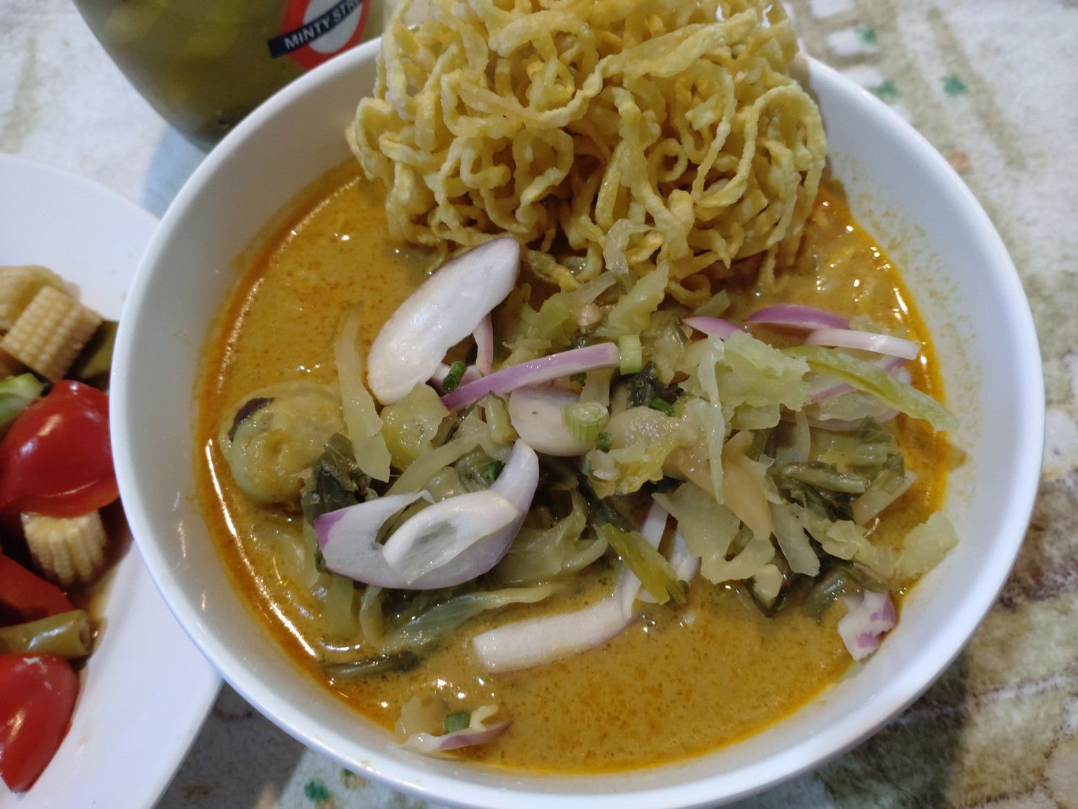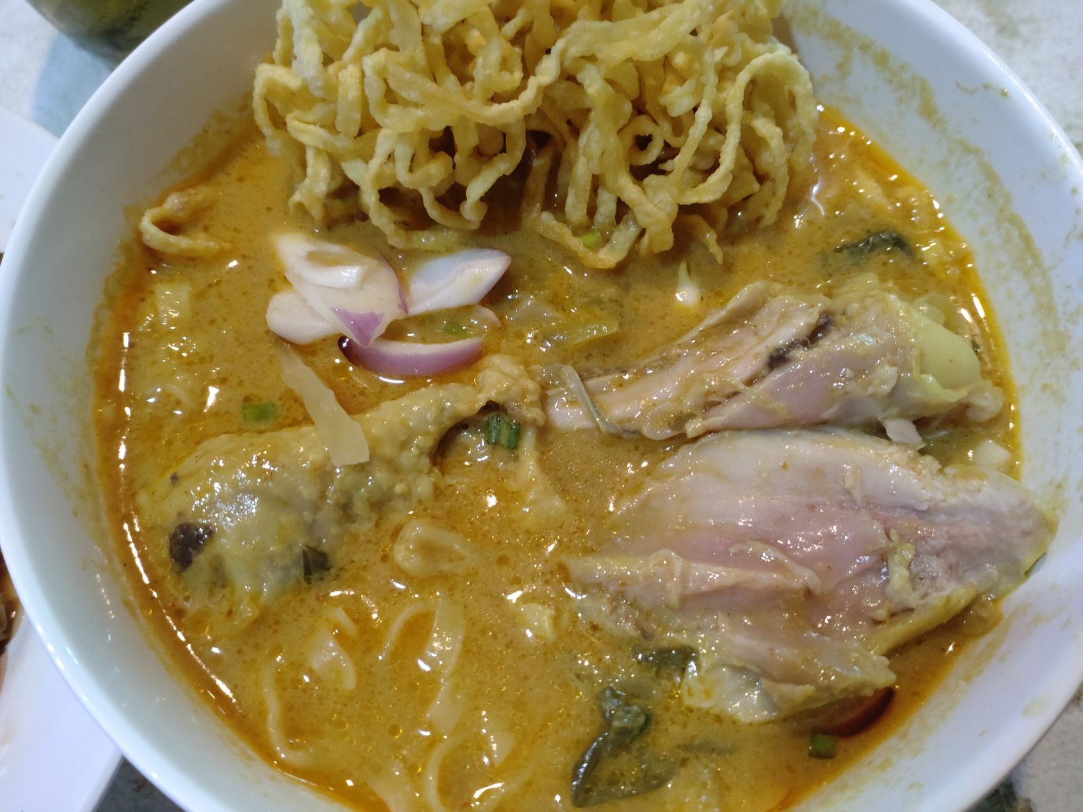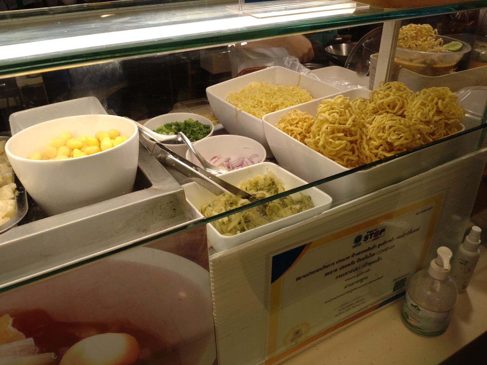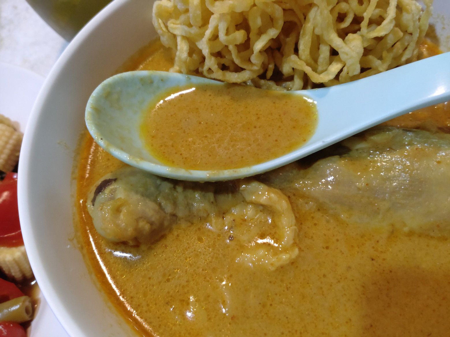 ゲートウェイ エカマイ ”カオソーイ” 2022年11月30日 ゲートウェイ エカマイのマックスバリューへ行った際には。。。 同フロアーに在る店を巡るのですが、過去において好みの料理を売っている店は、有名なお寿司屋さんしか無くて、ワクワク感に欠けていたのですが、今回は久しぶりなので、じっくり見て回る事にしました。 そこで、こんな店に巡り合いました。 何の料理を売っているのでしょうか? あまり興味のない料理だなぁ。。。と思ってましたが! こんな案内を発見して、ドッキリ! メニューに、カオソーイがあったんです! 嬉しかったですねぇ! 勿論注文しました。 こんなに身近な場所で購入できるとはと嬉しいですね。 スープを飲んでみると、意外に辛めでした。 よって、追加の唐辛子は無し。 絶品とは言いません。 正直言って、スープに旨味がイマイチ足らないですかね。。。 しかし、気軽に購入出来る場所である事が嬉しいです。 鶏肉は充分に煮込まれてました。ポチッと2箇所応援クリックお願いします!にほんブログ村 タイ(海外生活・情報)ランキング 「エカマイ」カテゴリの最新記事 「カオソーイ」カテゴリの最新記事 タグ :#エカマイ#ゲートウェイ#カオソーイ < 前の記事次の記事 > コメント このブログにコメントするにはログインが必要です。 さんログアウト この記事には許可ユーザしかコメントができません。 コメントフォーム 名前 コメント 記事の評価 リセット リセット 顔 星 情報を記憶 コメントを投稿する