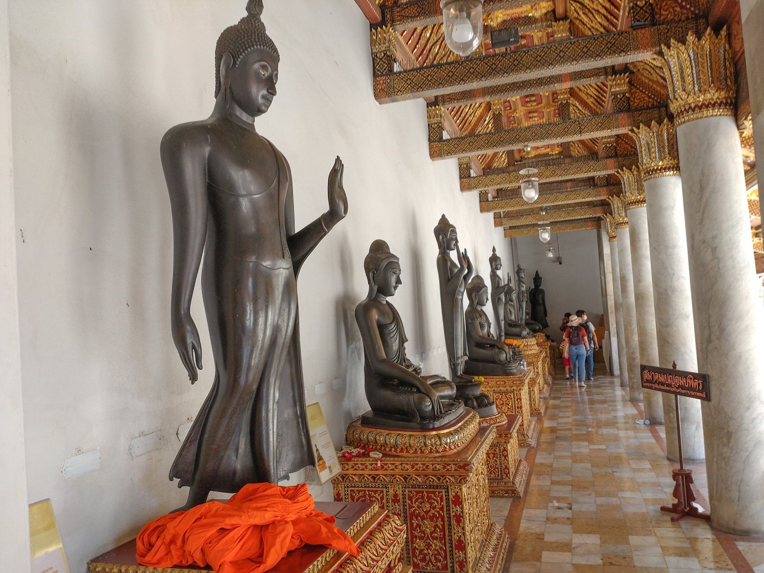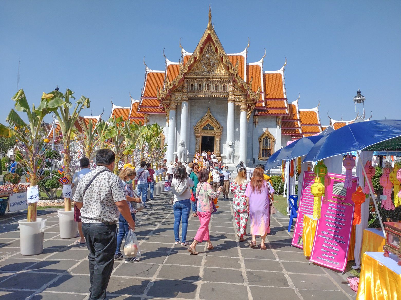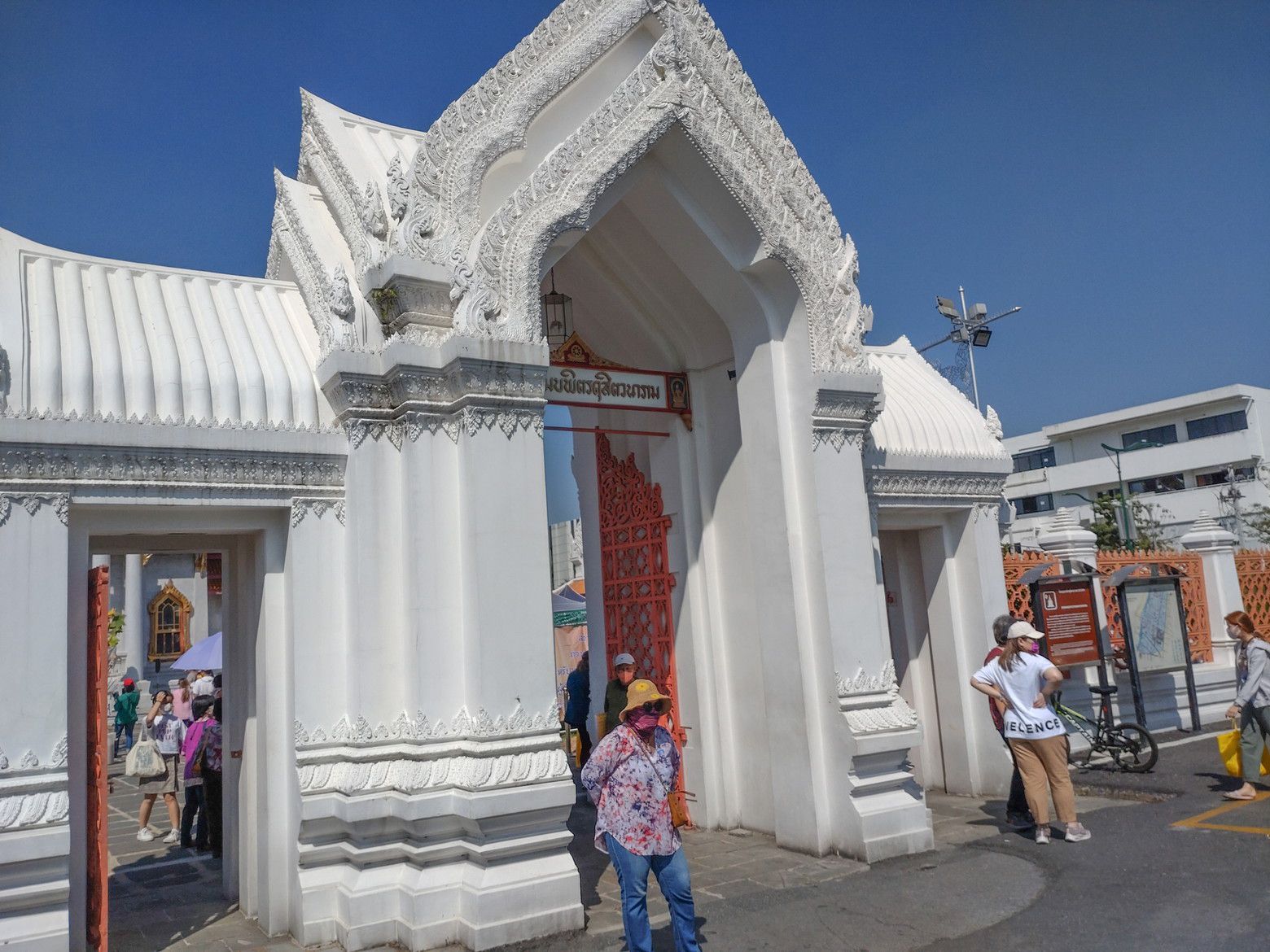 若干、方向音痴もあり、迷いながら5キロを歩きました。 中に入ると、大勢の訪問客でした。 綺麗なお寺でした。 入場料は、50バーツとの事前調査でしたが、この日は元日だからなのか、入り口の切符売り場は閉鎖されていました。 西洋人の団体観光客も居ました。
