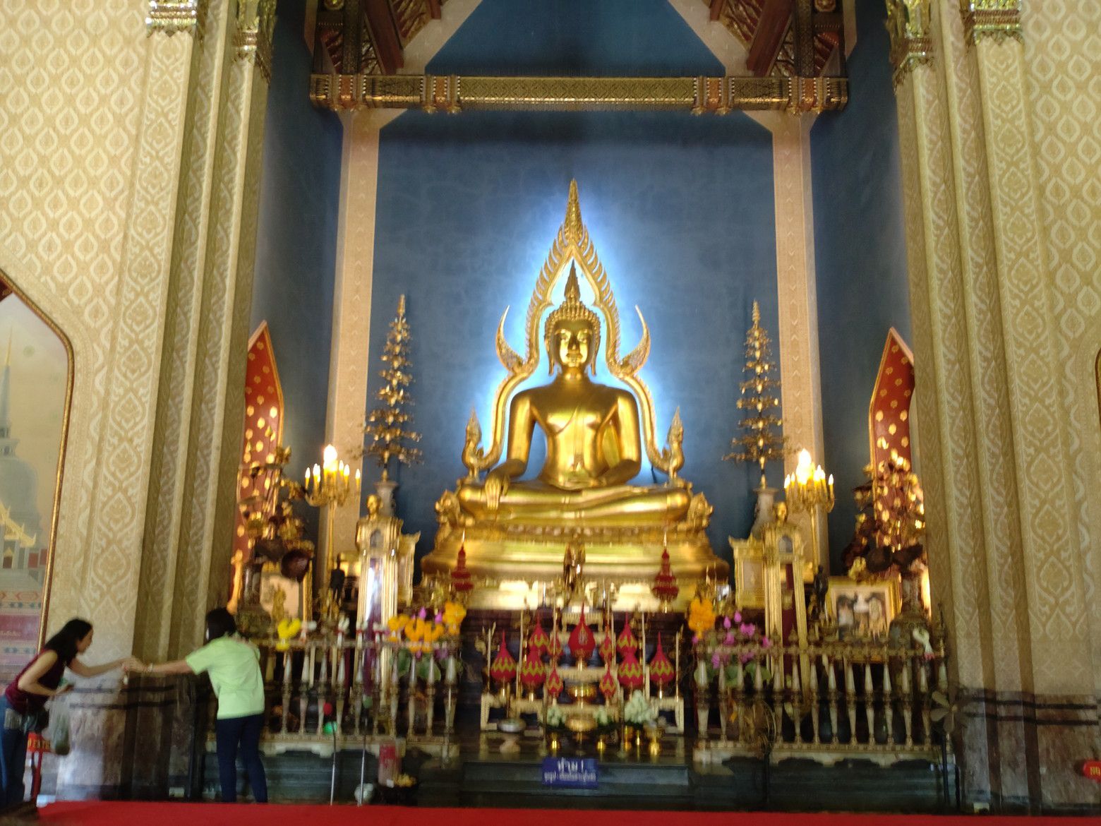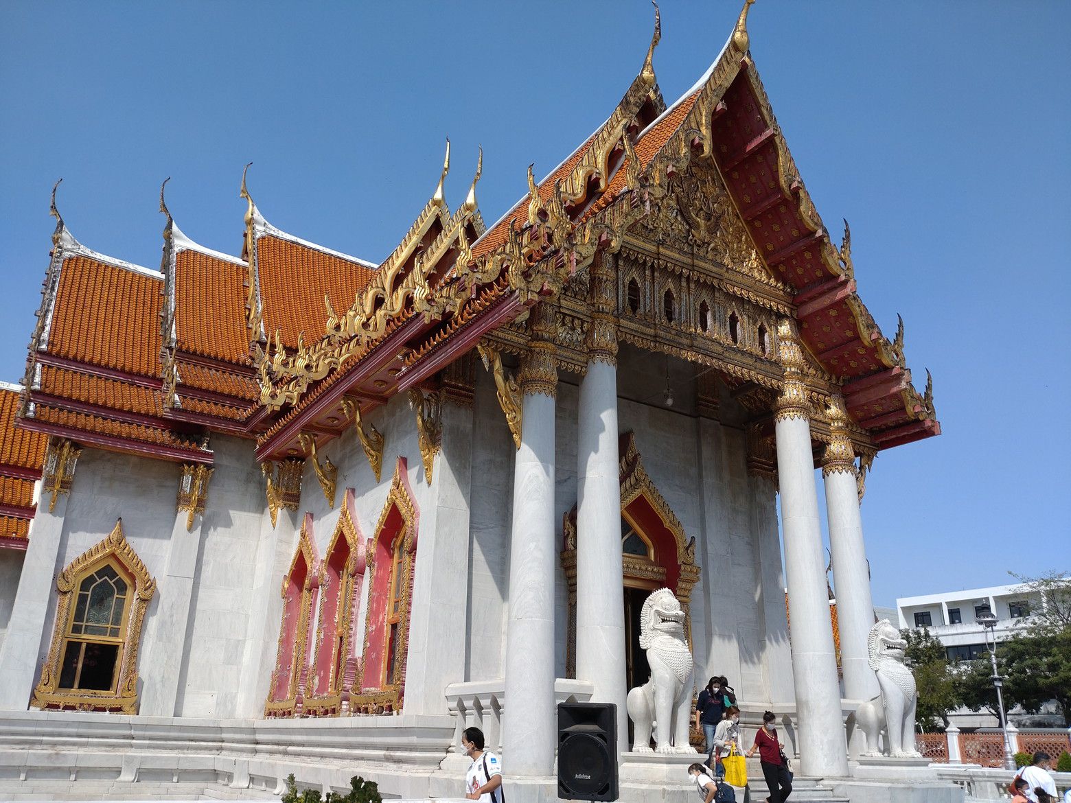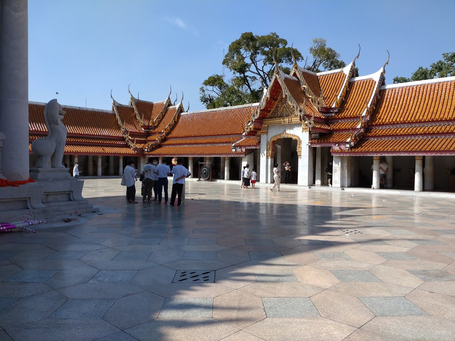 若干、方向音痴もあり、迷いながら5キロを歩きました。 中に入ると、大勢の訪問客でした。 綺麗なお寺でした。 入場料は、50バーツとの事前調査でしたが、この日は元日だからなのか、入り口の切符売り場は閉鎖されていました。 西洋人の団体観光客も居ました。