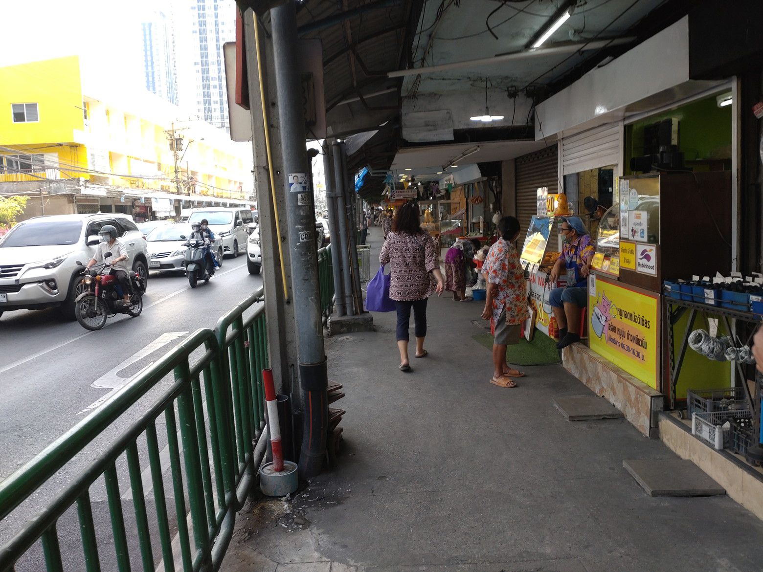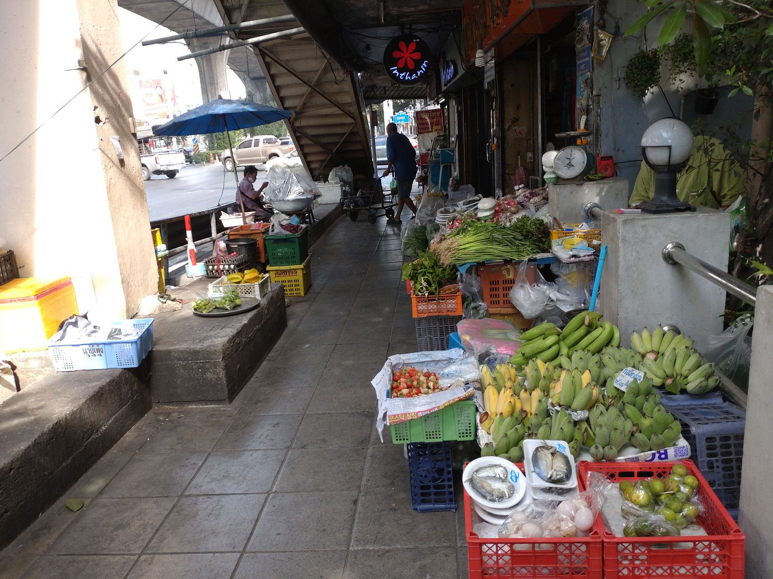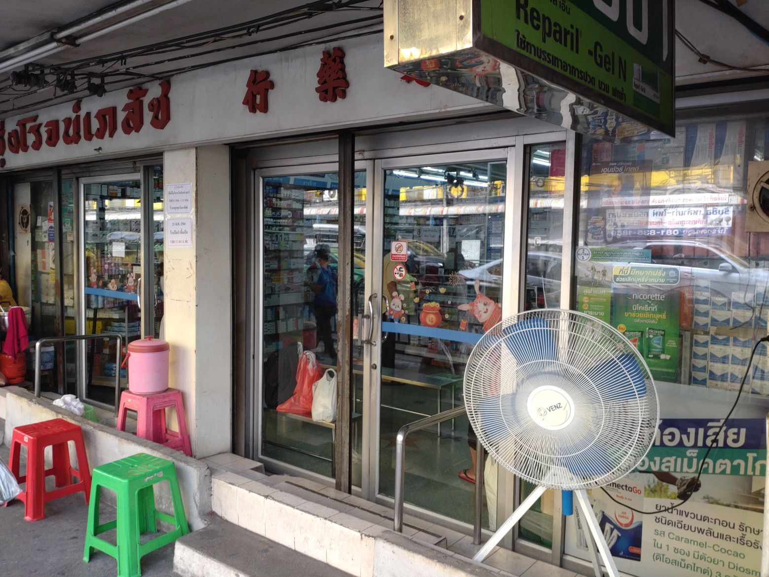 以前から比べると、歩く人の数も元に戻ったものの、物乞いの方々も多くなったととの印象。 駅下の土地開発の進展はまだ無かったですね。 マッサージ通りはイマイチかな? パクソイの様子もいつも通り。 オンヌット通りの歩道に来るまでに、かなりの数の旅行者と思われる方々とすれ違いました。 薬局に到着です。 入店すると、順番は2番目。
