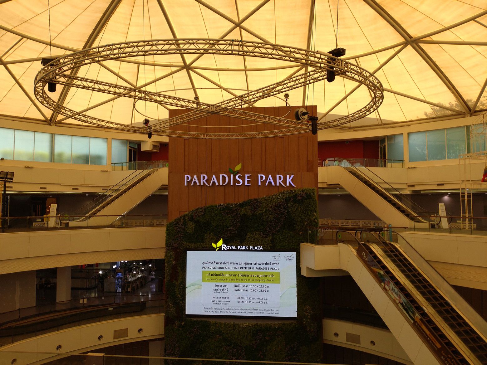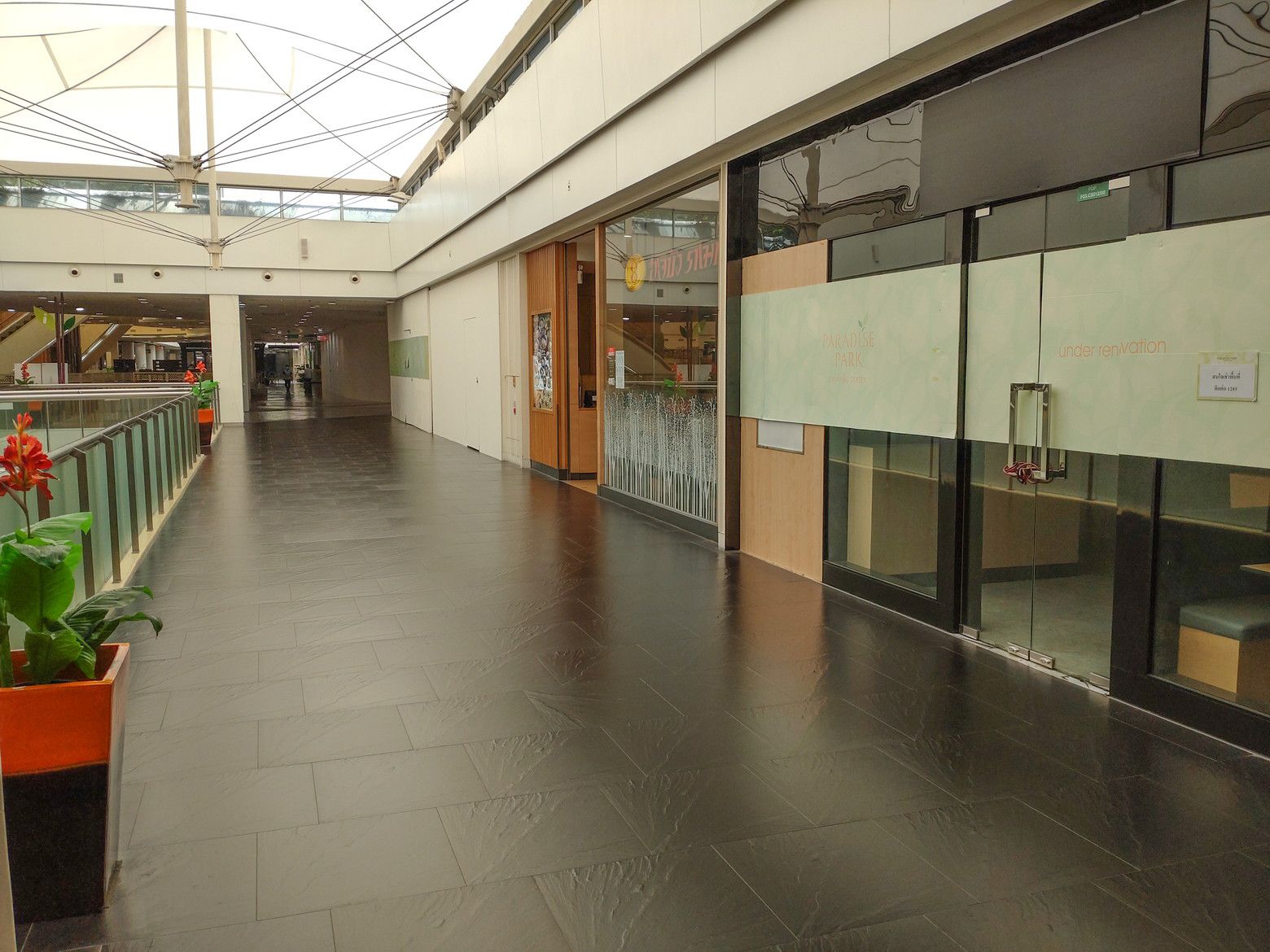 先日は。。。 バスに乗り、パラダイスパークへ。 今年初めての訪問。 まずは、店内をブラブラして驚いたのは、店舗が閉鎖されて壁だらけ。 階数としては、2階から上が、壁状態が多かったですね。 レストランが並んでいた場所も、こんな状態でした。