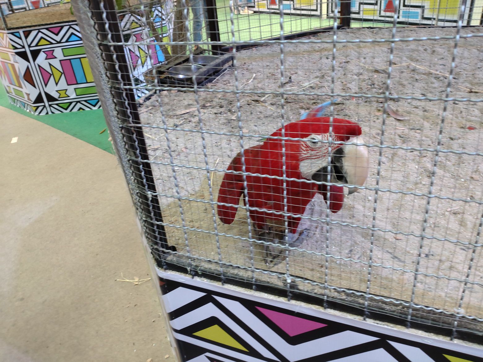 トンで行かないのでしょうか。 この鳥も放し飼い。 中に入って、鳥と接触できるコーナーもありました。 そして、面白かったのは、この鳥でした。 ジロジロと見て来るんです。