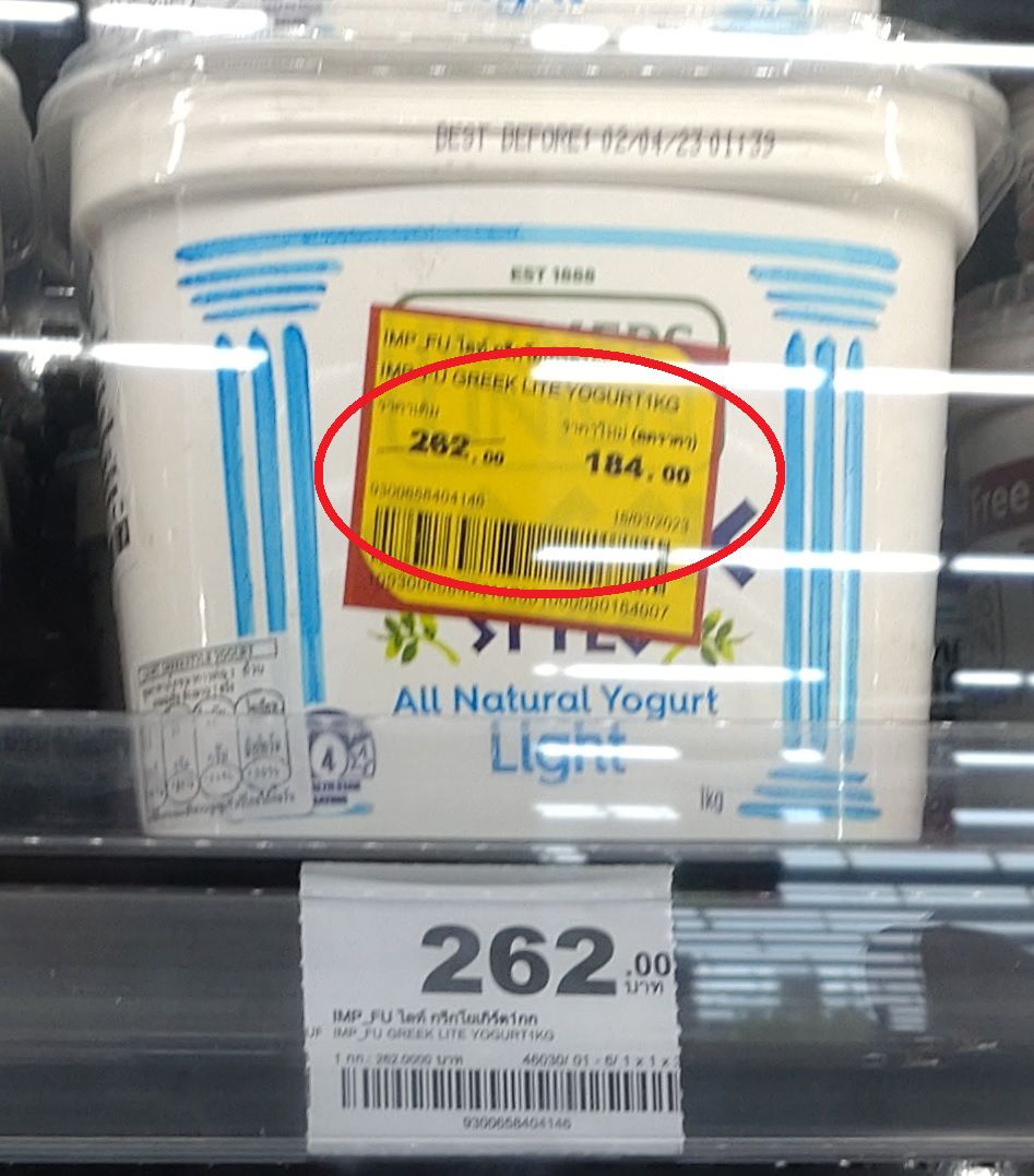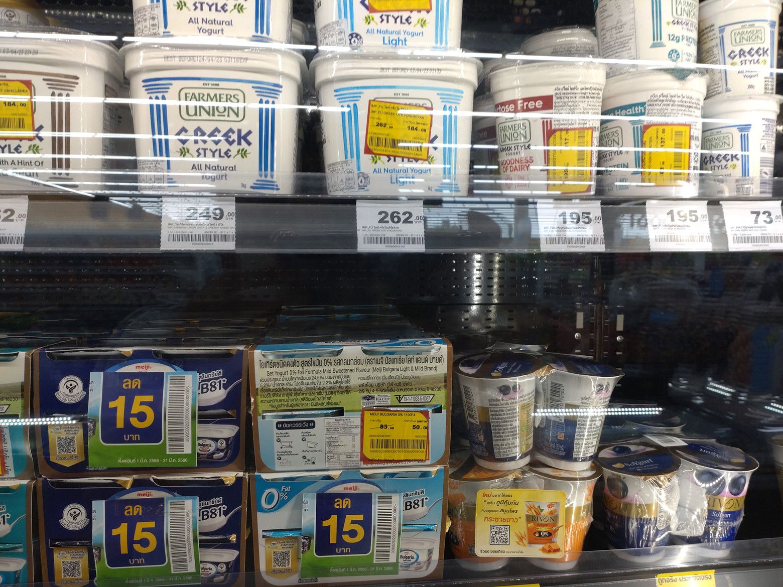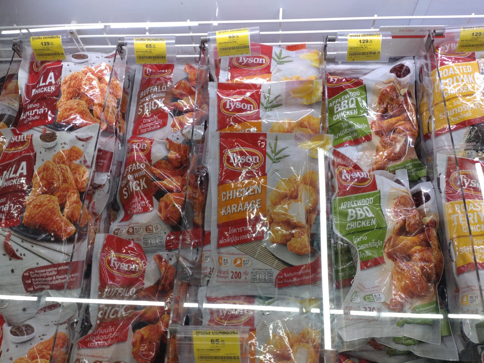 ロビンソンを出てからは。。。 通りを挟んで向かい側のBIG-Cへ。 1階はテナントが入り、2階が店舗。 兎に角広いんです。 この日は、野菜や豆腐の買い足しです。 最初に此処へ来て驚いたのは、割引商品が多い事でした。 この黄色い値札が割引価格です。 こんな具合なんです。 勿論、賞味期限が迫っている事も要因でしょうが、直ぐに食べるには問題ない物に関しては非常に助かっています。 これを知ってから、頻繁に来るようになりました。 冷凍食品にも黄色の値札があります。 この日は、鶏唐揚げを籠に入れました。 珍しいビールも1缶。 これで会計です。 後日に食べる事にしました。