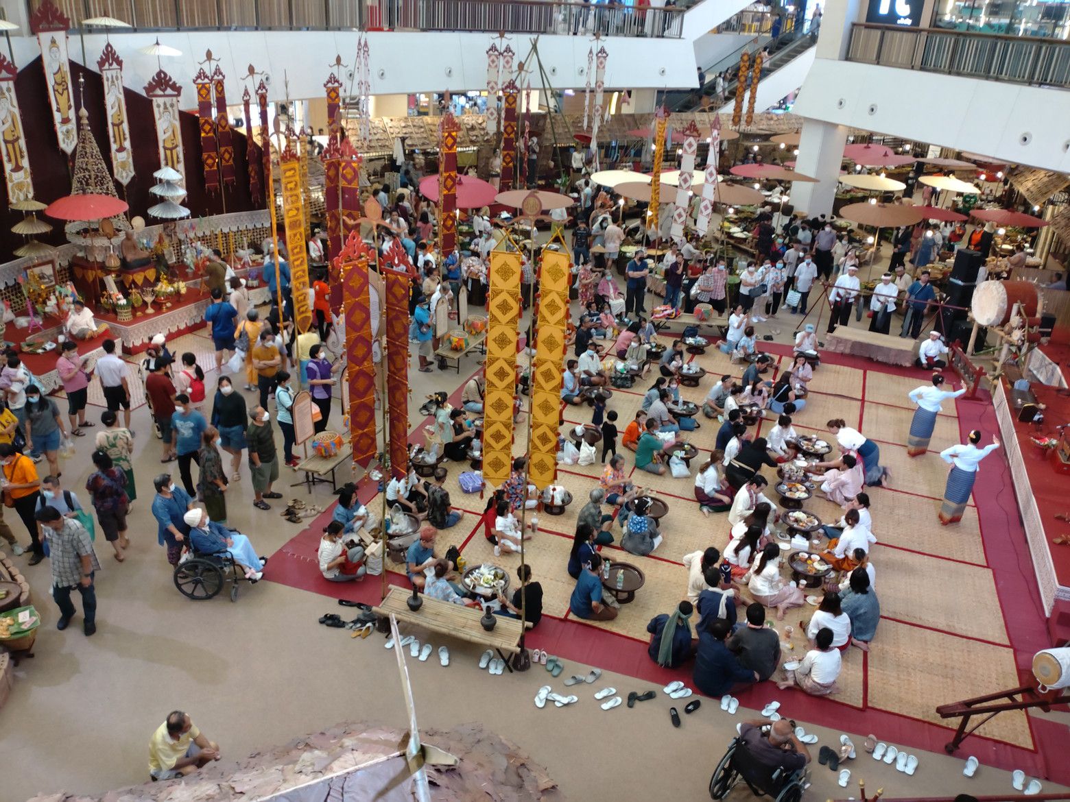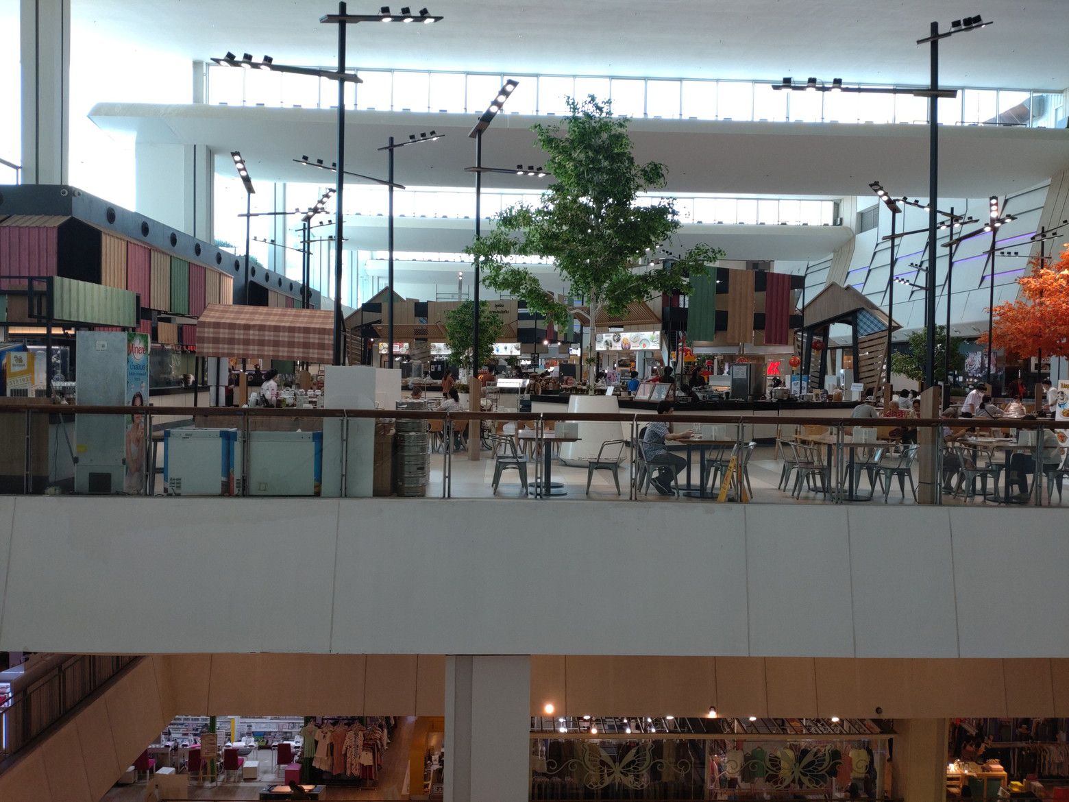 改札を出ると、直ぐに入店できる便利さです。 この日は、大きな音で音楽が流れてきました。 タイの伝統的な音楽なのでしょうか。 この時点で、歩数アプリを確認すると、1万を越えそうだったので、或る程度散策した後は、惣菜を購入して帰ろうと考えてました。 このショッピングモールは、選択肢が多くあります。 まずは、最上階には。。。 こんなフードコートがあります。 若干高めですが、1ランク上の料理が食べられます。 ただ、この日は日本食を食べたくてドンキで買って帰ろうと思いました。 この時は、空いてましたが、駅周辺には高層のコンドミニアムが数棟建ち並んでますので、夕方頃は混むと思います。