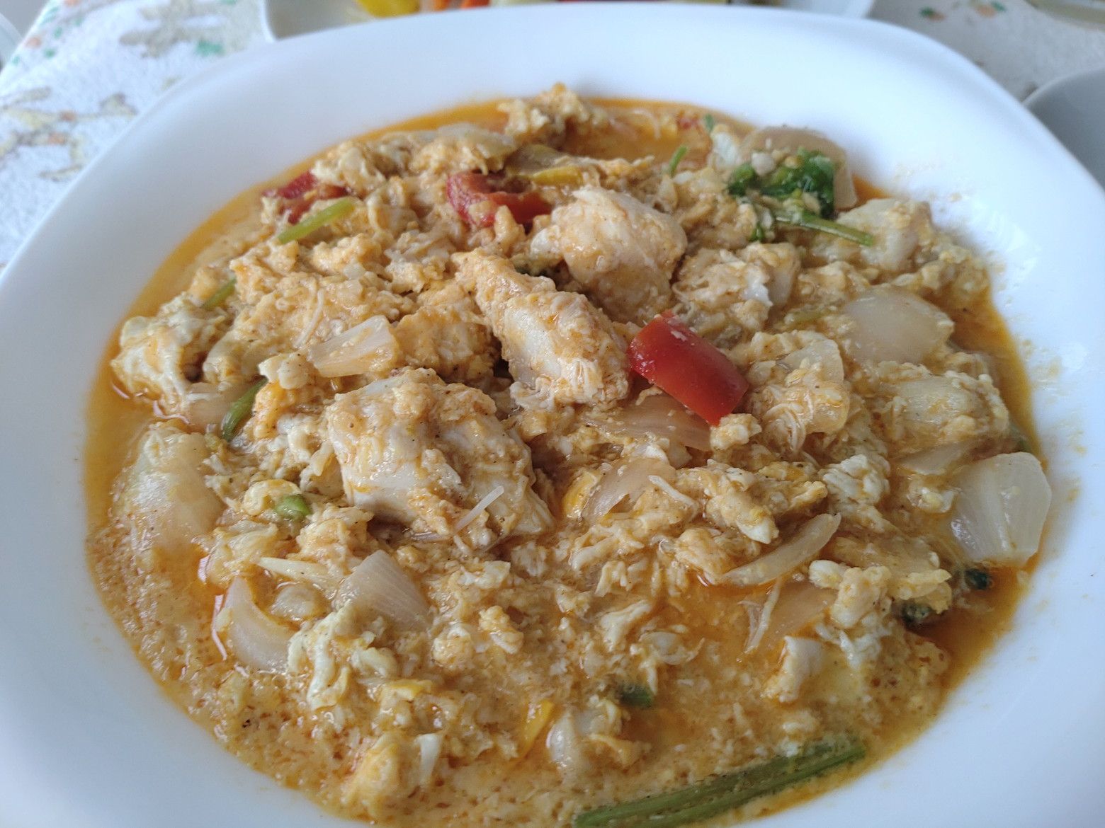 蟹肉のカレーです。 テイクアウトで注文すると、隣の部屋を案内され、座って待っててくださいとの事でした。