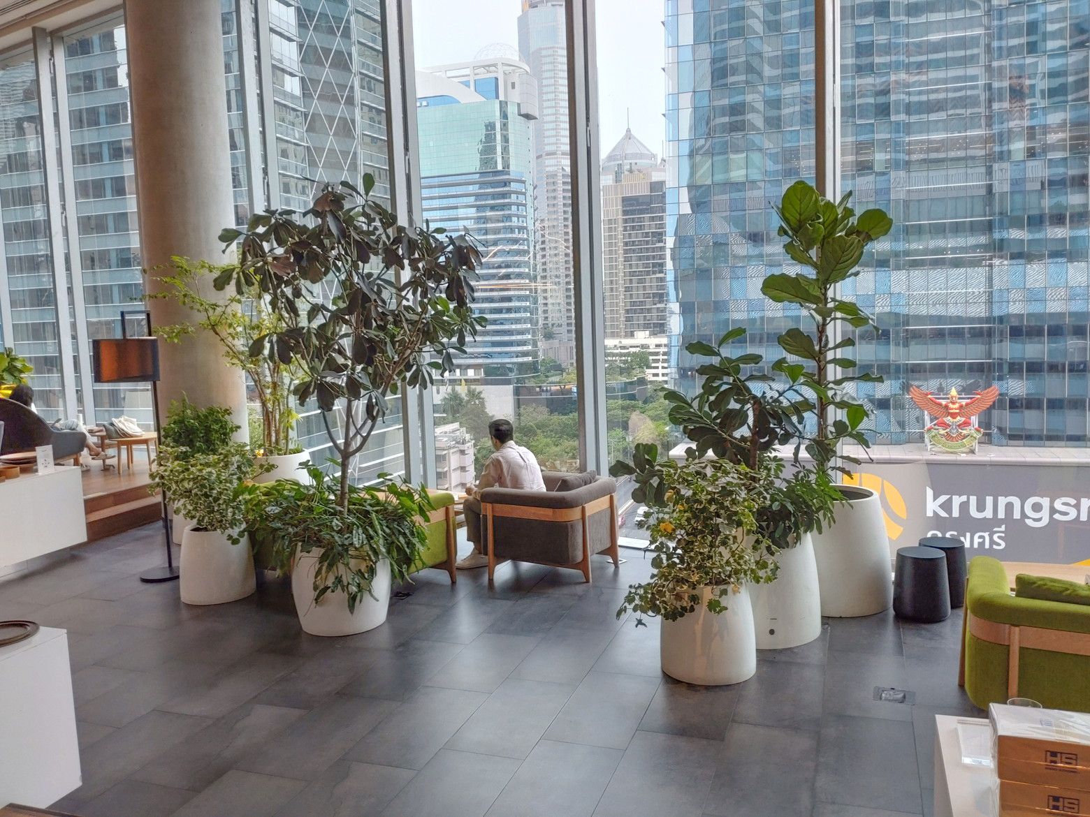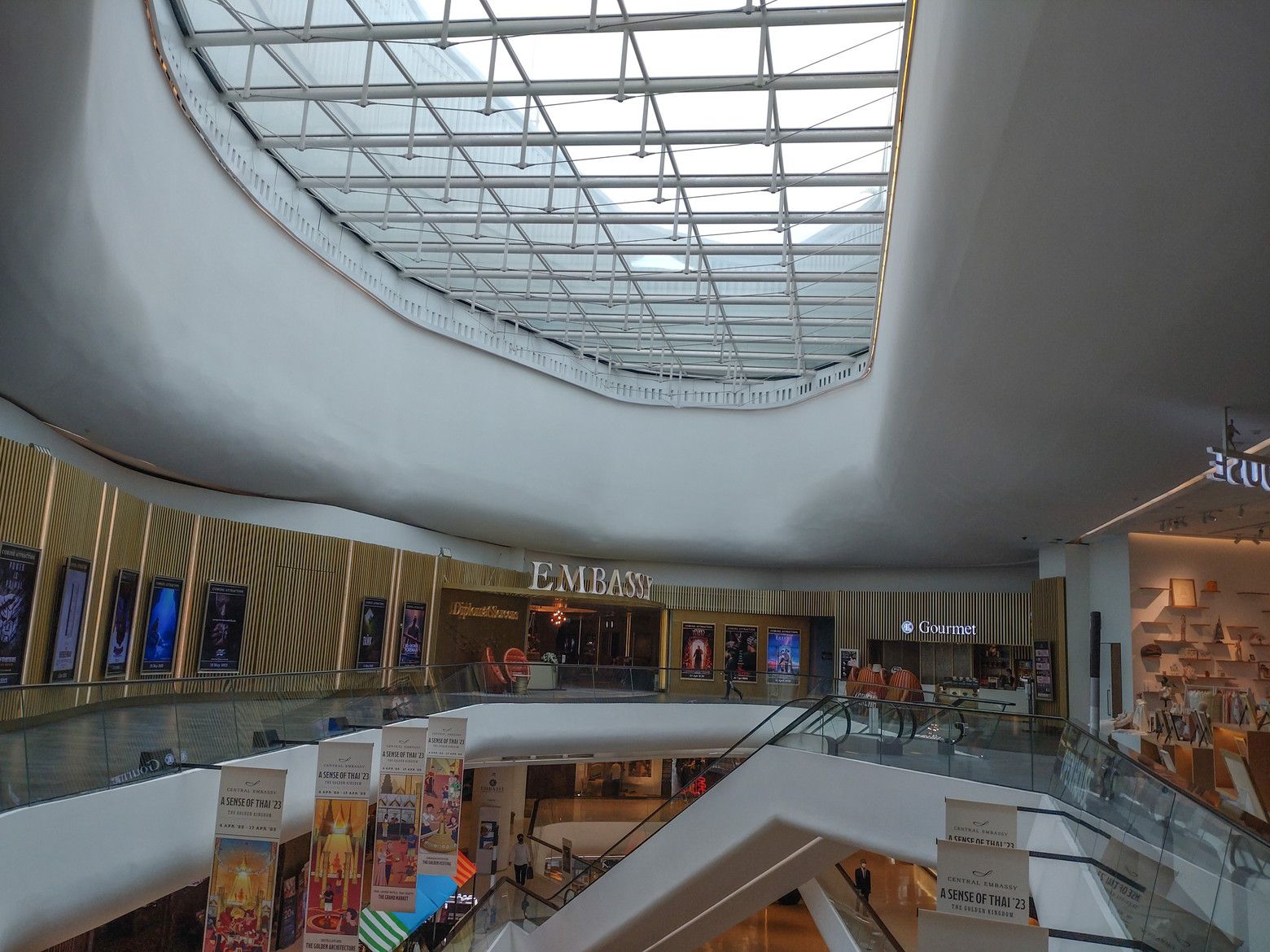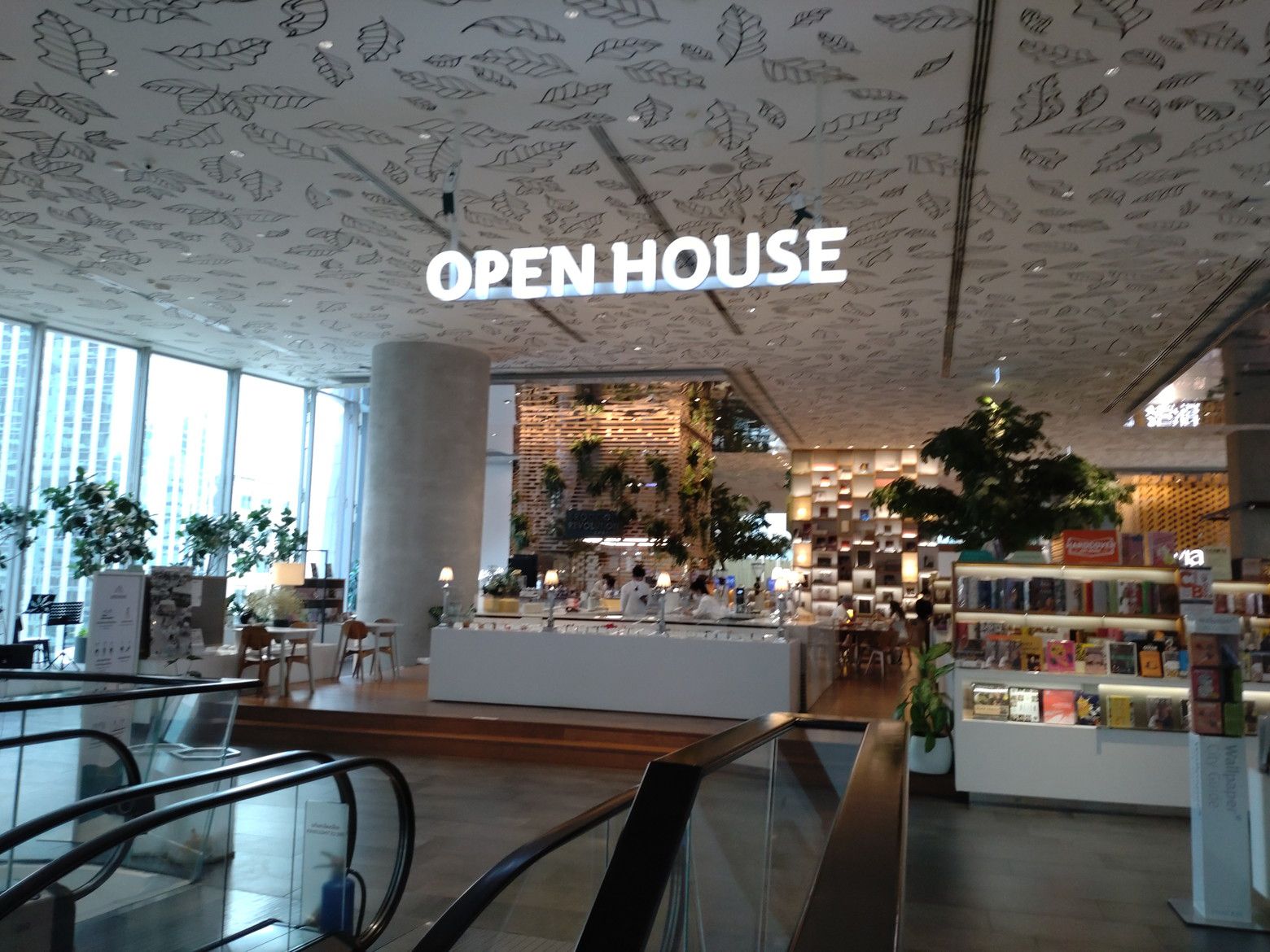 勝手に、気分的には行き難い場所と決めていた場所ですが、思い切っての事でした。 BTSプルンチット駅を出て、スカイウォークで少し歩きます。 最近は気温が熱いので、汗が出て来た位に到着です。 入ってみると爽快な感じがしました。 まずは、上の階へ行って見ます。 エスカレーターが乗り継ぎ易い構造になっていて楽ちんでした。 この階には、面白いスペースがありました。 こんな場所なんですが。。。 コーヒーや軽食が食べられるのですが。。。 こんな窓際の席があるんです。