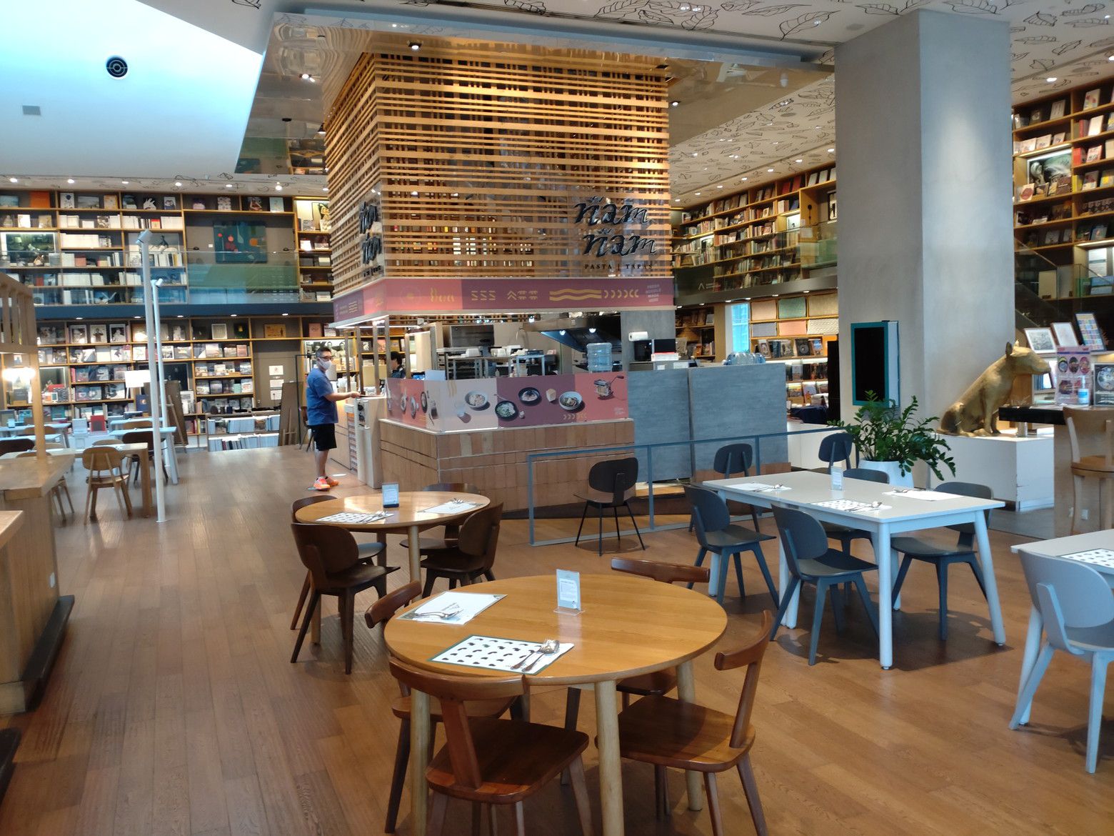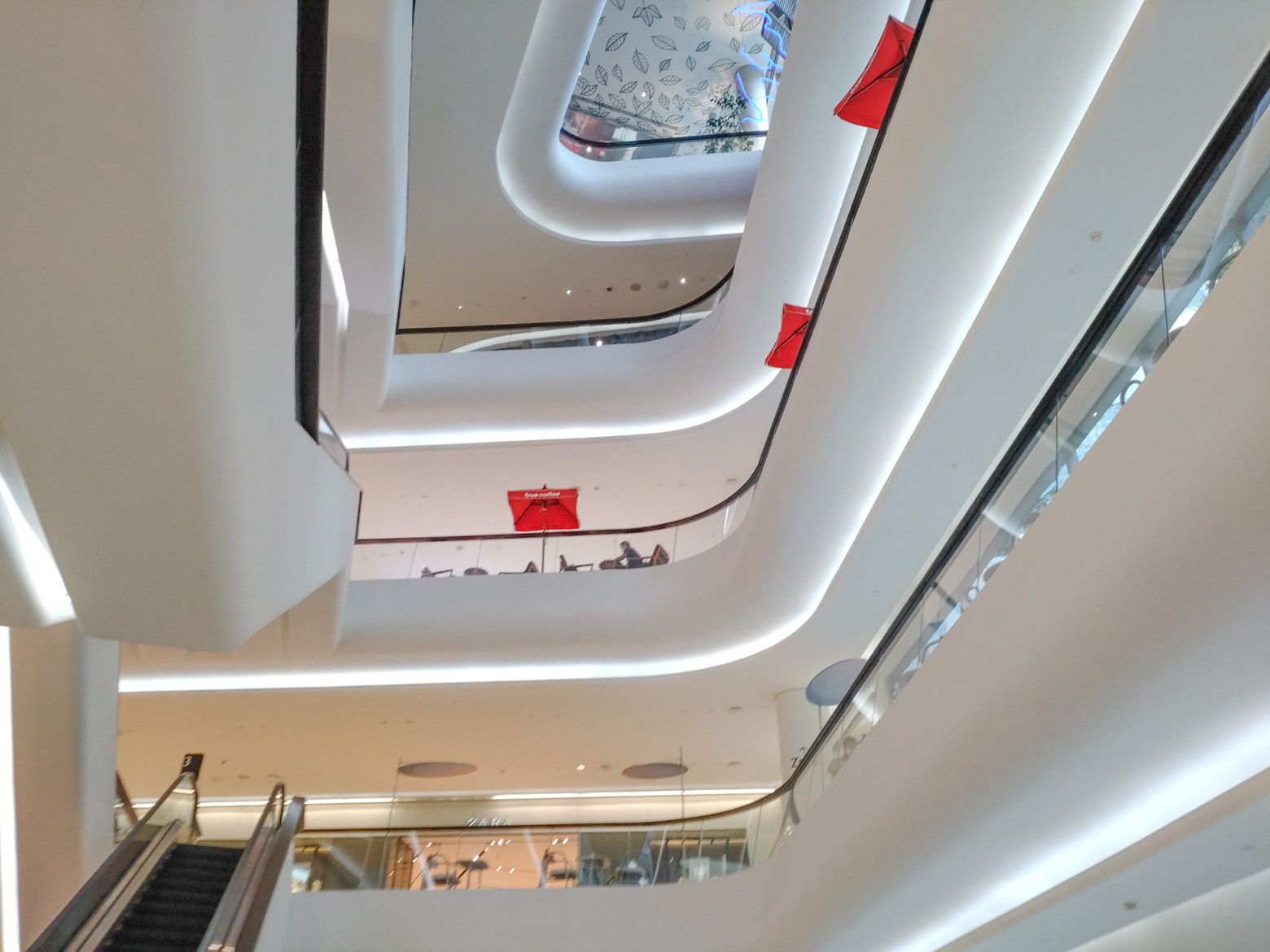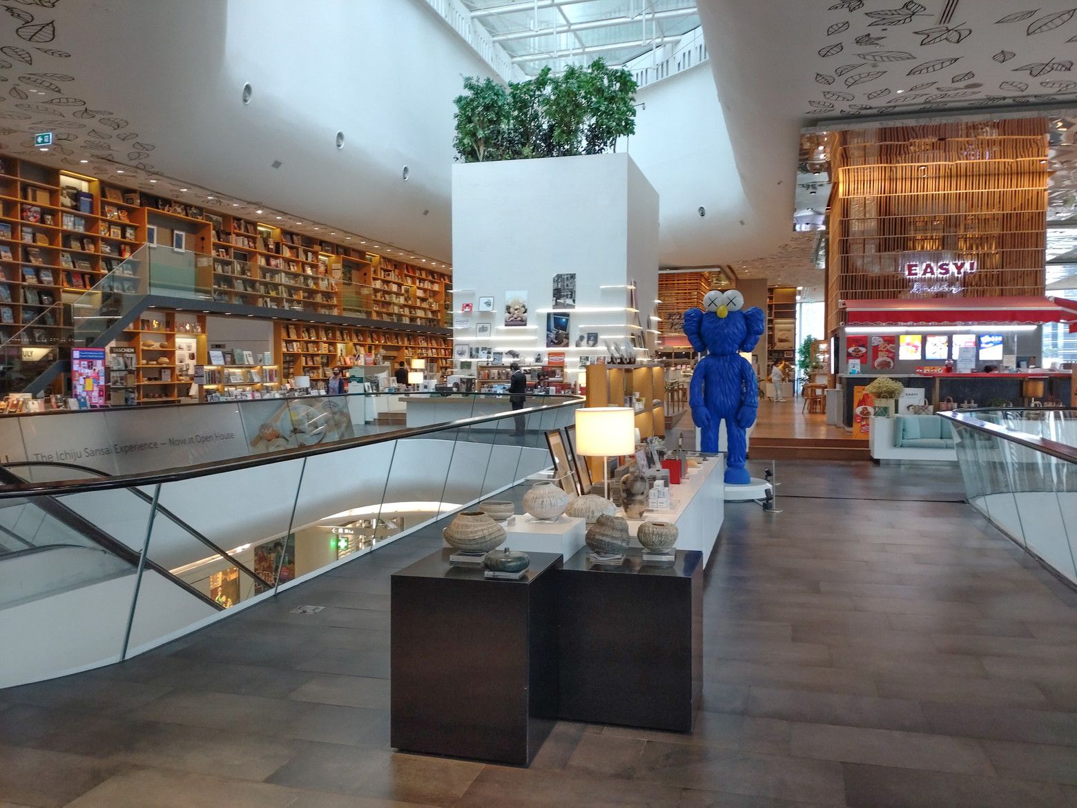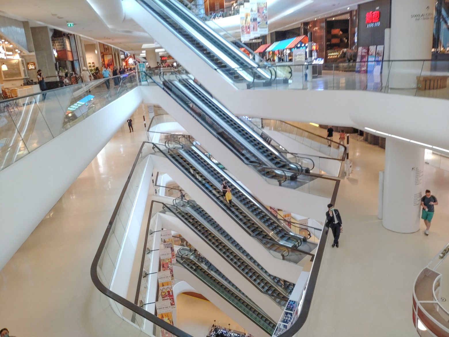 勝手に、気分的には行き難い場所と決めていた場所ですが、思い切っての事でした。 BTSプルンチット駅を出て、スカイウォークで少し歩きます。 最近は気温が熱いので、汗が出て来た位に到着です。 入ってみると爽快な感じがしました。 まずは、上の階へ行って見ます。 エスカレーターが乗り継ぎ易い構造になっていて楽ちんでした。 この階には、面白いスペースがありました。 こんな場所なんですが。。。 コーヒーや軽食が食べられるのですが。。。 こんな窓際の席があるんです。